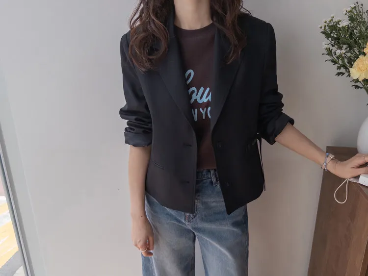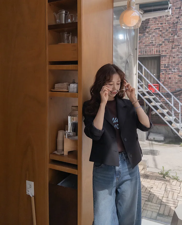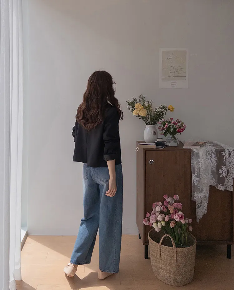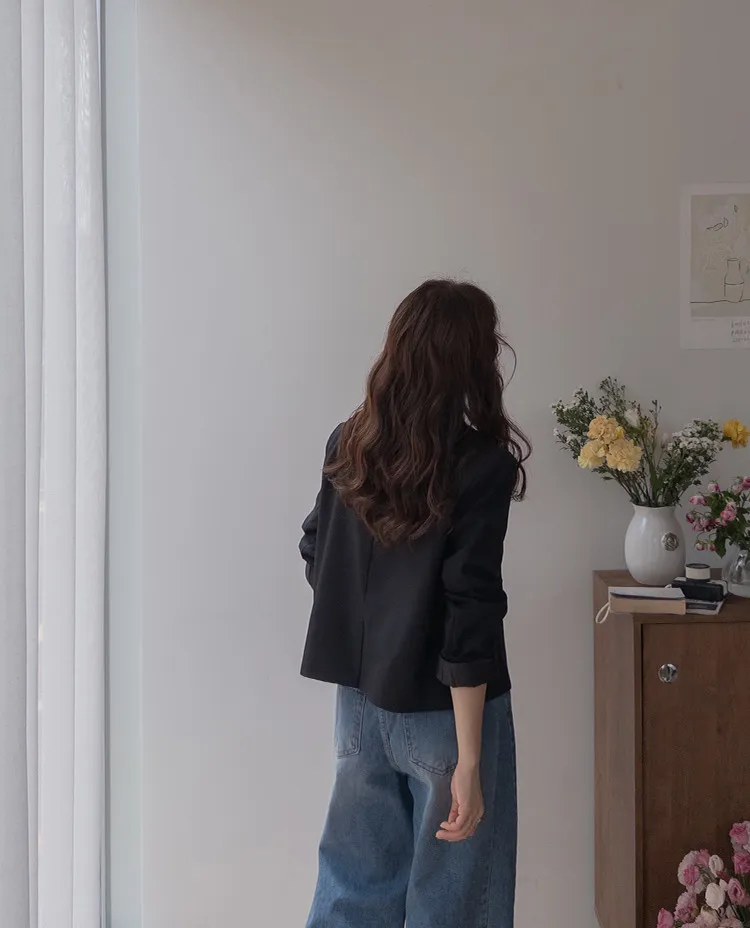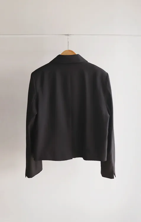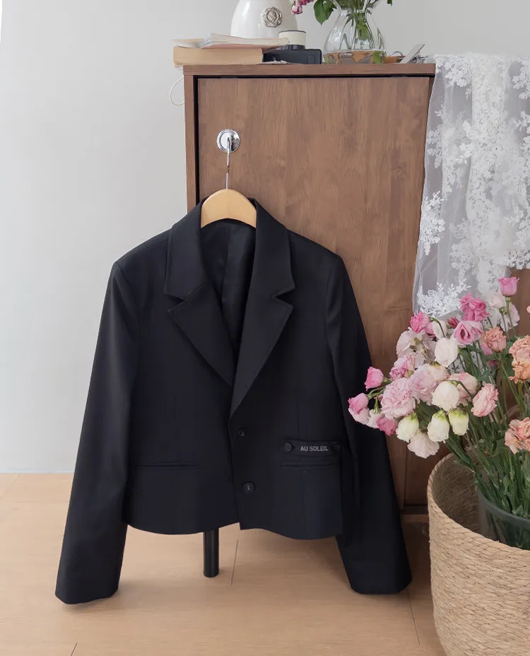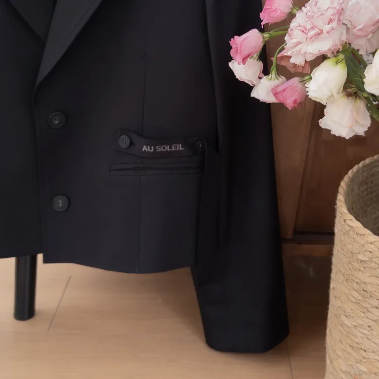 【剪裁合身的雙扣短款外套,多種造型穿搭♥】【下擺側帶上的紐帶細節獨特! 】【充滿古典精緻情調~】【推薦作為短款的日常單品】
