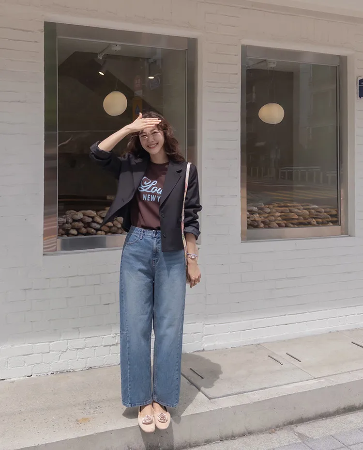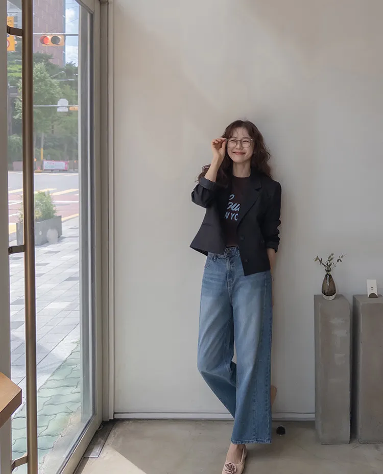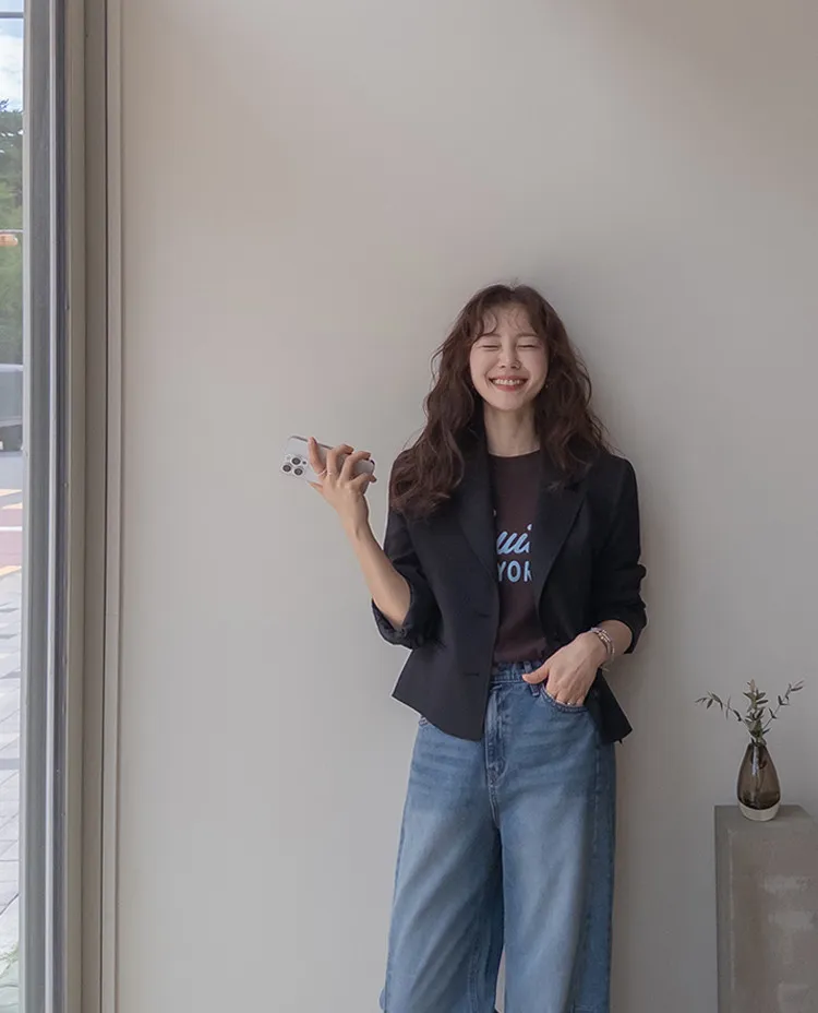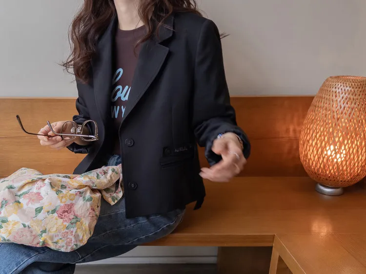 獨特風格刺繡字母扣帶點綴雙扣短款外套 現貨黑