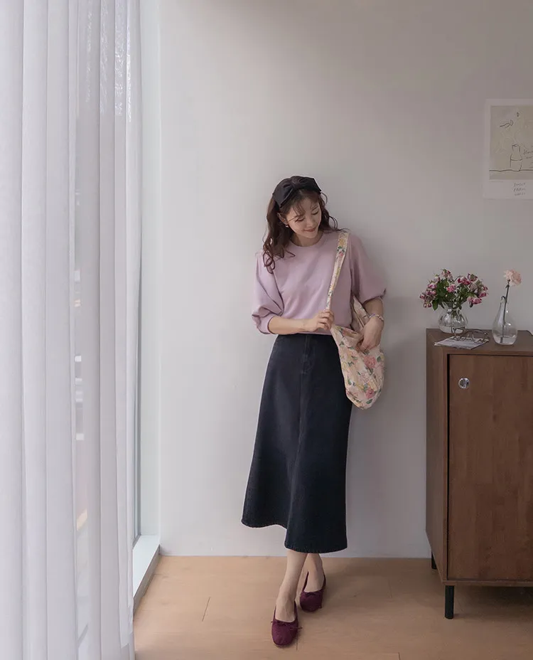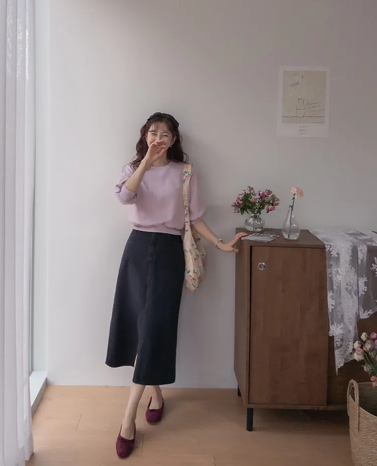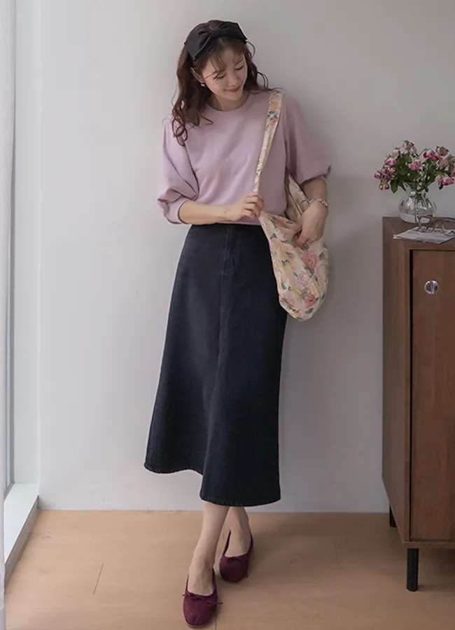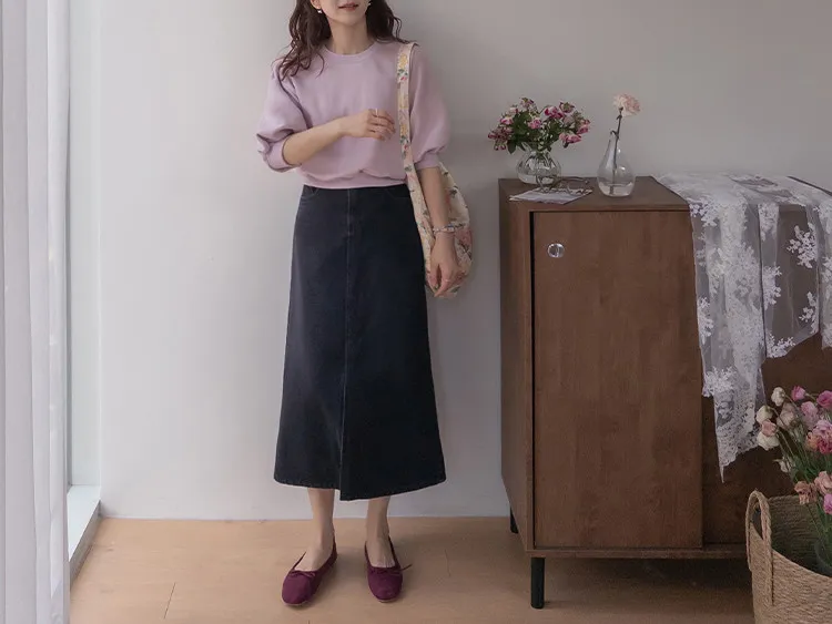 舒適日常半A字剪裁前開衩牛仔中長裙