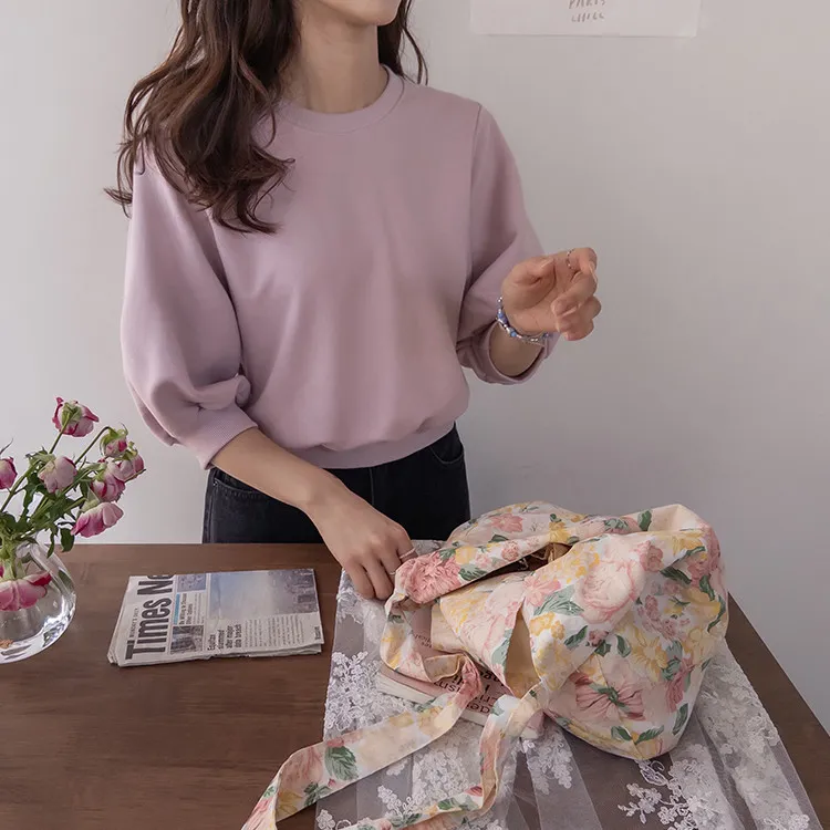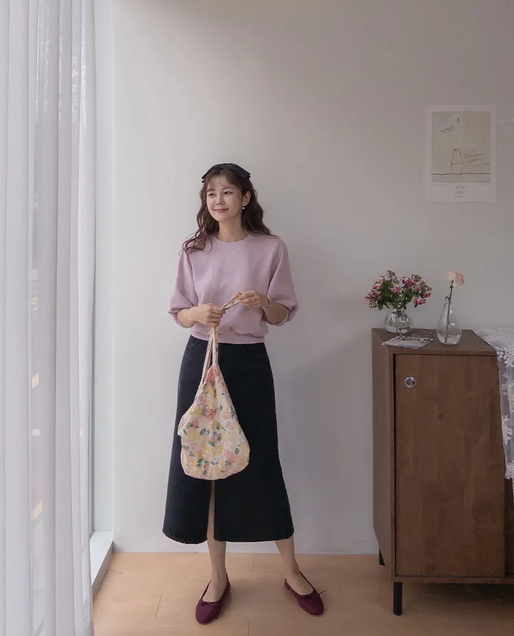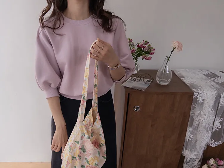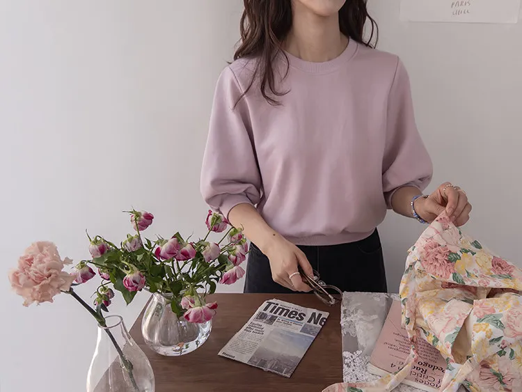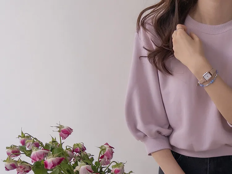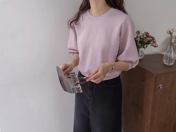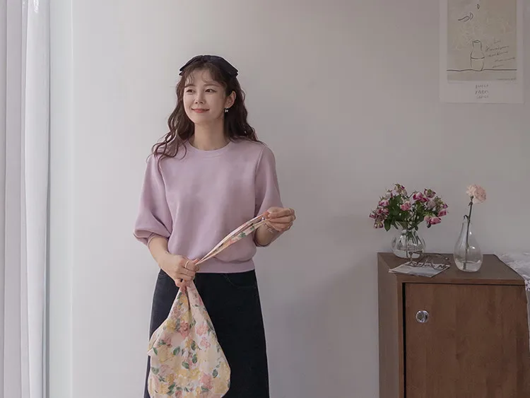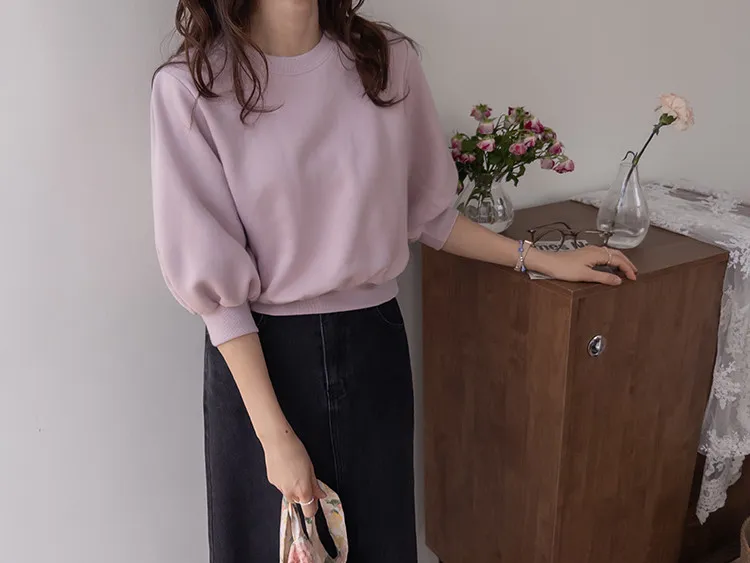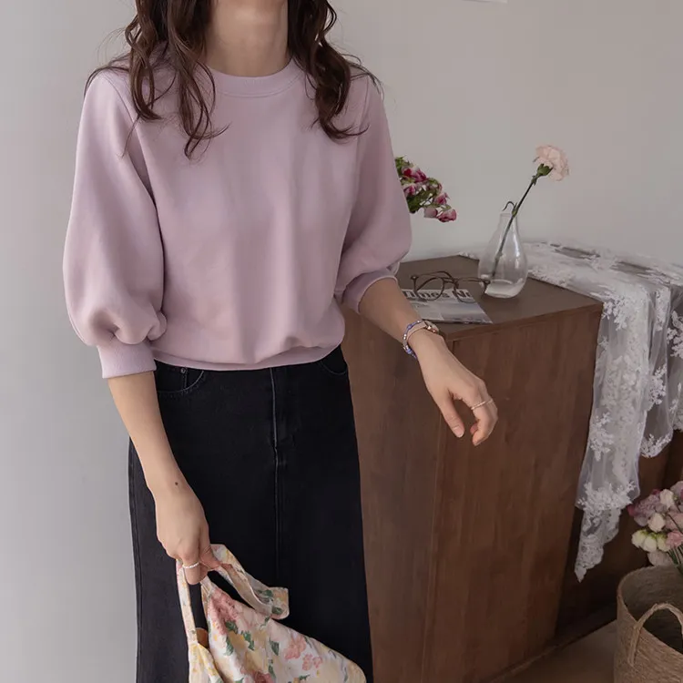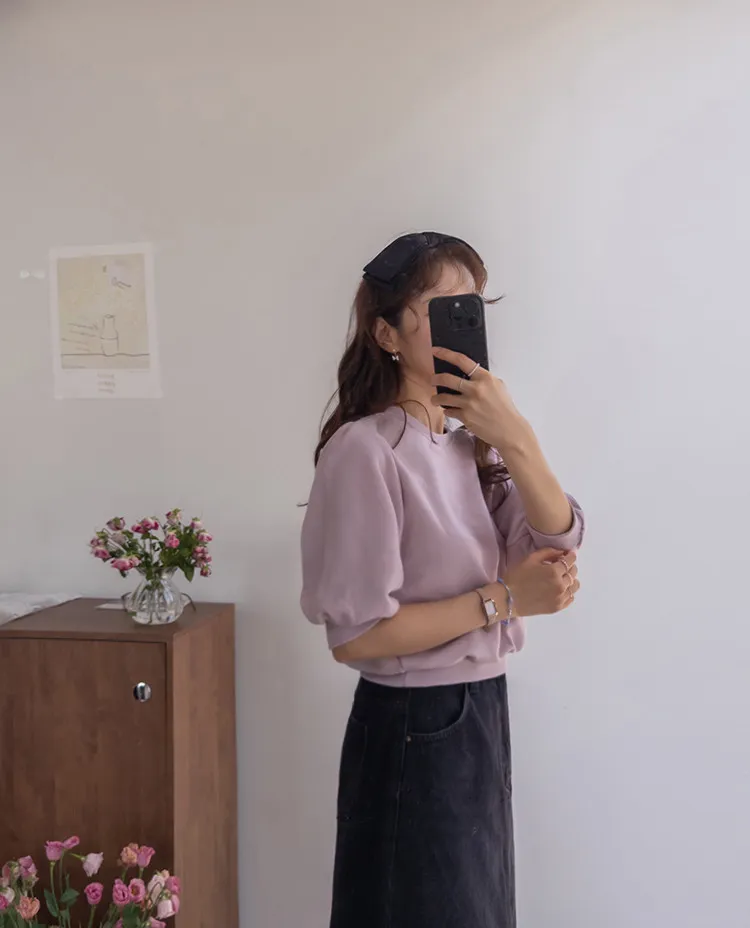 【7分長度,輕鬆享受穿搭】【蓬鬆泡泡袖】【結實的羅紋邊+舒適的氨綸】