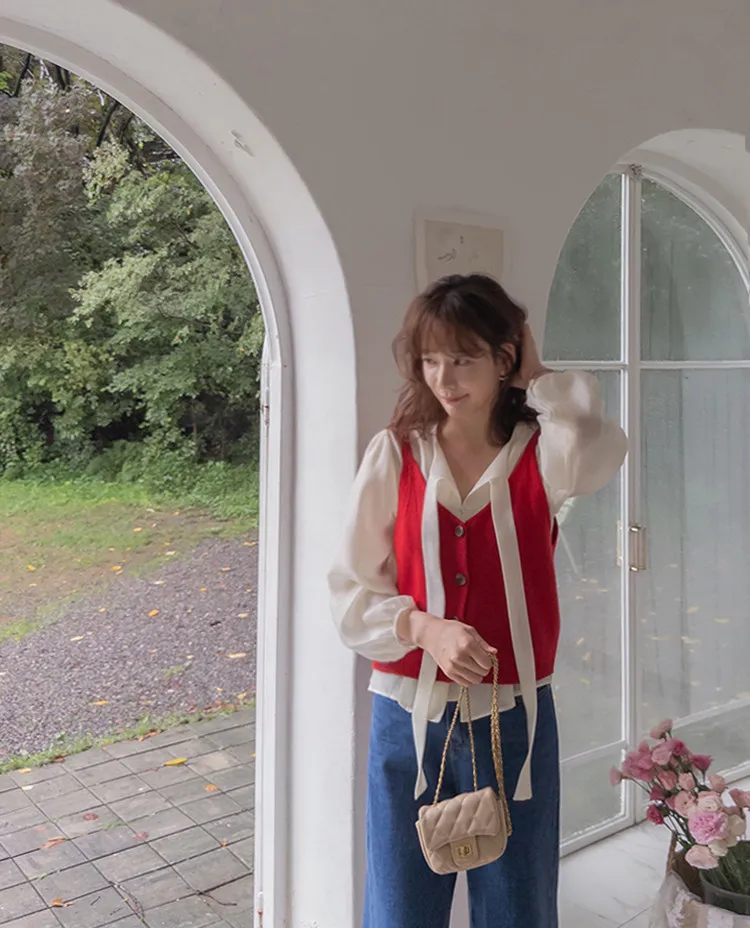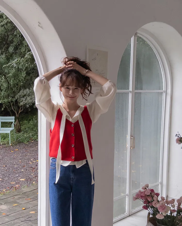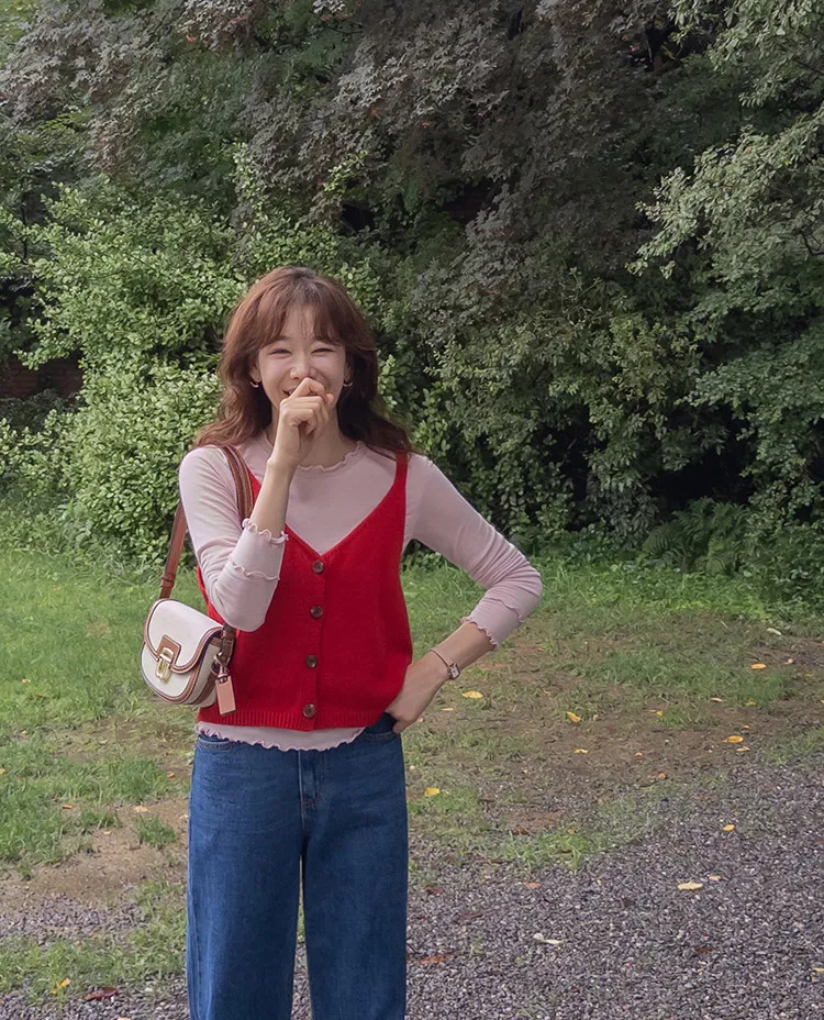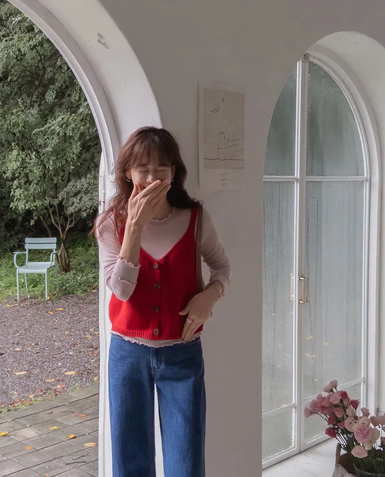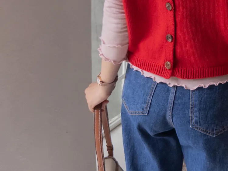 【增添存在感的鈕扣連結背心】 【可前後穿搭♥】 【含50%羊毛! !摸起來柔軟舒適~】 【推薦與各種上衣疊穿! ! 】