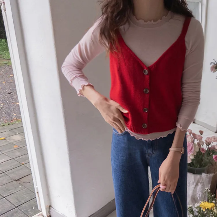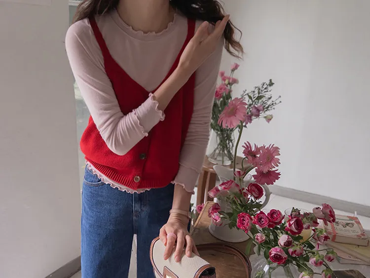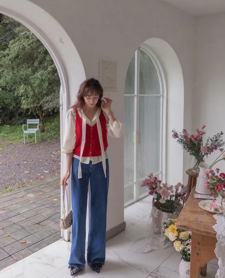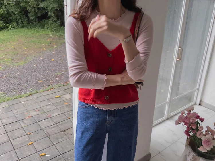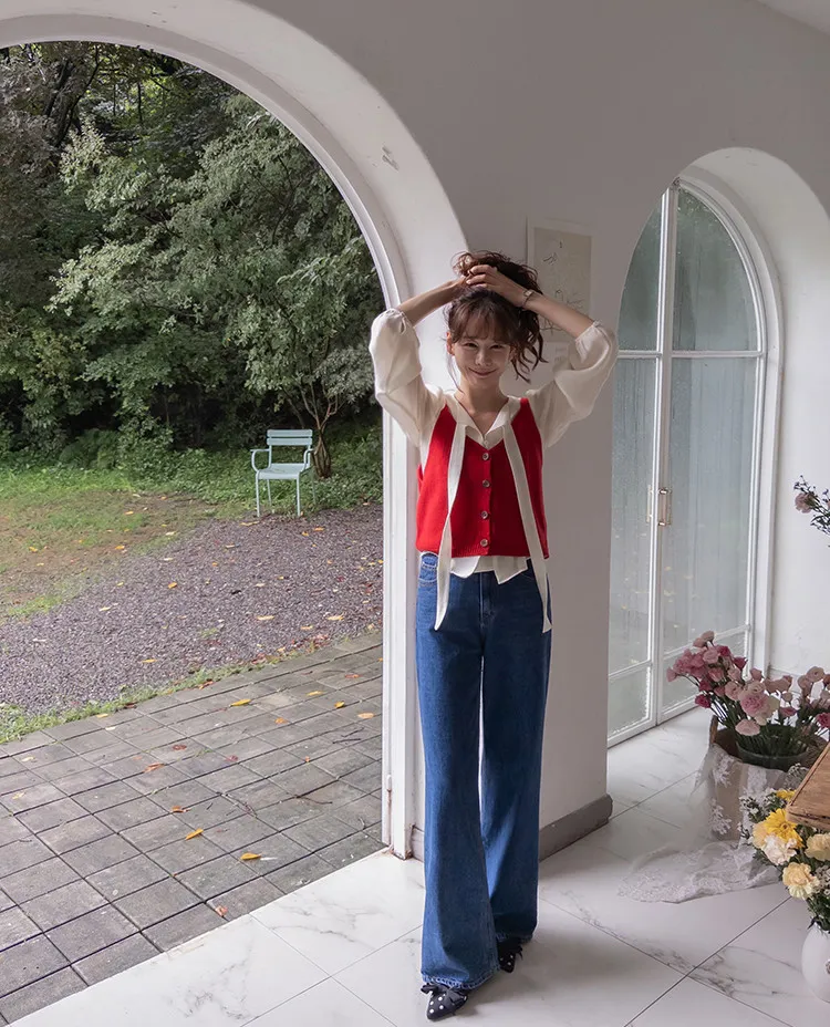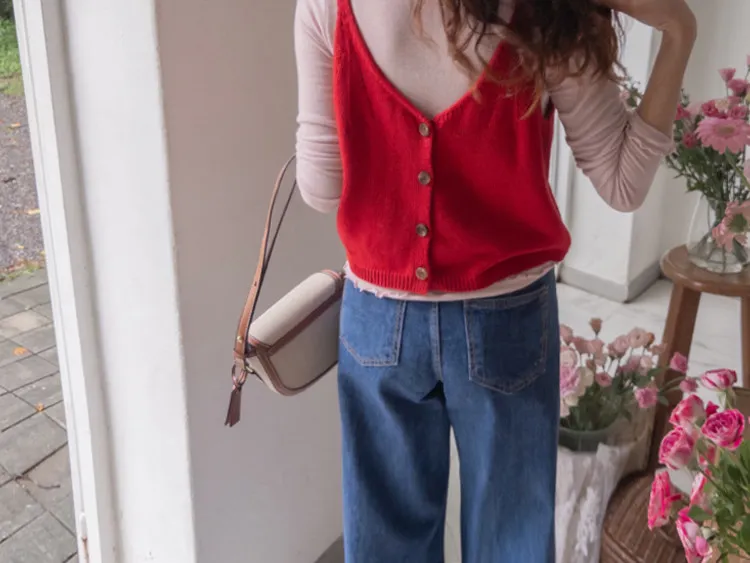 【增添存在感的鈕扣連結背心】 【可前後穿搭♥】 【含50%羊毛! !摸起來柔軟舒適~】 【推薦與各種上衣疊穿! ! 】