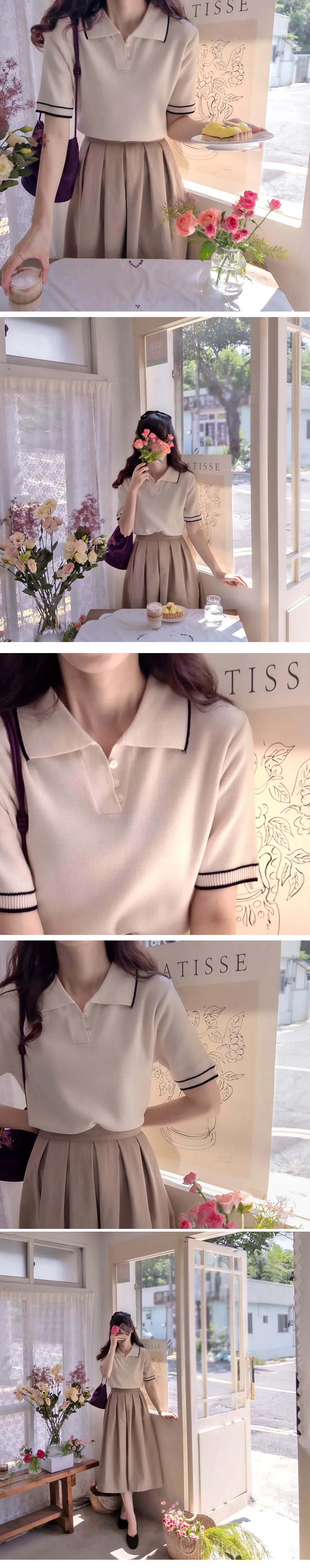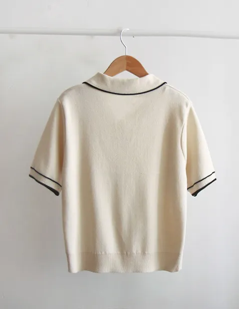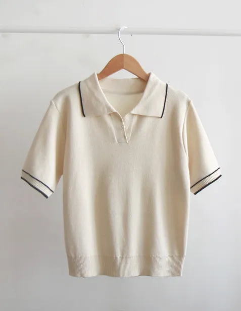 【秋季新品】 【結實柔軟的針織衫】 【可開合紐扣的時尚設計】 【配色線條設計營造時尚氛圍,成為焦點】 【袖子和領口的配色設計非常漂亮】 【秋季優雅氣質的針織衫】