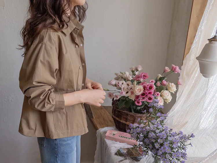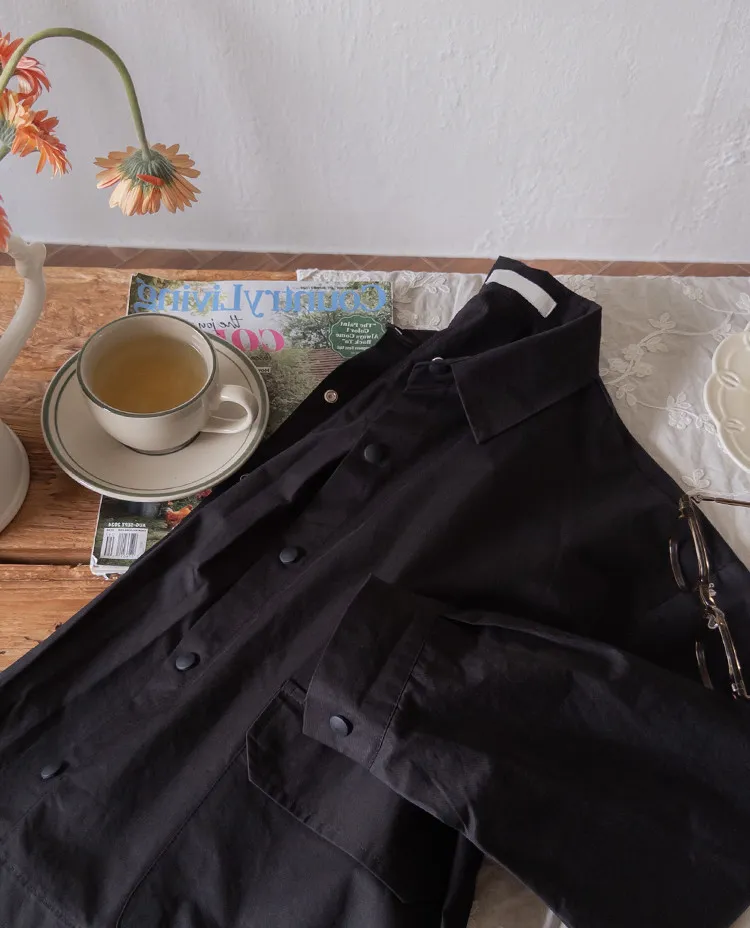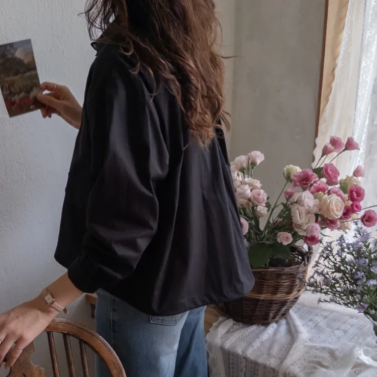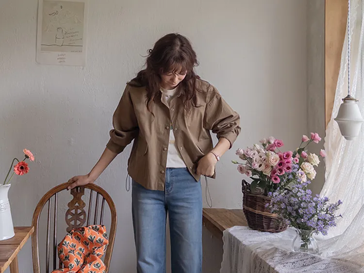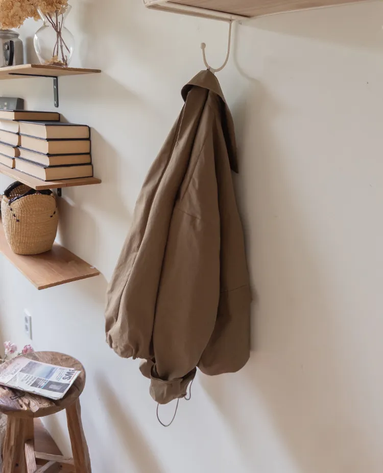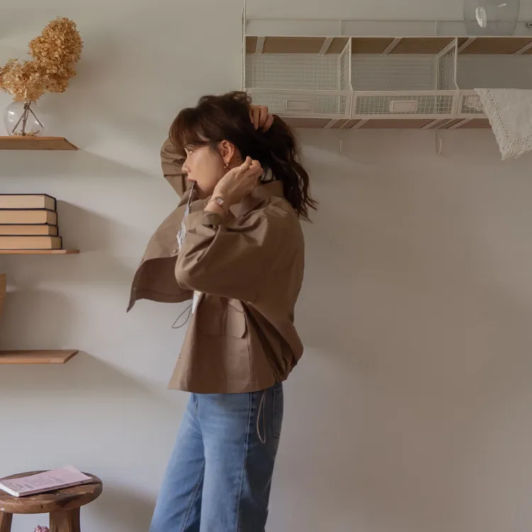 【輕鬆休閒的百搭秋季外套】 【後側褶襉設計,剪裁造型非常漂亮♥】 【後下擺有束帶,可打造寬鬆版型! 】 【可作為秋季外套的日常單品】