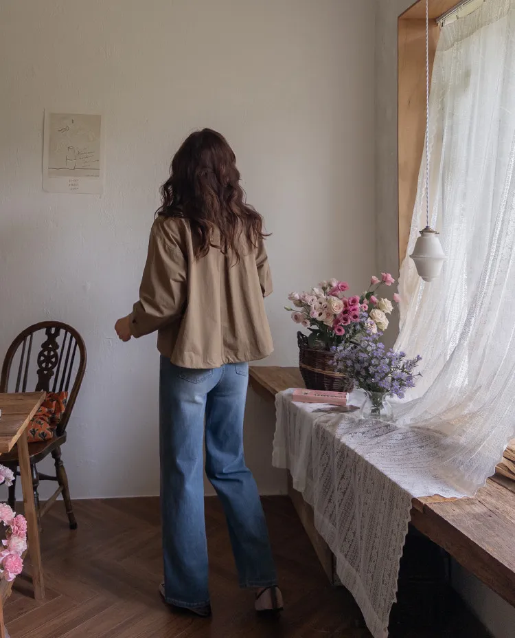 休閒風格後側褶襉下擺可束邊穿搭外套