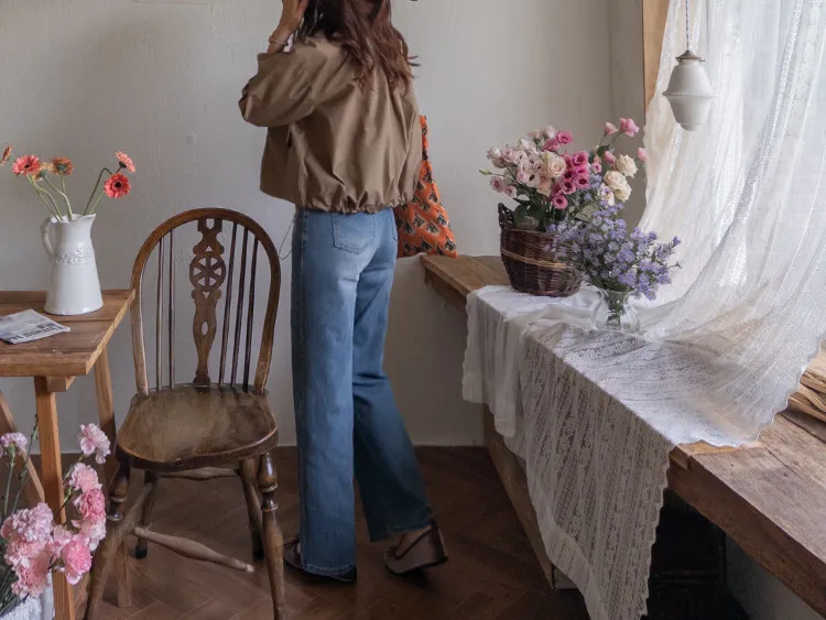 迷人日常穿搭彈性半直筒版型牛仔褲