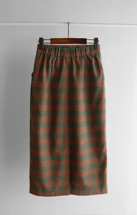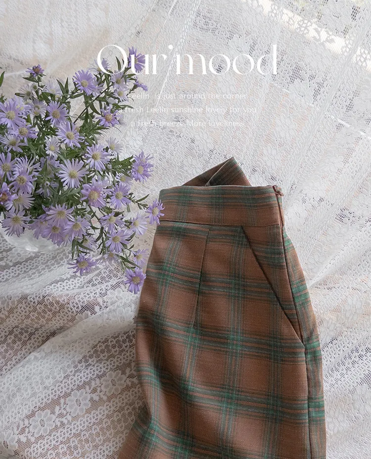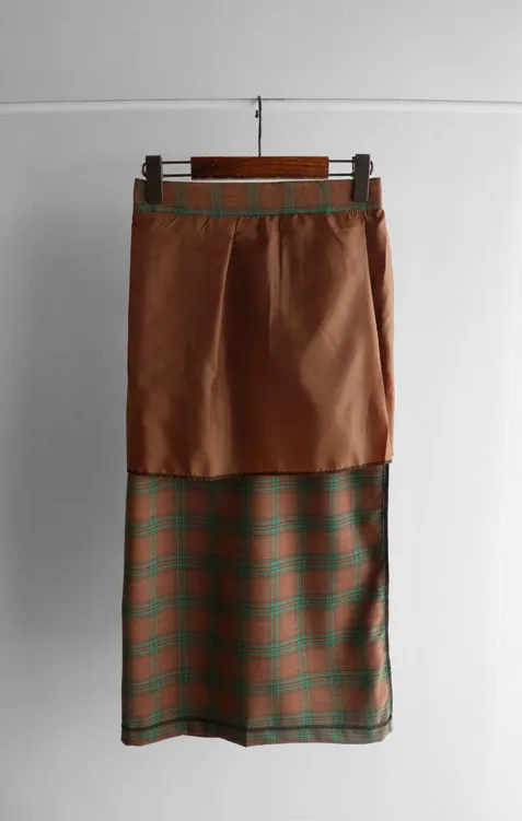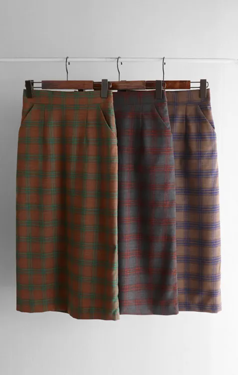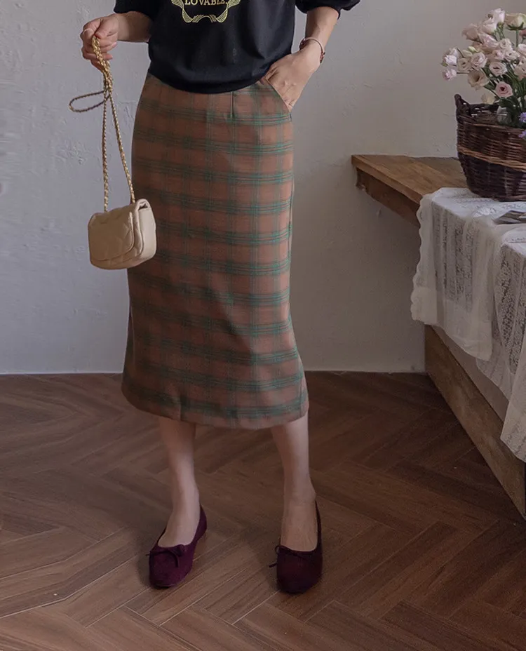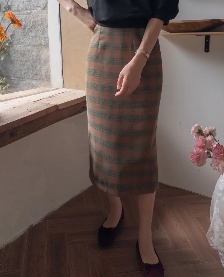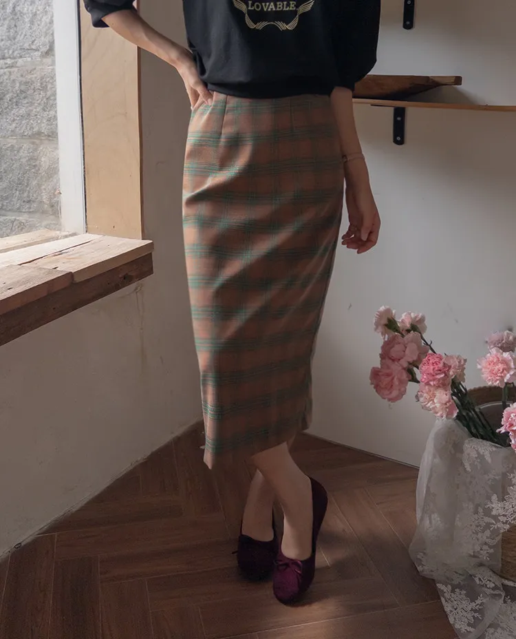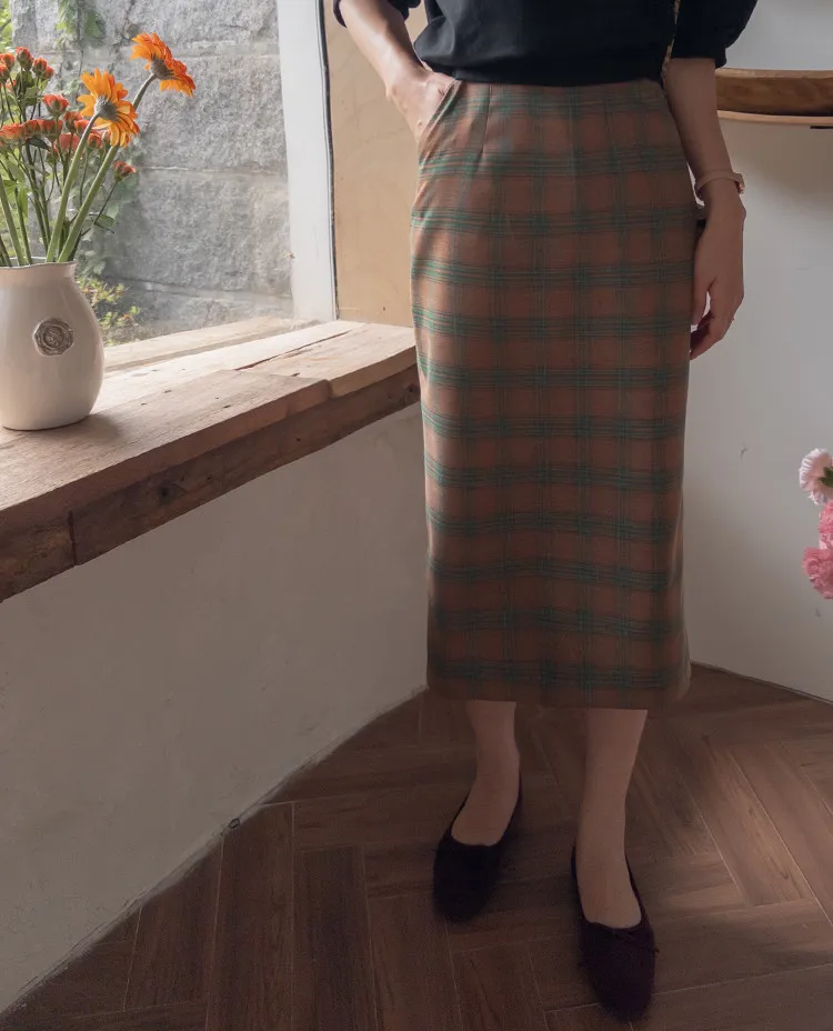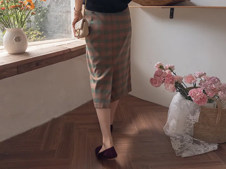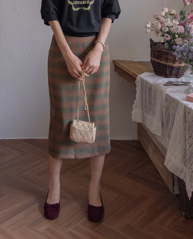 秋日氛圍色彩格紋H剪裁後開衩中長裙