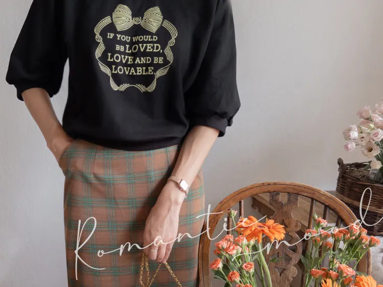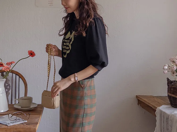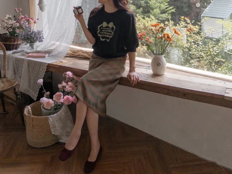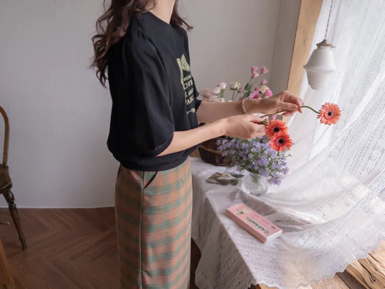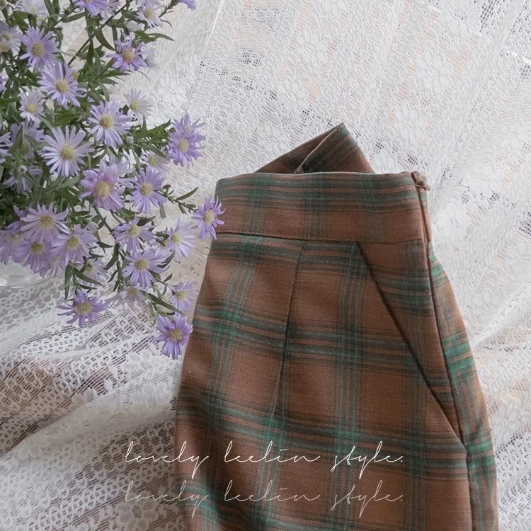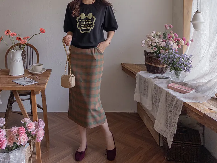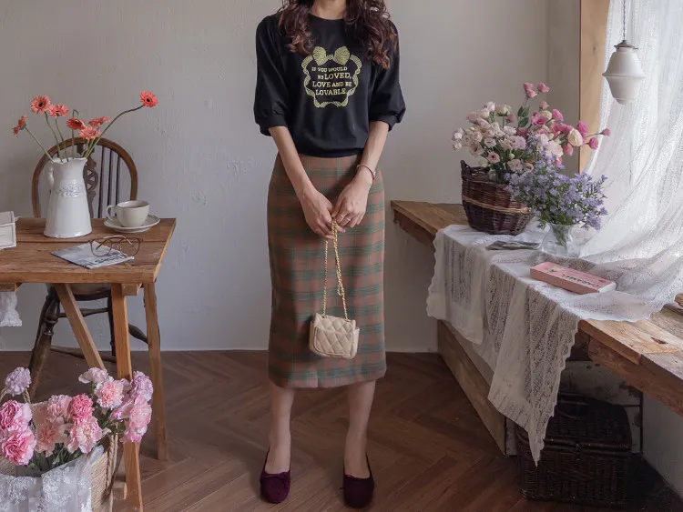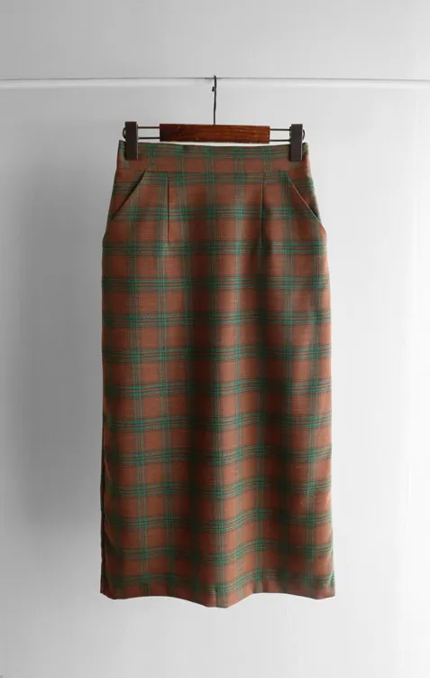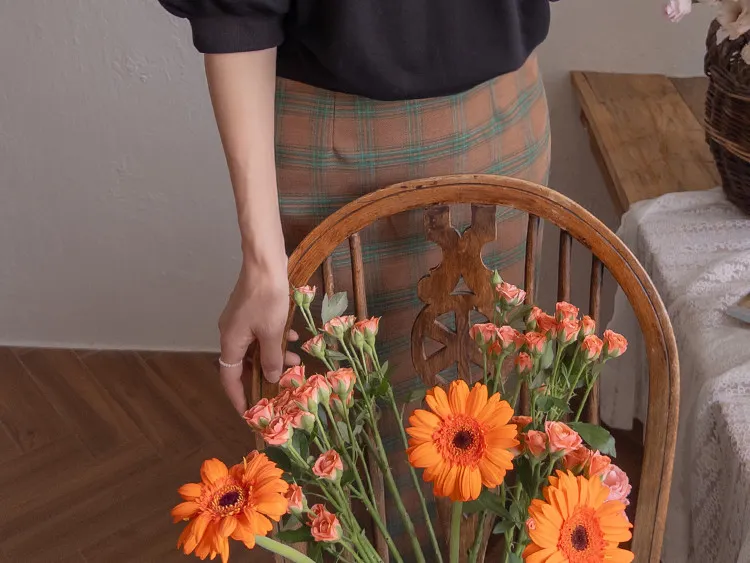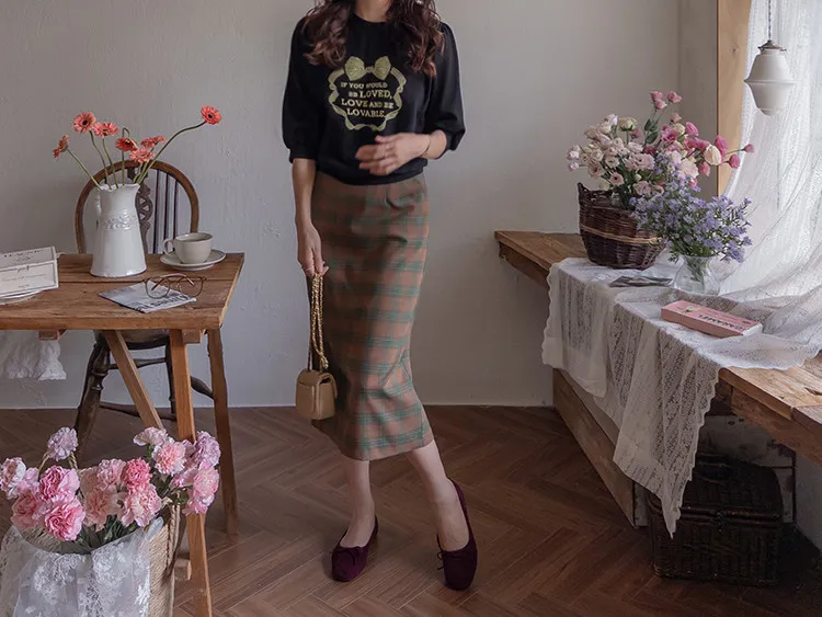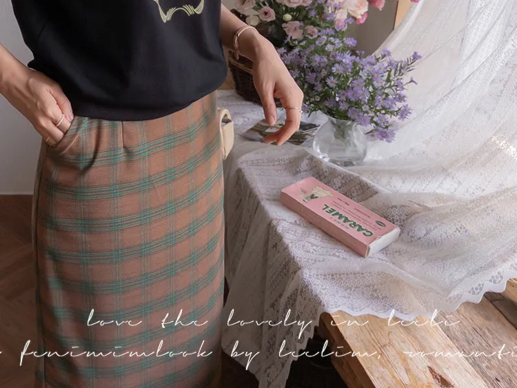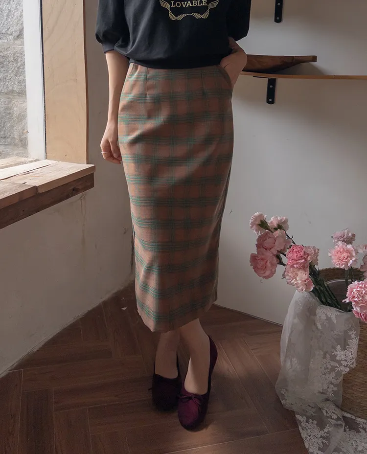 秋日氛圍色彩格紋H剪裁後開衩中長裙