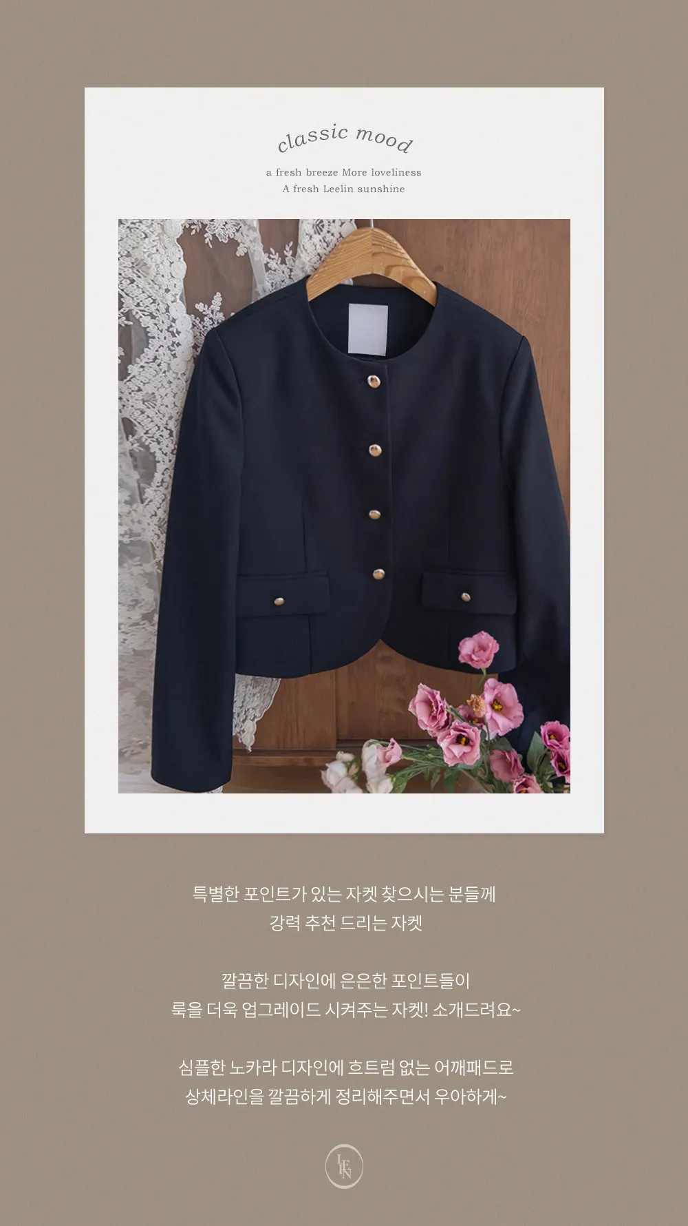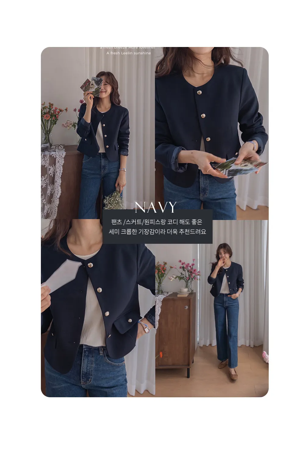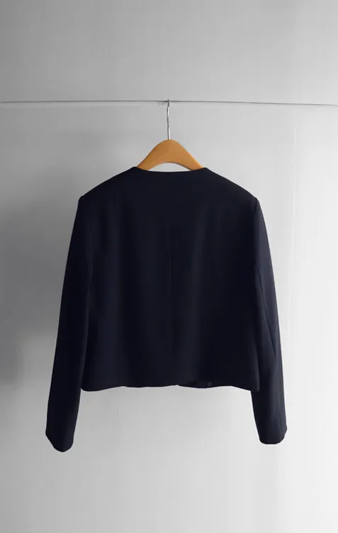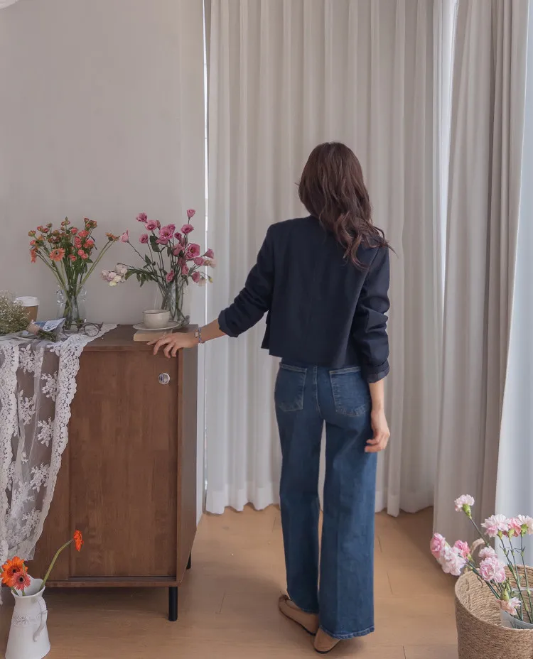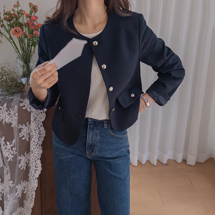 【簡約的無領設計,適合日常穿著! 】【奢華的金色鈕扣細節】【適合搭配裙子和褲子的長度! 】【圓潤的下擺剪裁更顯女人味♥】