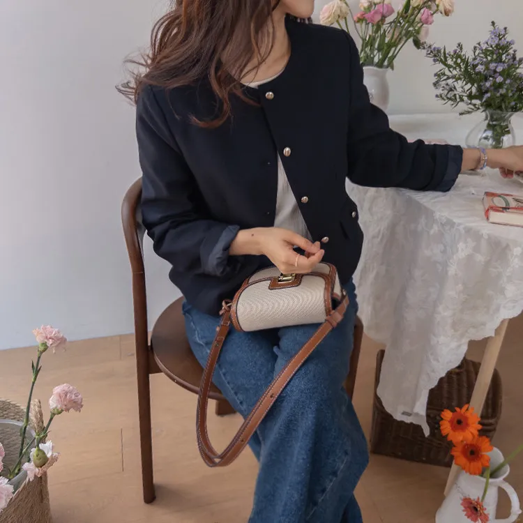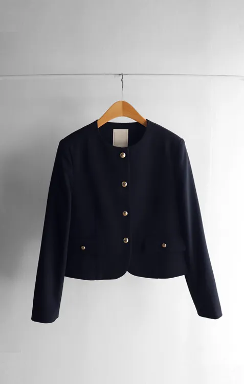 簡約剪裁圓潤下擺金色鈕扣外套