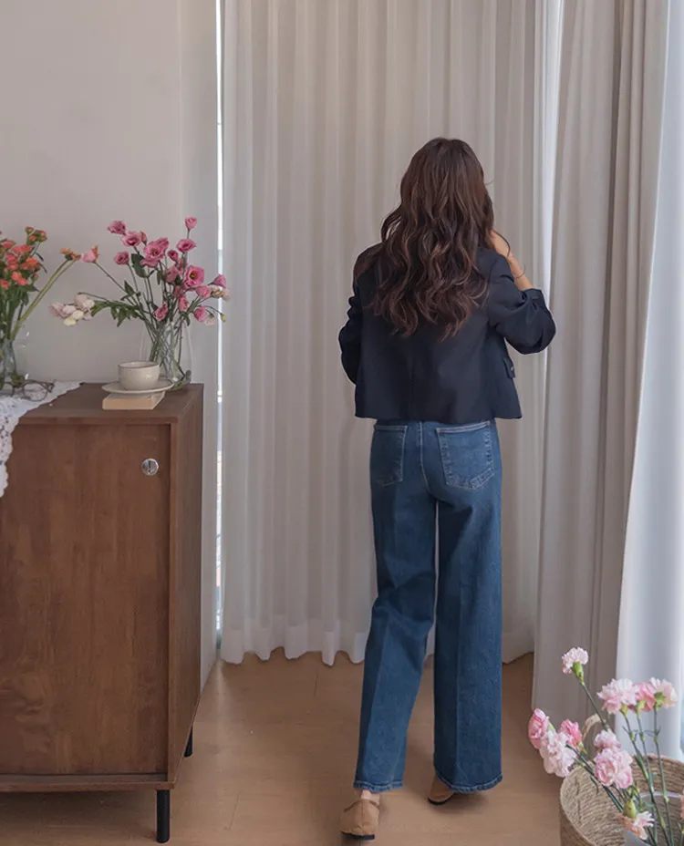 顯瘦修長直筒寬版牛仔褲
