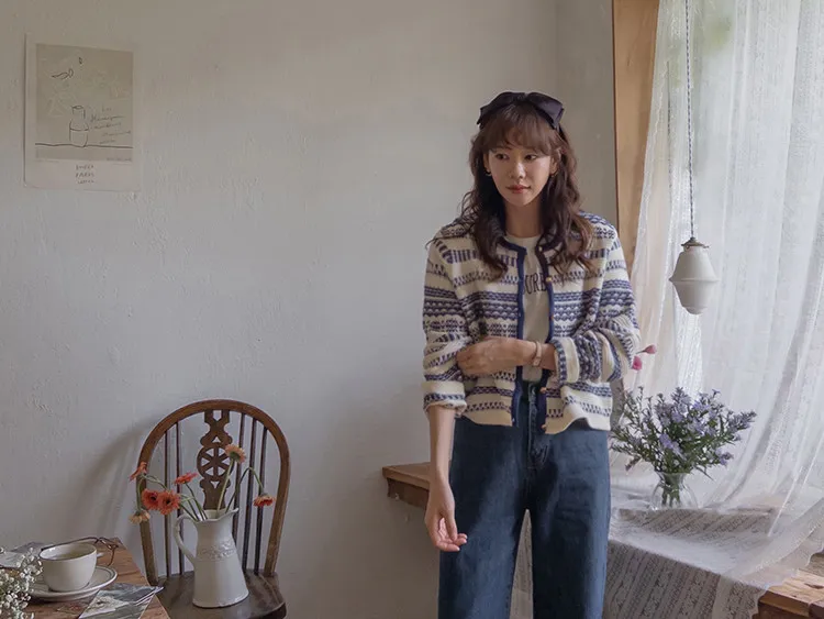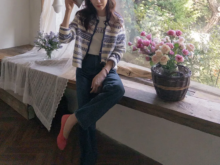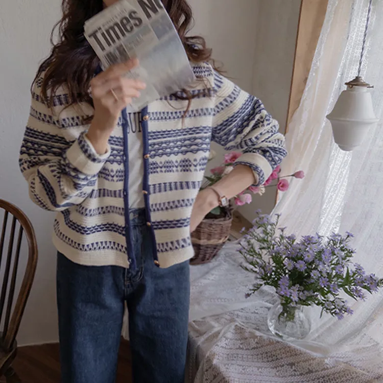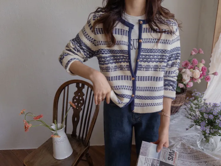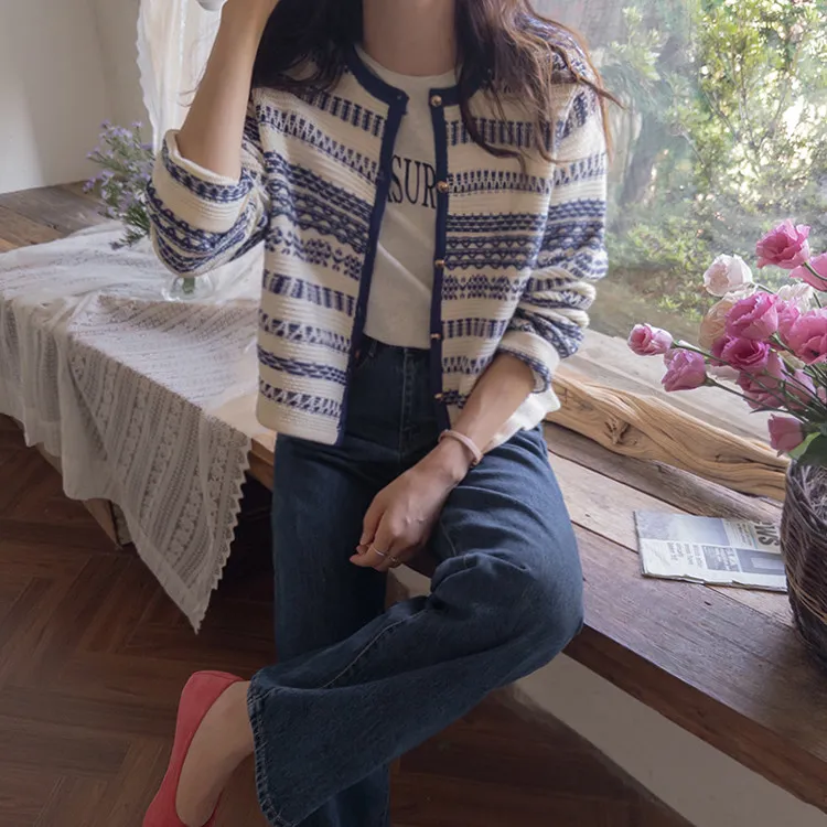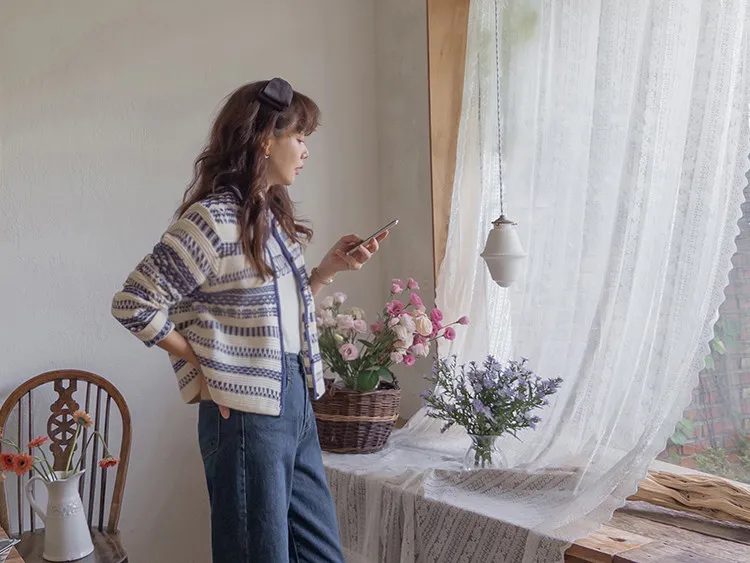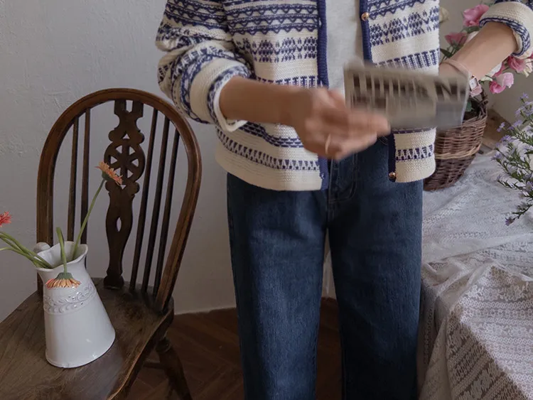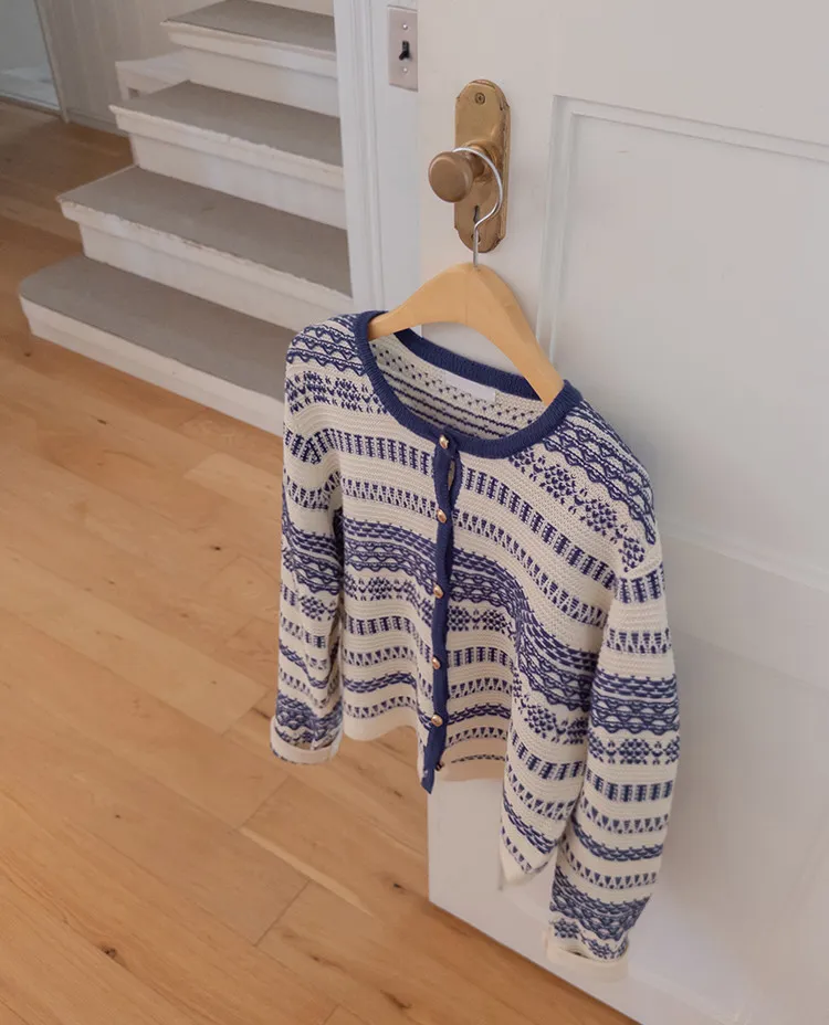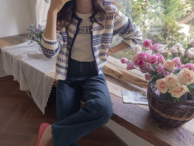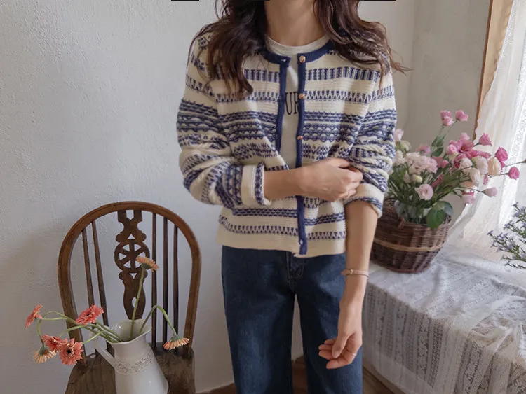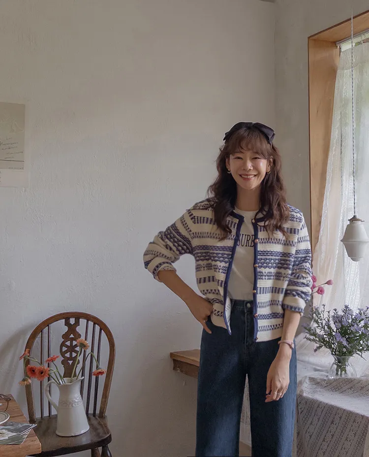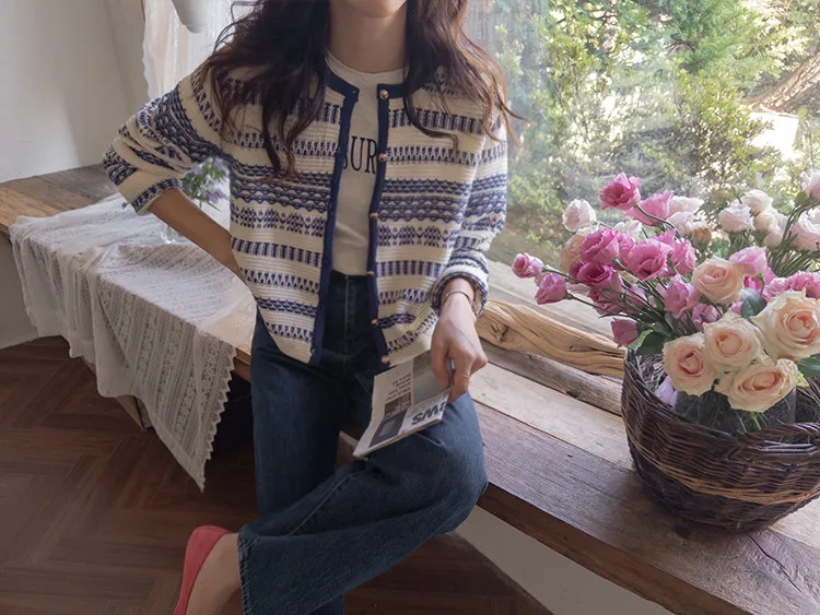【溫暖感性的提花色開衫♥】【線條+金色鈕扣帶的奢華細節UP↑】【舒適寬鬆的版型~】【堅固的材質,適合長時間穿著】