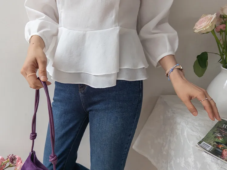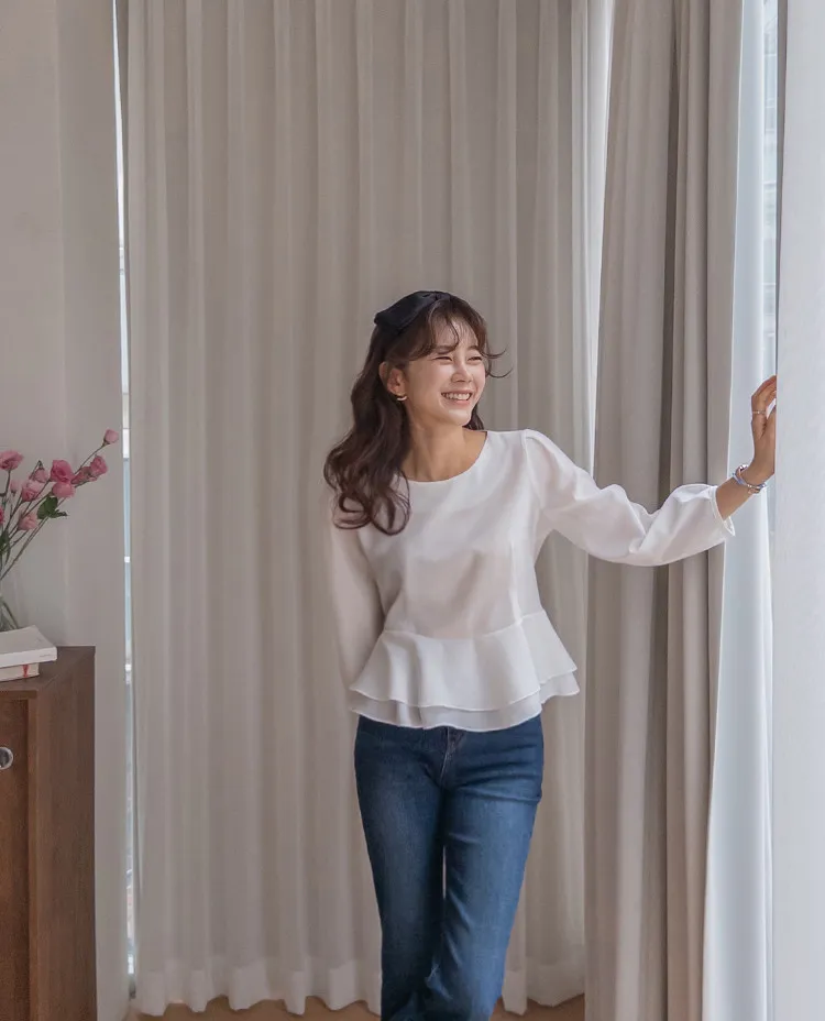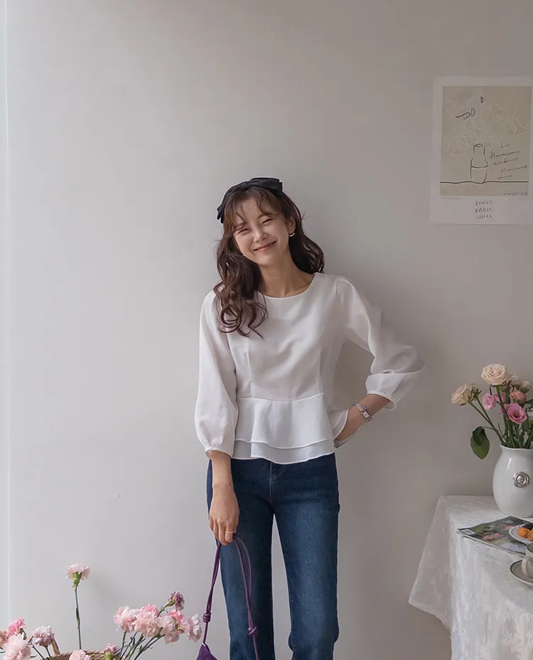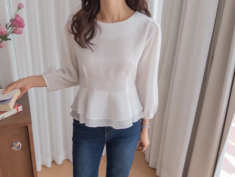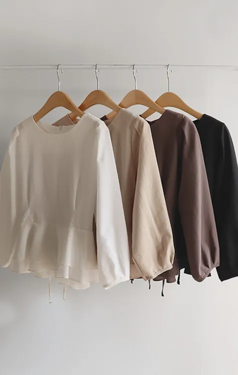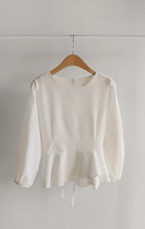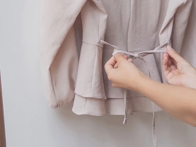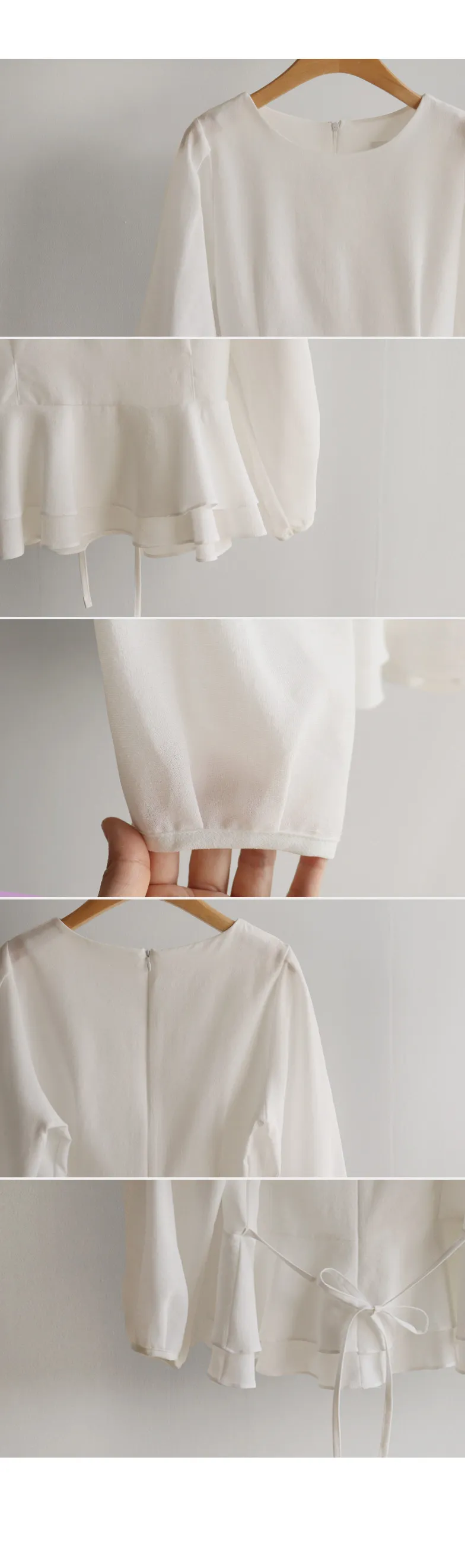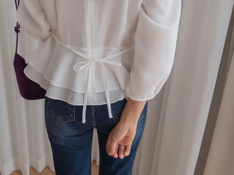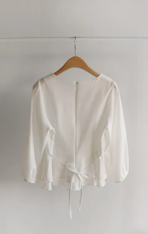 柔美雙層摺邊下擺後綁帶輕盈飄逸上衣