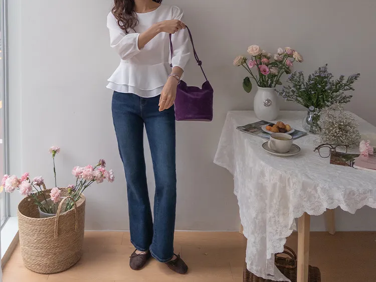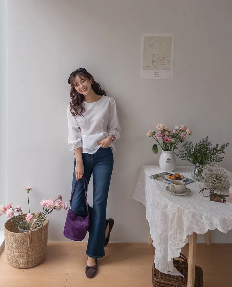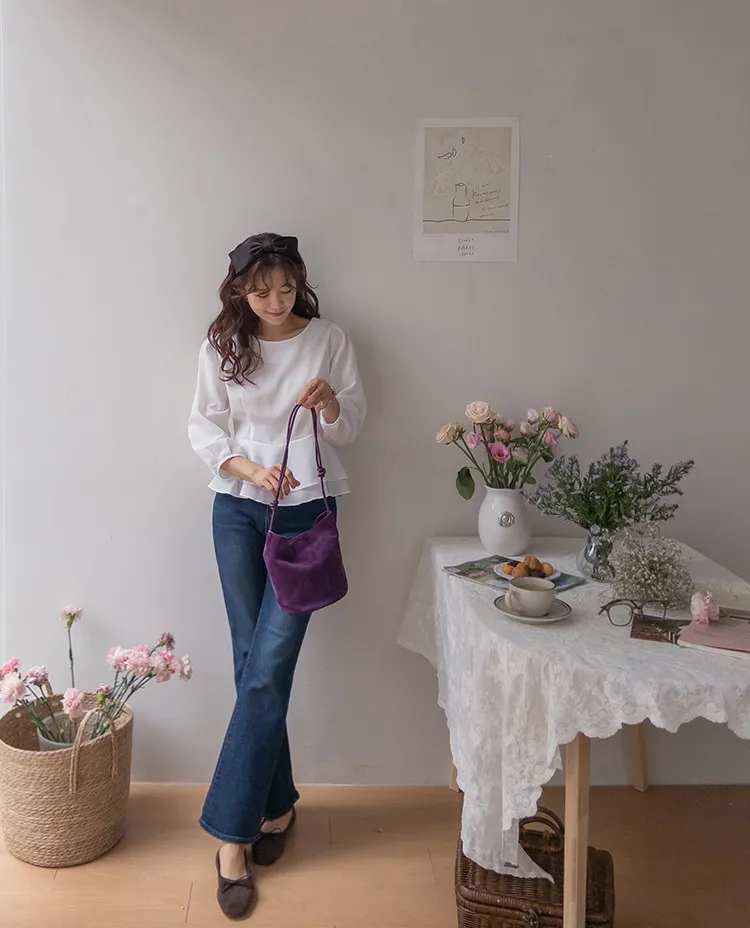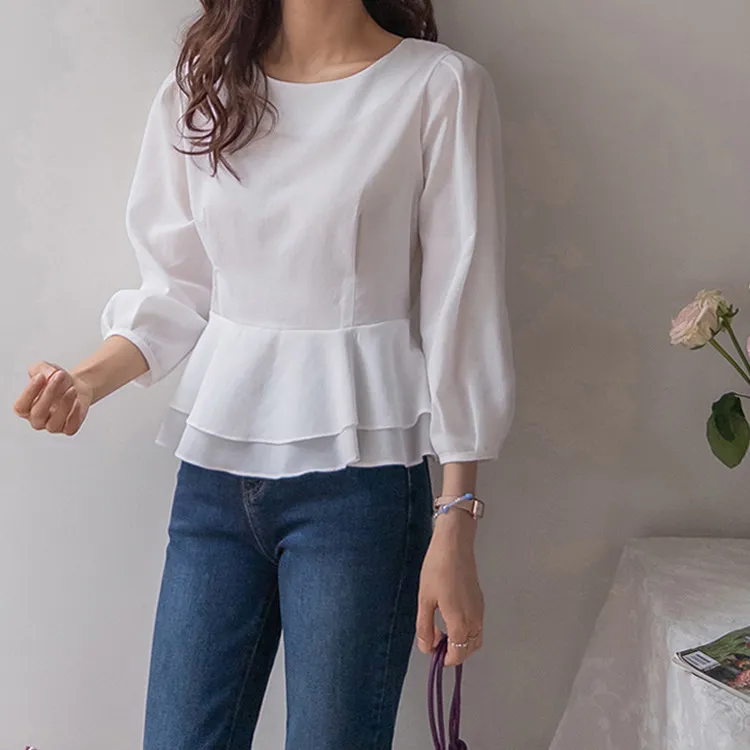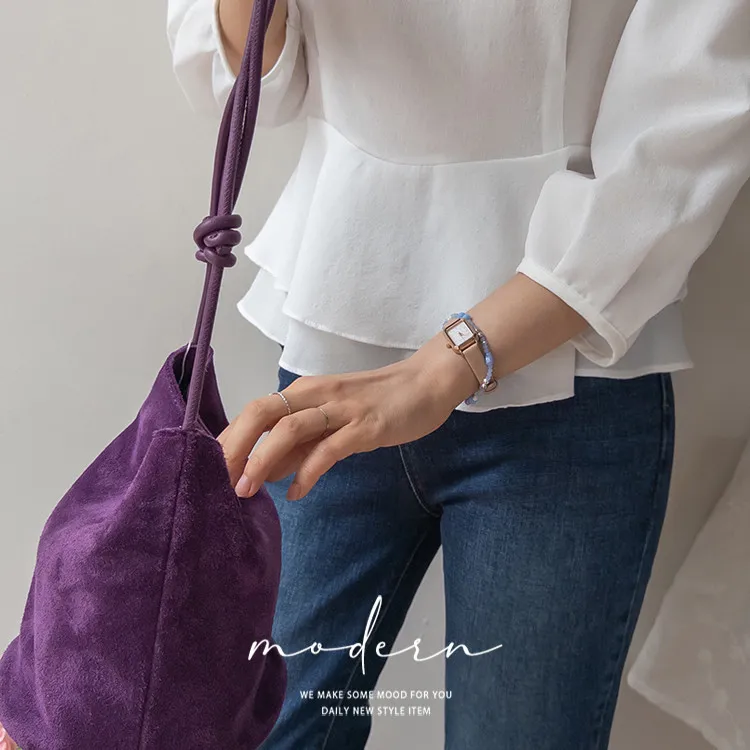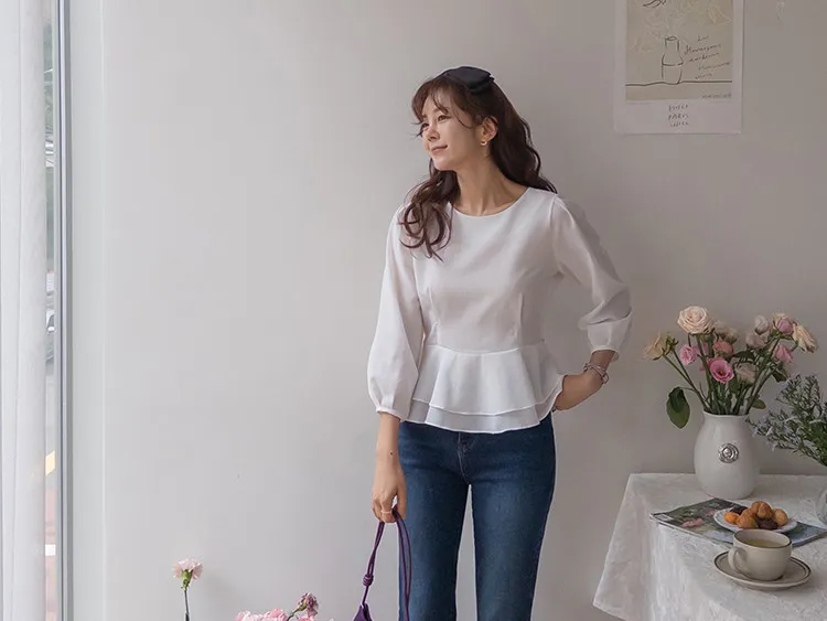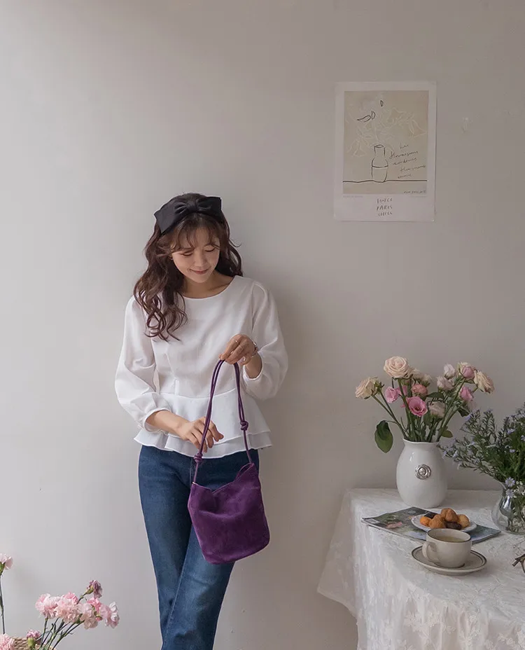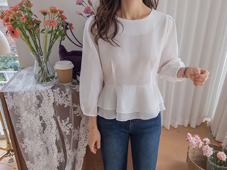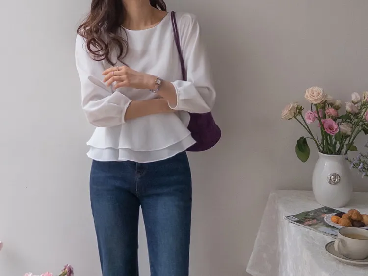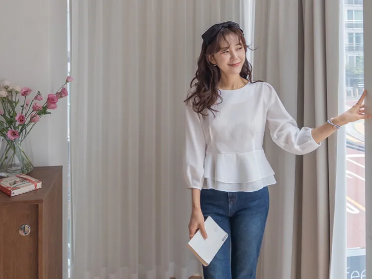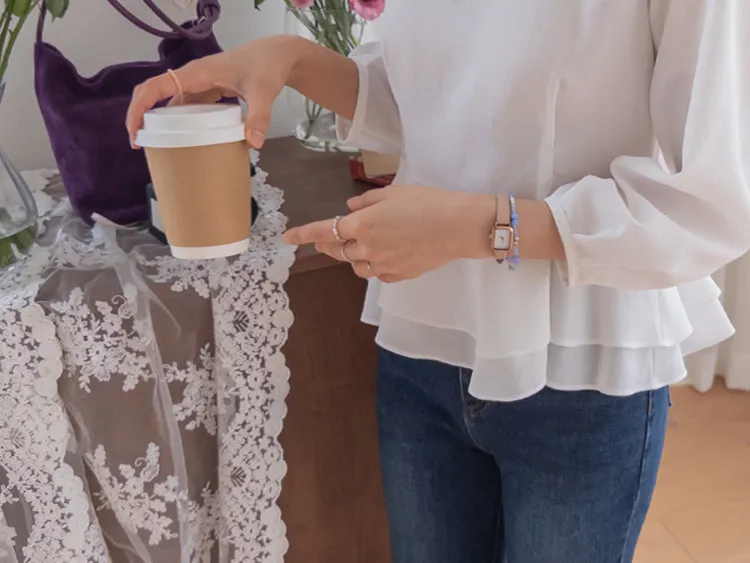 柔美雙層摺邊下擺後綁帶輕盈飄逸上衣