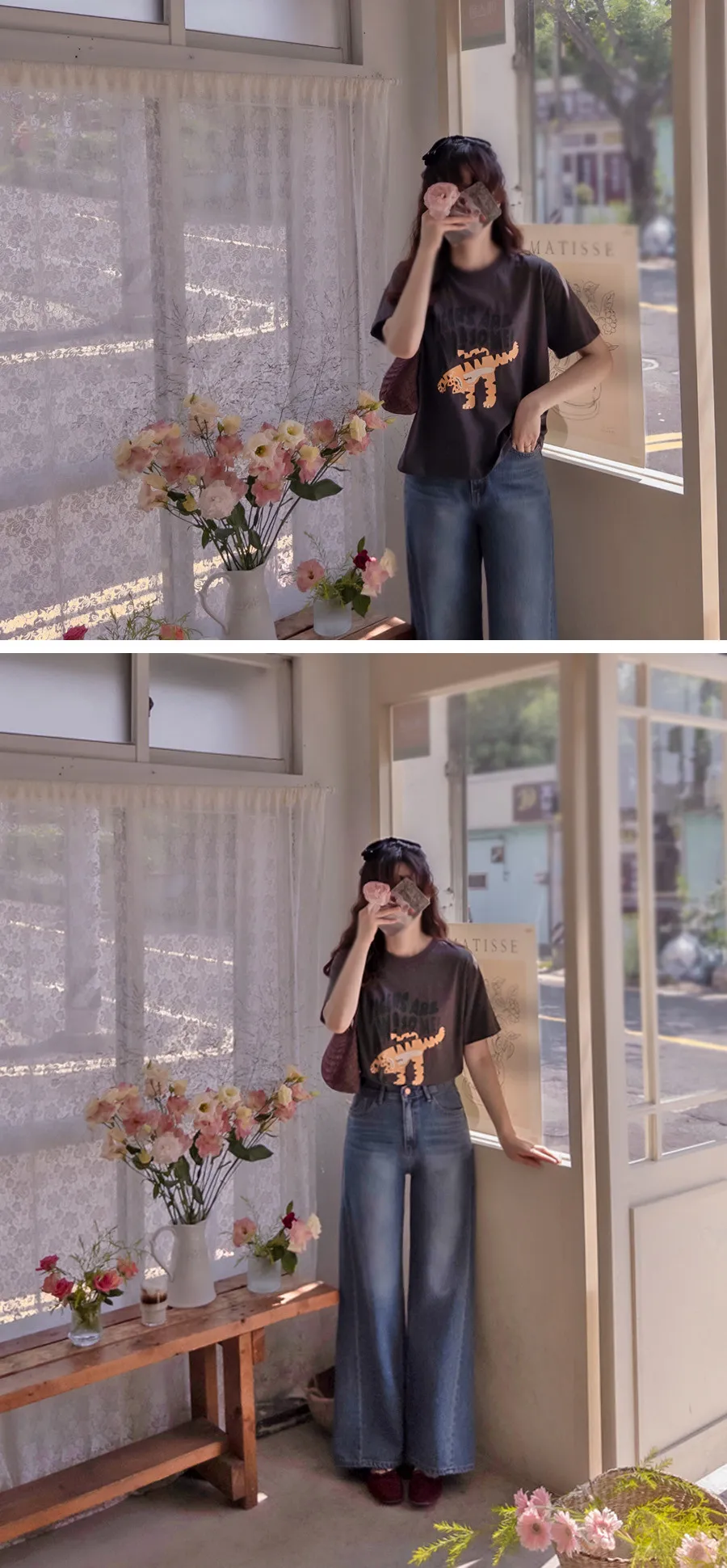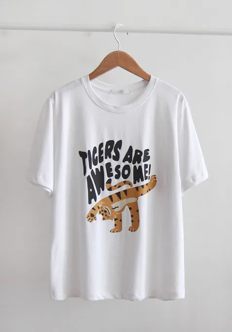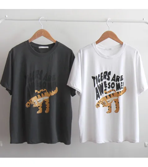 【秋季新品】【可愛的老虎印花T卹,配色精緻】【舒適的棉質面料,帶來清爽的穿著體驗】【印花圖案為整體造型增添活力】【季節色彩,適合日常穿著】【作為秋季舒適的T卹】