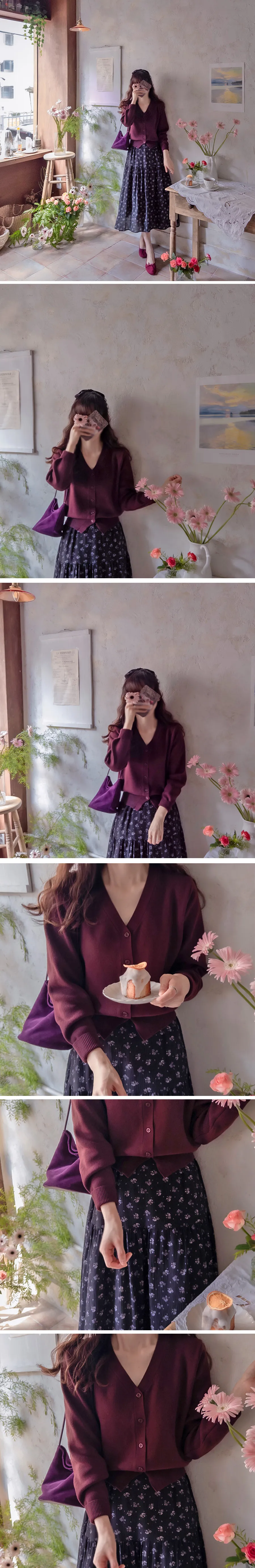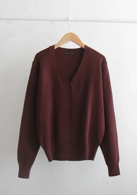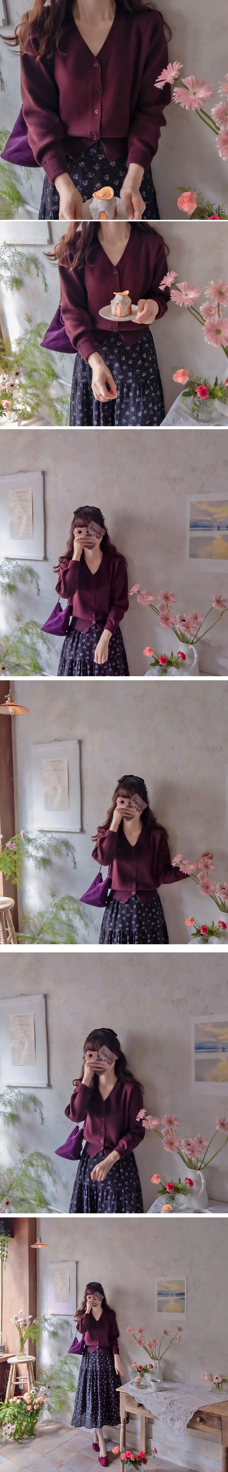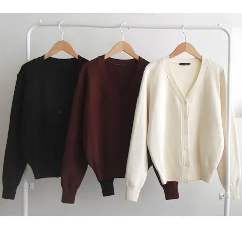 【秋季新品】 【結實柔軟的材質】【秋季色彩中充滿成熟氣息的針織開衫】【簡潔的紐扣設計,可愛又時尚】【V領針織開衫,下擺開衩,更顯纖細腰身】【穿著舒適】