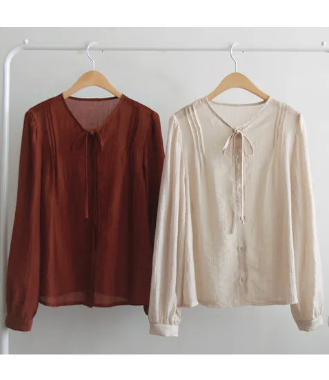 褶襉設計】【穿著舒適,色彩時尚的當季上衣】【作為優雅精緻的秋季