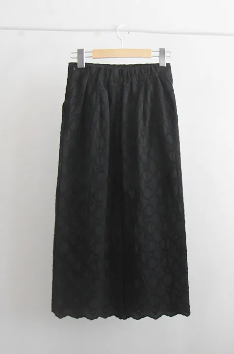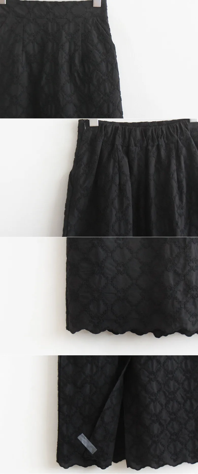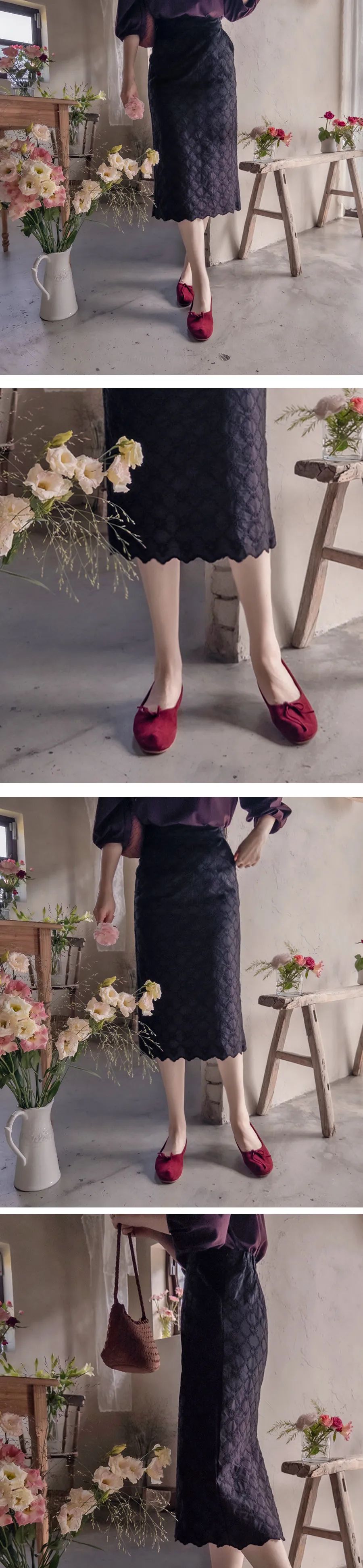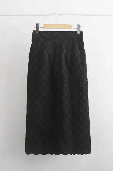 [秋季新品] [聚酯內襯] [後腰帶] [側拉鍊] [帶有立體花朵刺繡的活潑裙擺] [可愛蕾絲修身裙] [推薦作為適合秋季的日常修身裙] [後開衩,增加活動能力]