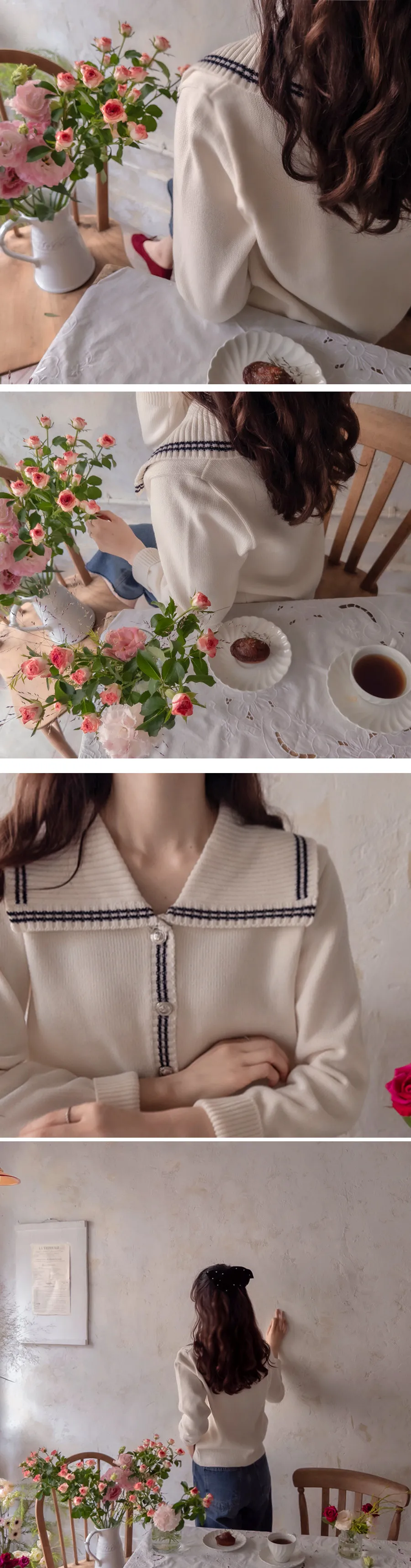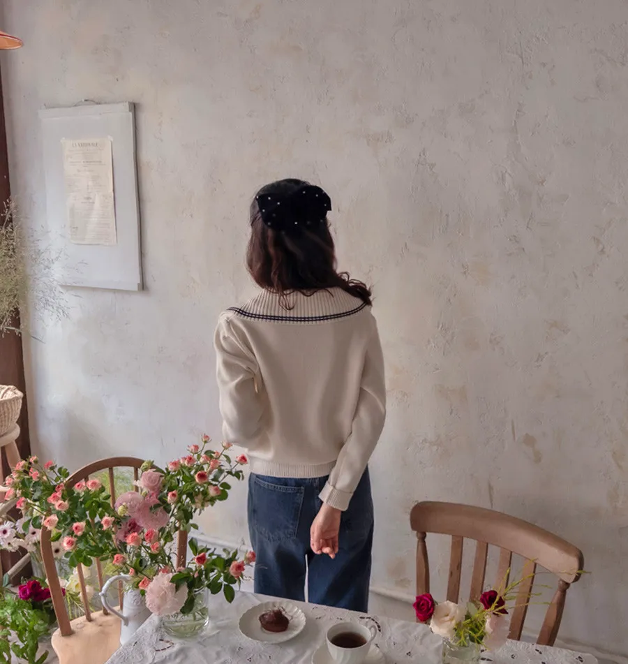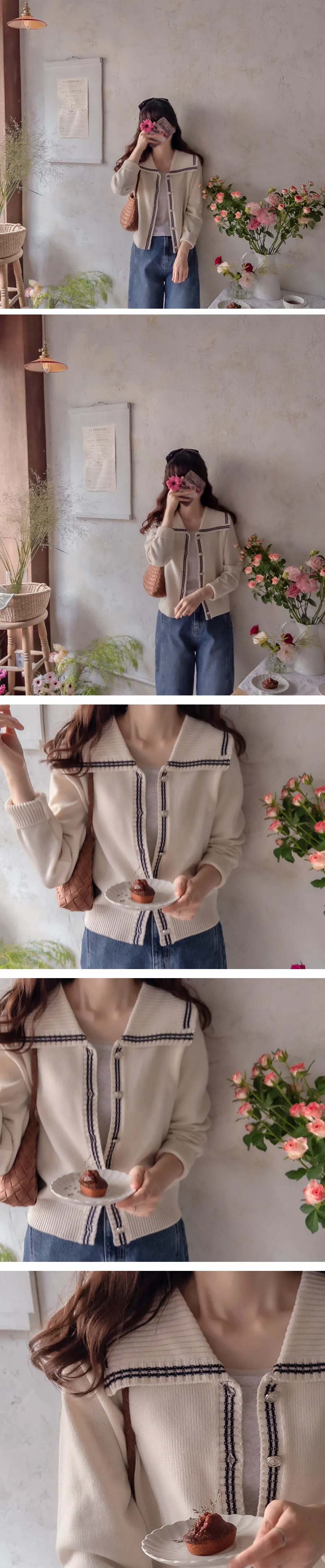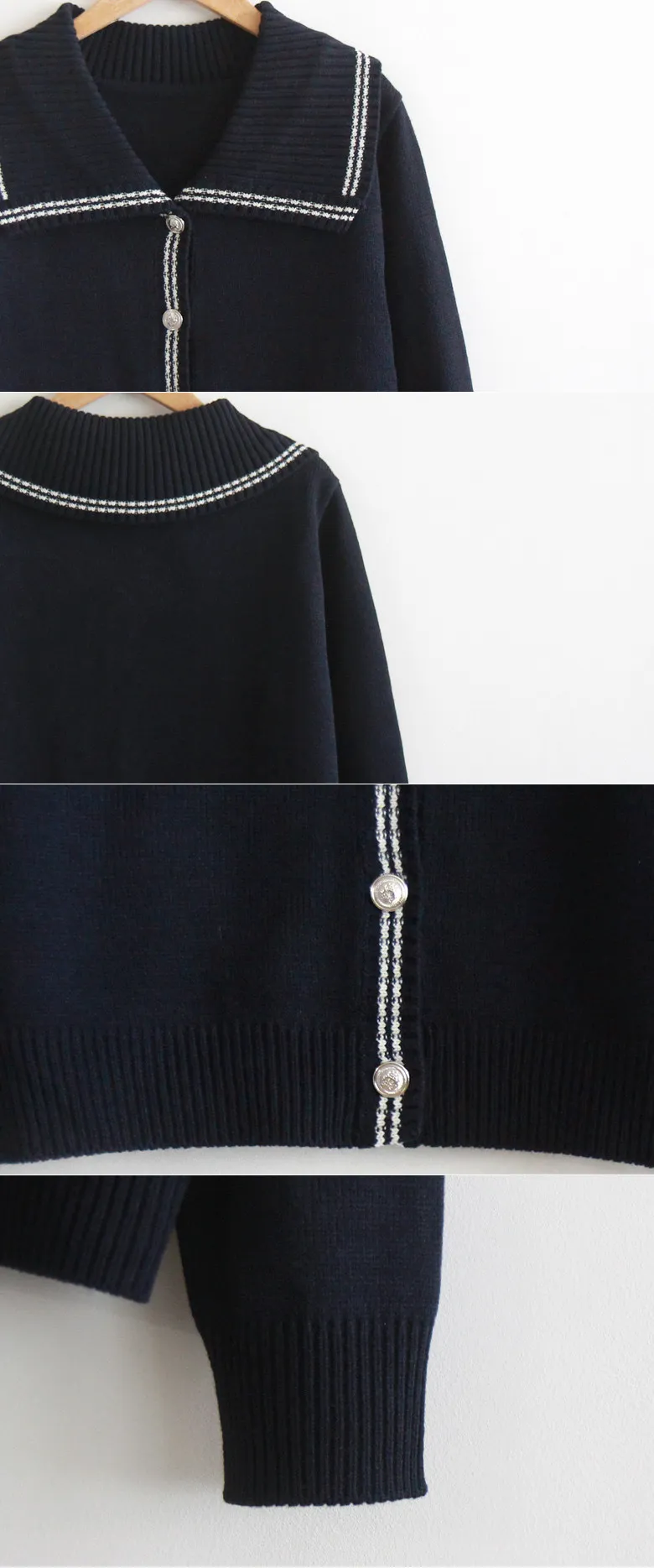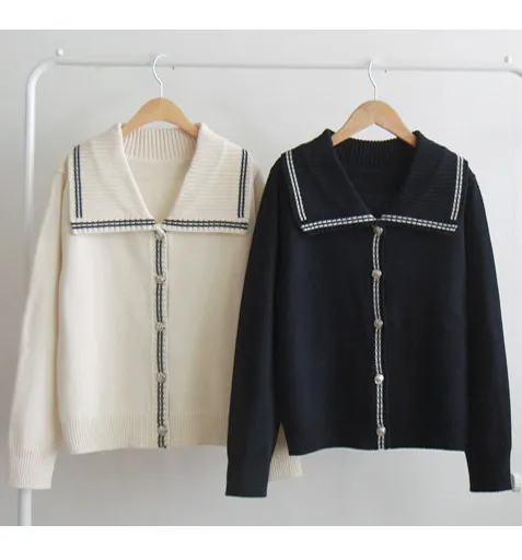 【秋季新品】【帶有線條和顏色組合,可愛魅力的水手領】【紐扣設計更顯優雅】【針織開衫回歸的季節,實用性十足,常穿之選】【提升風格的日常針織開衫】