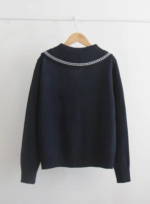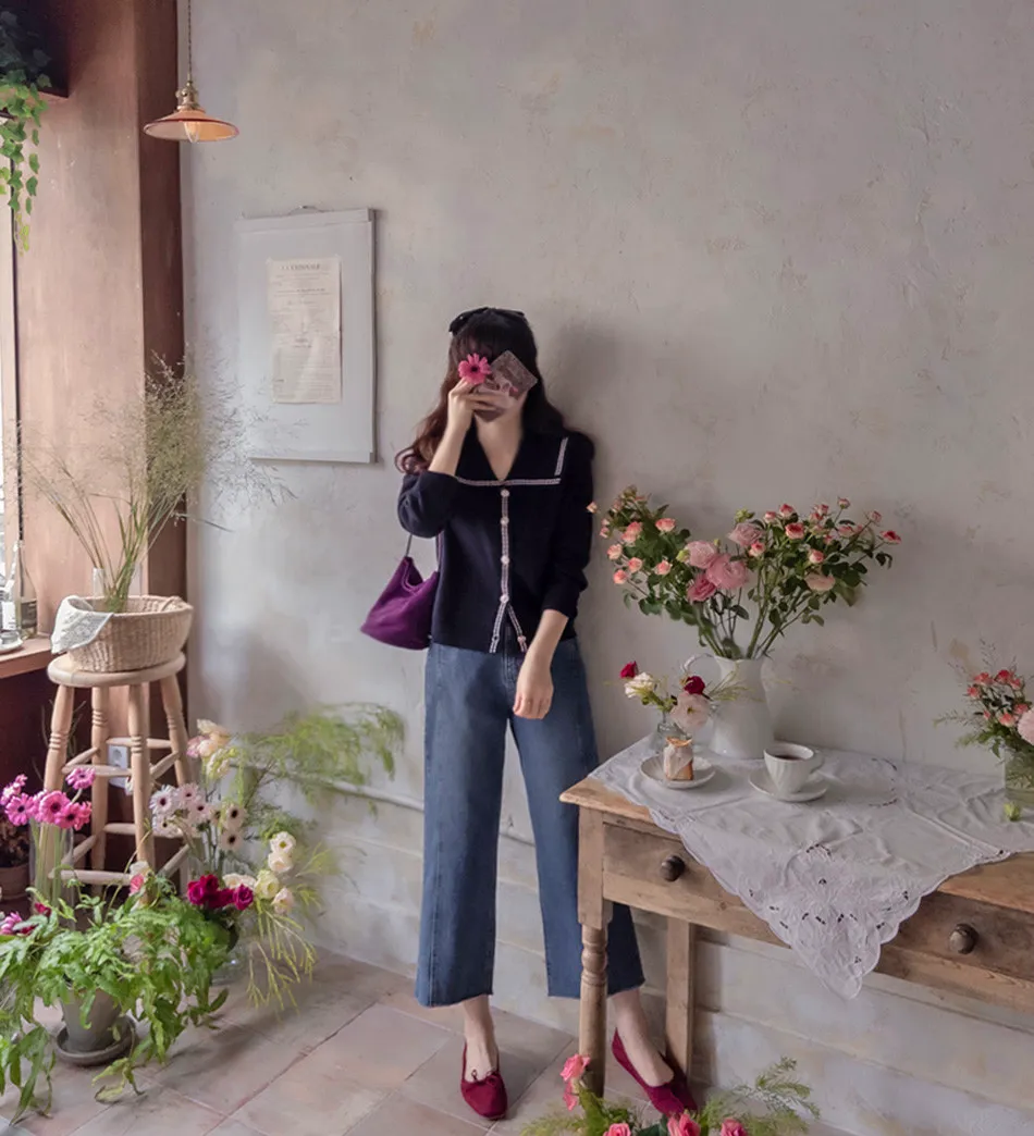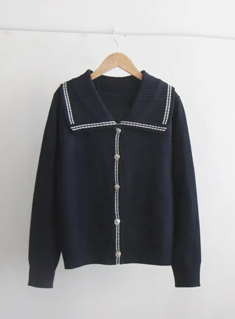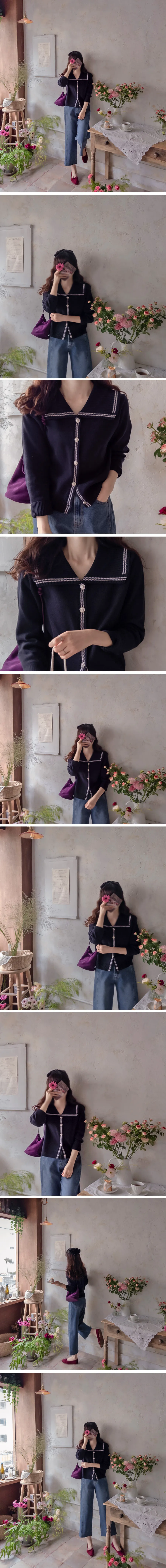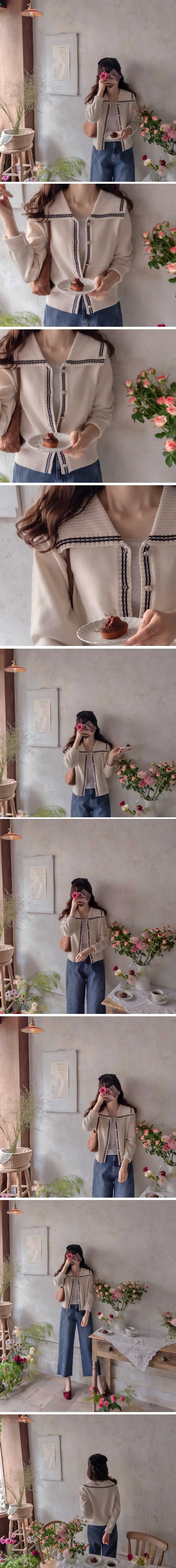 【秋季新品】【帶有線條和顏色組合,可愛魅力的水手領】【紐扣設計更顯優雅】【針織開衫回歸的季節,實用性十足,常穿之選】【提升風格的日常針織開衫】