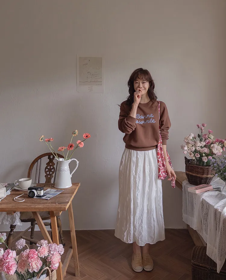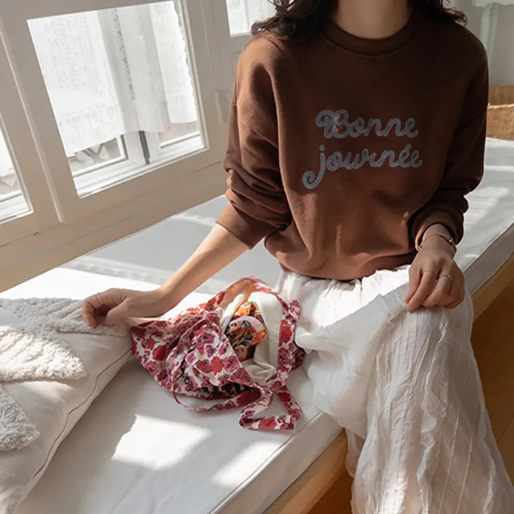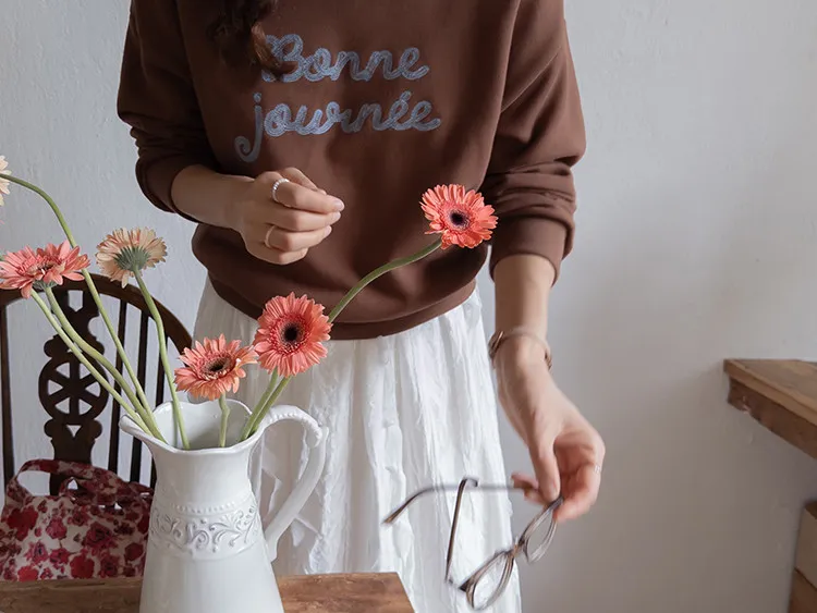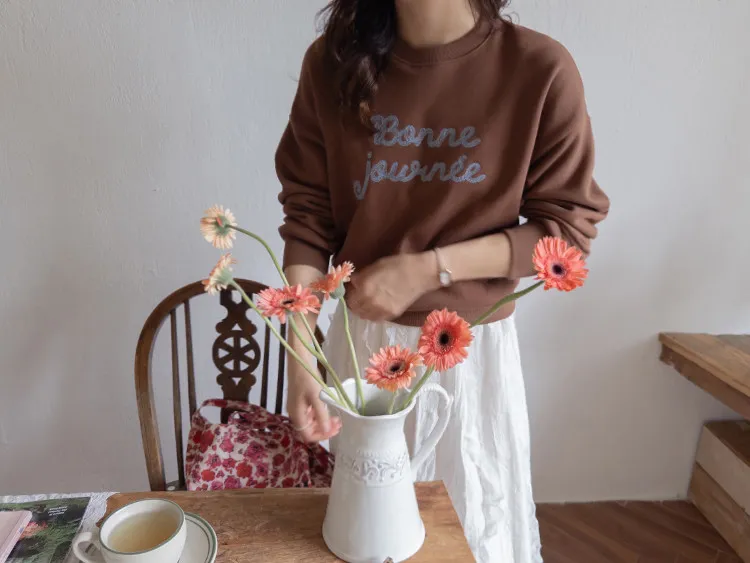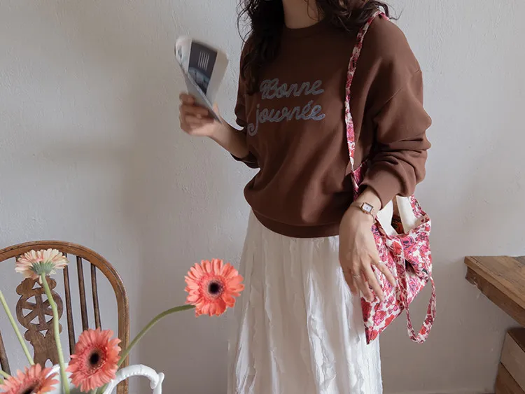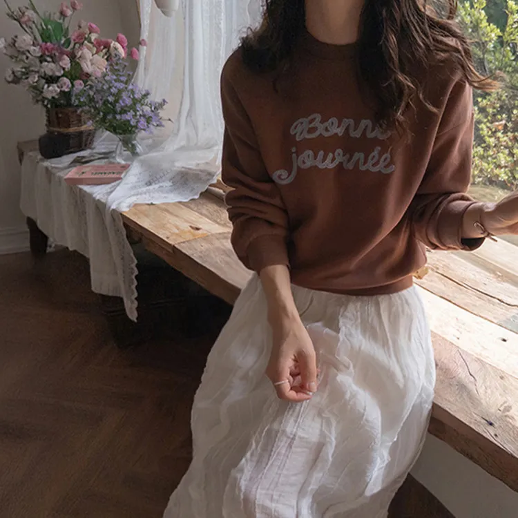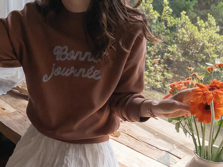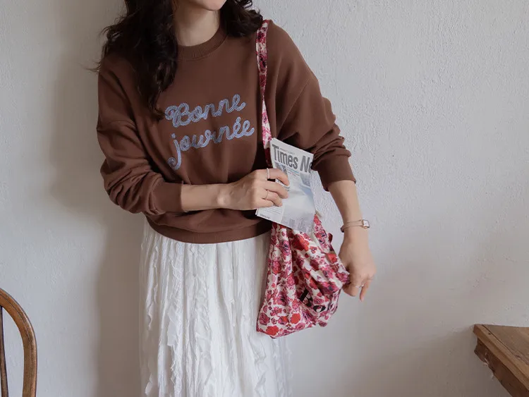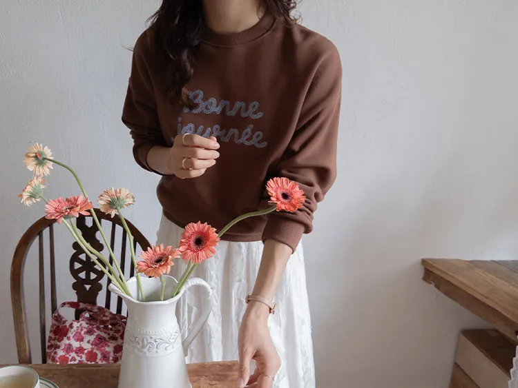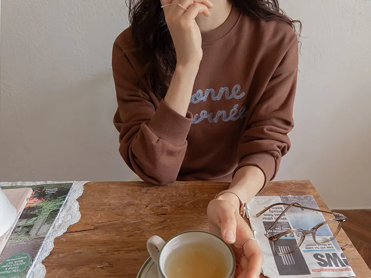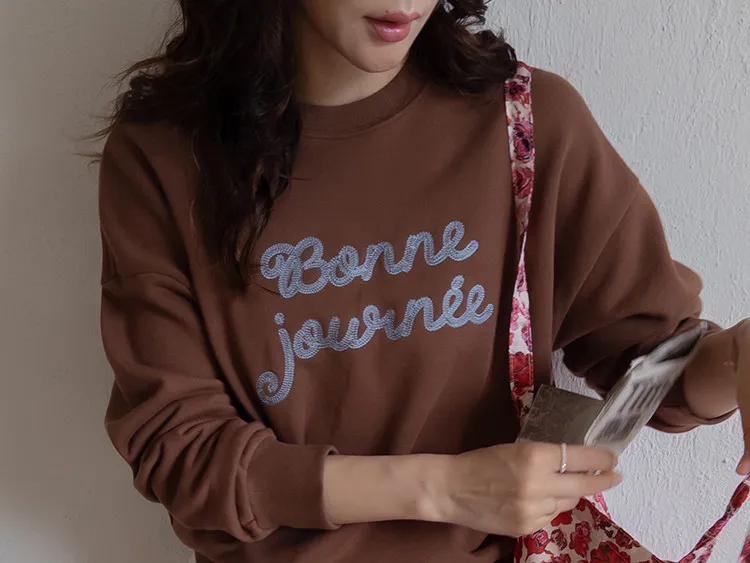 【繡有文字的休閒上衣♥】【適合日常搭配! 】【修身版型,完美遮蓋身形】【值得擁有的百搭單品! 】