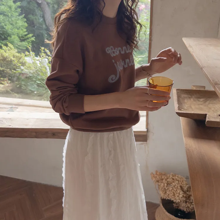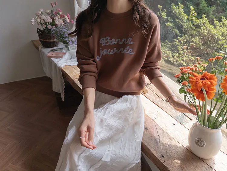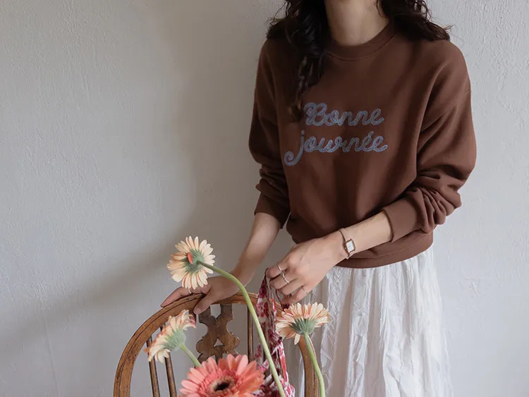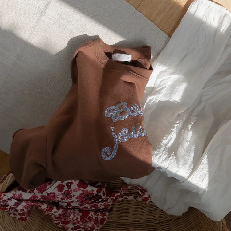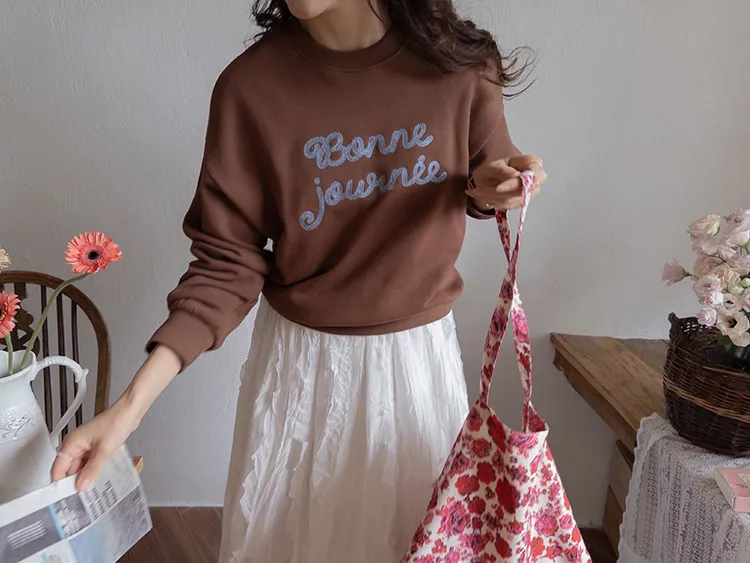 獨特色彩字母刺繡修身穿搭上衣