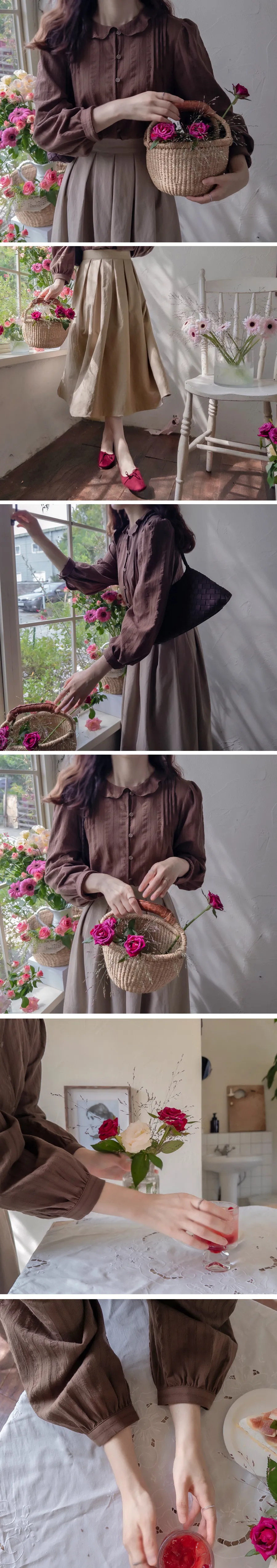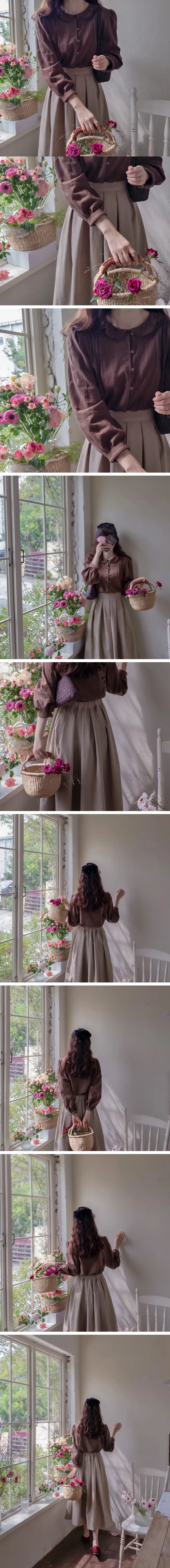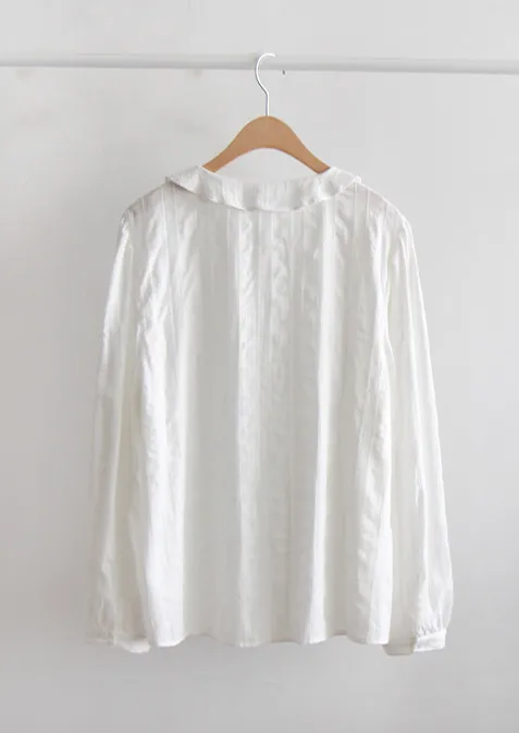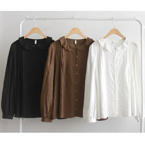 【秋季新品】【以細膩線條和漂亮的褶襉為亮點的面料】【以細膩的波浪領口為亮點的可愛設計】【搭配秋季色彩的精緻感】【作為適合經常穿著的優雅秋季上衣】