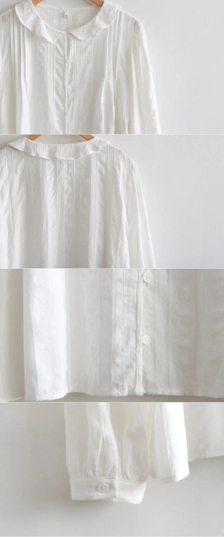 優雅波浪領口細膩線條褶襉排扣上衣