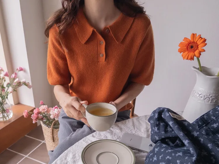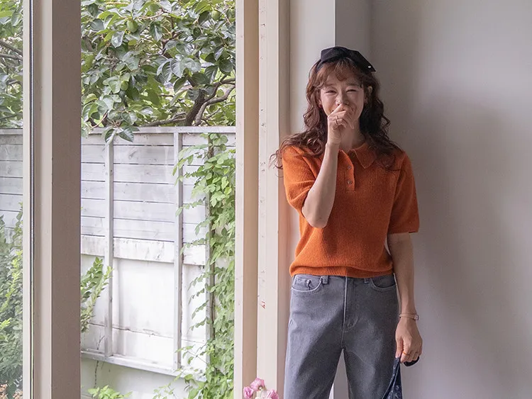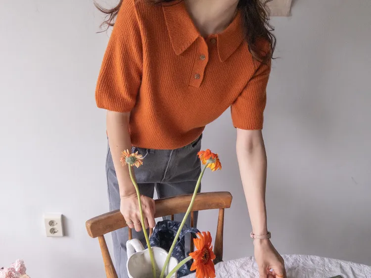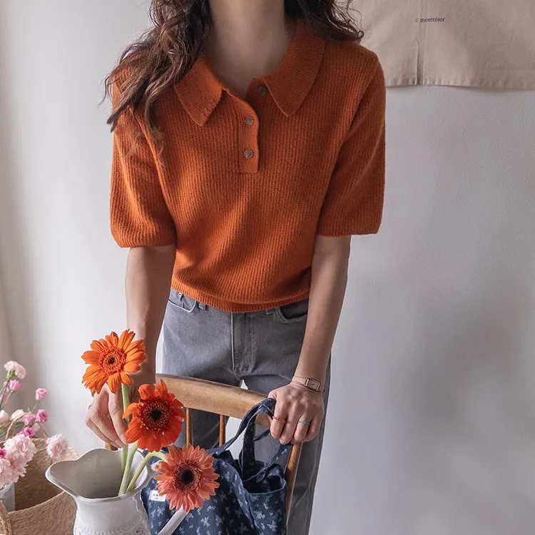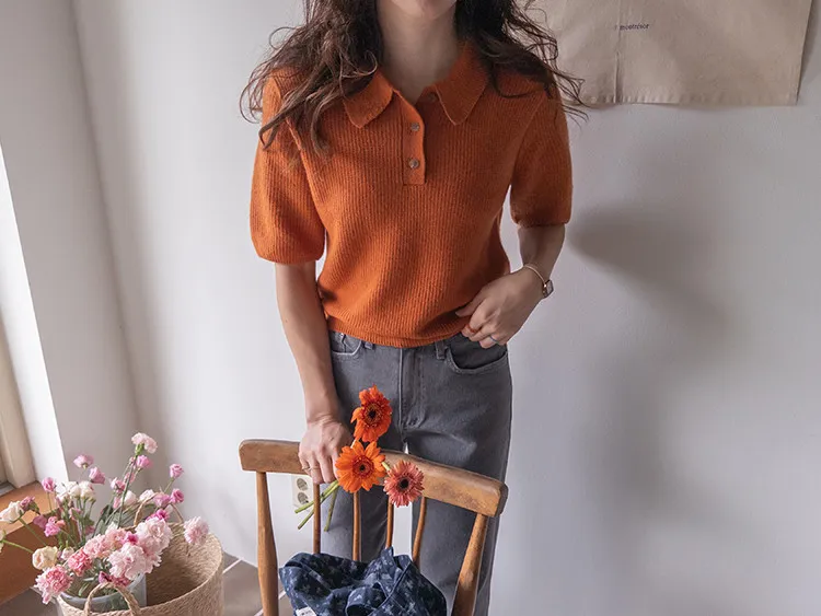 【蓬鬆~毛茸茸的羊毛領短袖針織衫♡】【營造舒適氛圍~】【舒適穿著感】【適合在平靜的季節和換季期間的日常穿著! 】