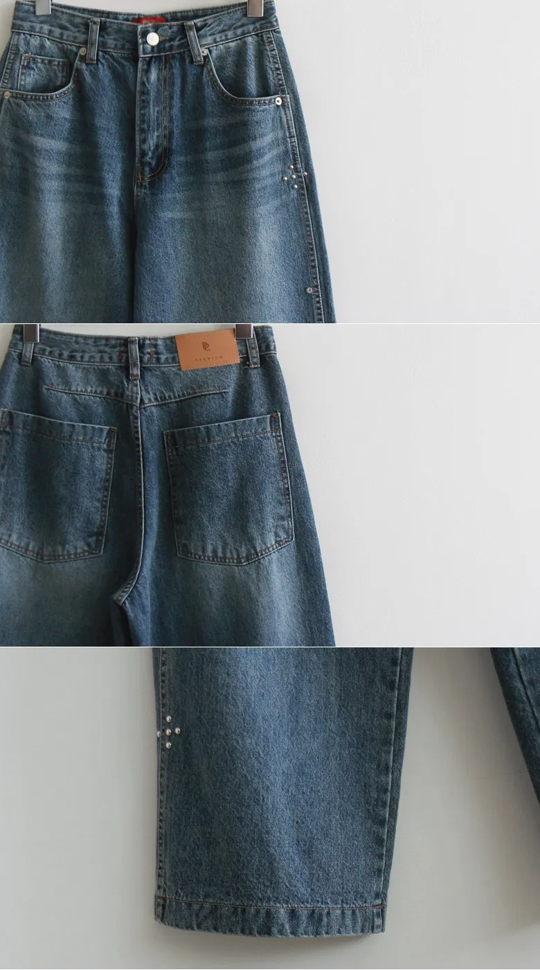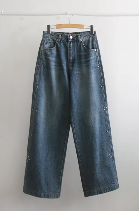獨特側邊迷你鉚釘點綴半寬修身牛仔褲