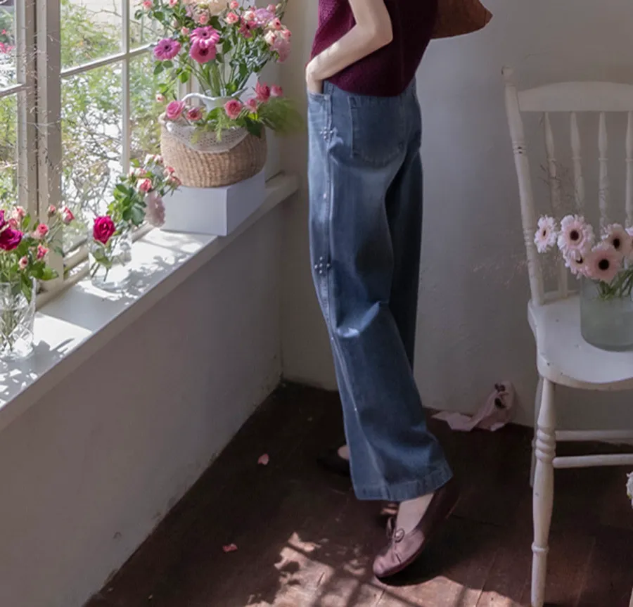 【秋季新品】【品牌品質】【舒適貼身,彈性】【獨特迷你鉚釘設計,精製褲子脫穎而出】【時尚舒適,遮蓋身形,穿著舒適】【推薦有彈性的牛仔褲,非常適合秋季日常穿著】