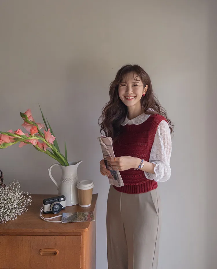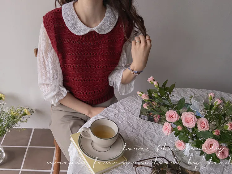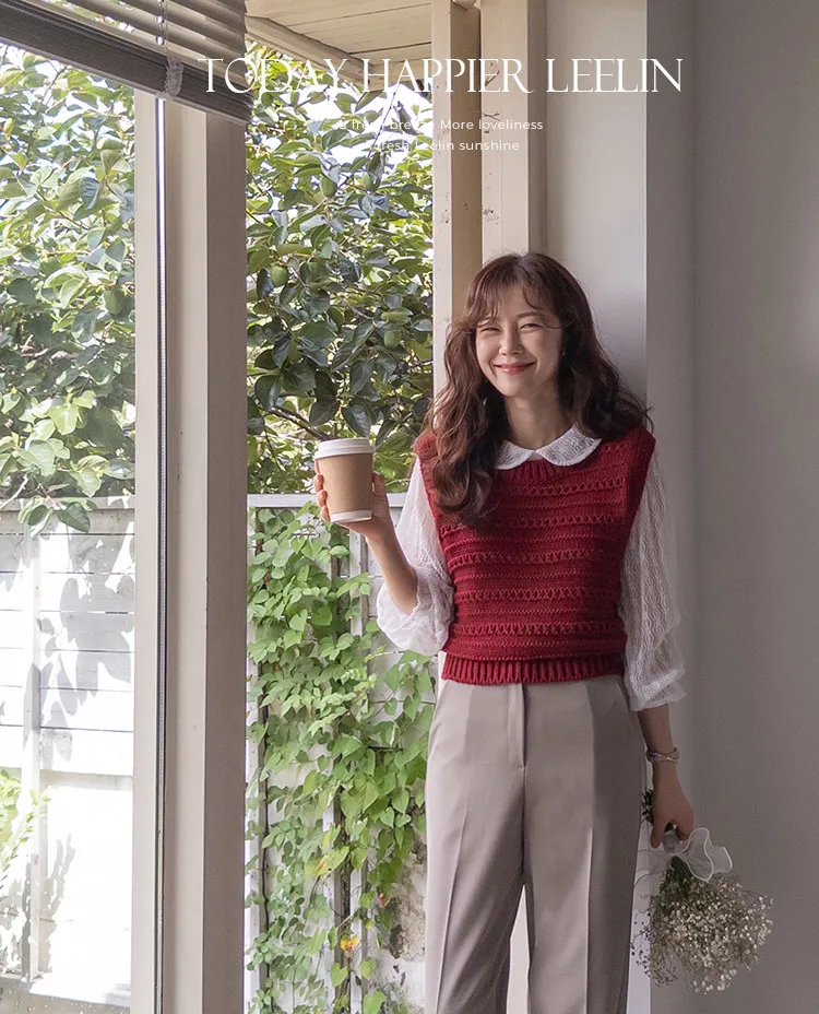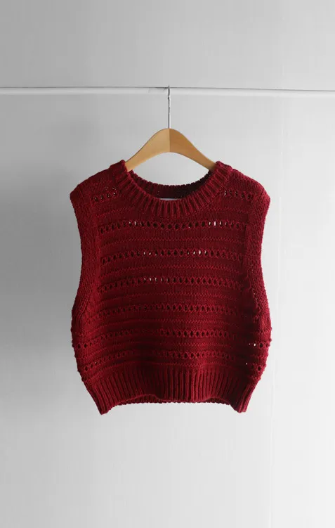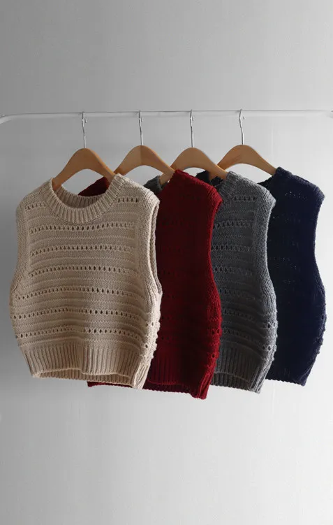 【換季百搭的疊穿單品,鏤空針織背心】 【可愛的鏤空孔洞細節♥】 【溫暖的厚度,適合整個冬天~】 【寬鬆版型】