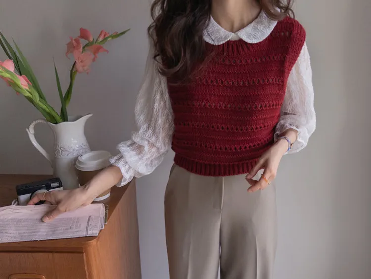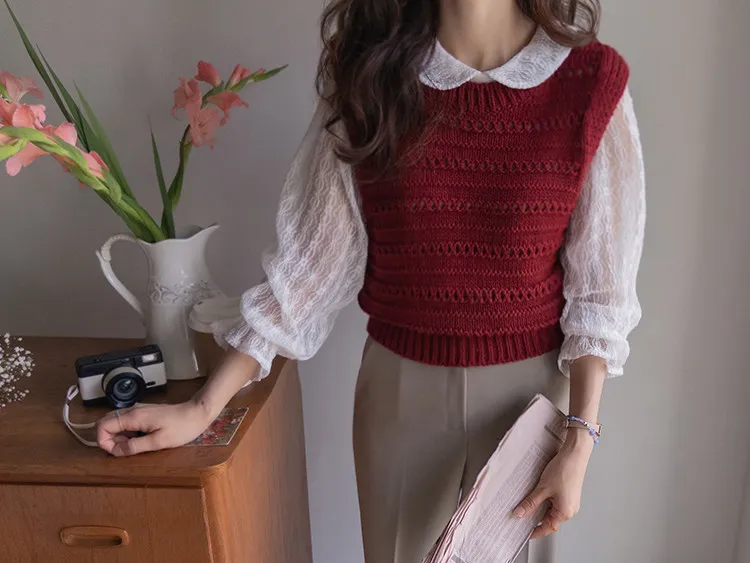 可愛鏤空孔洞寬鬆版型穿搭背心