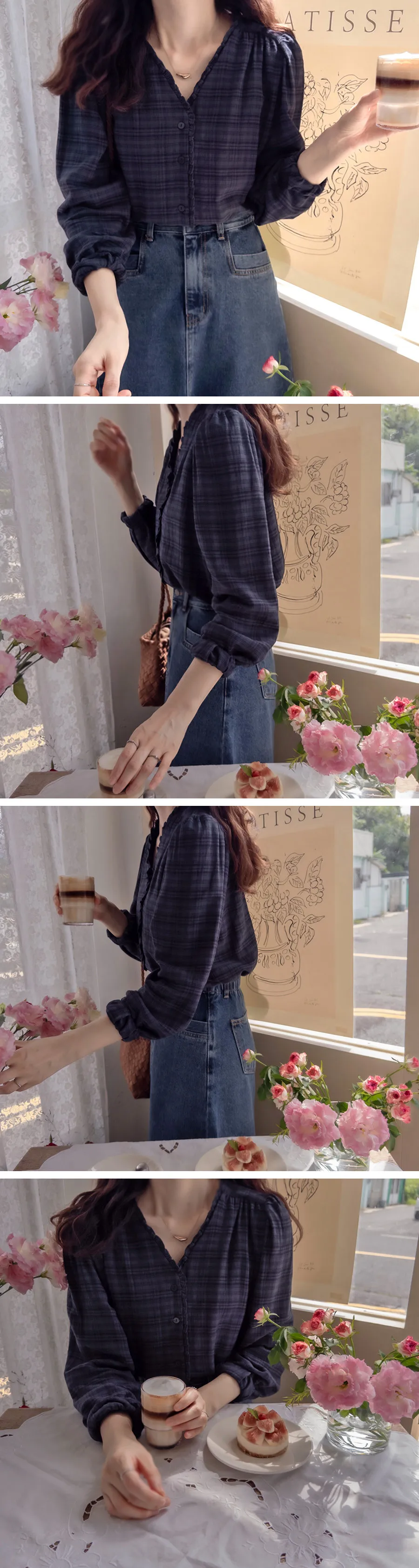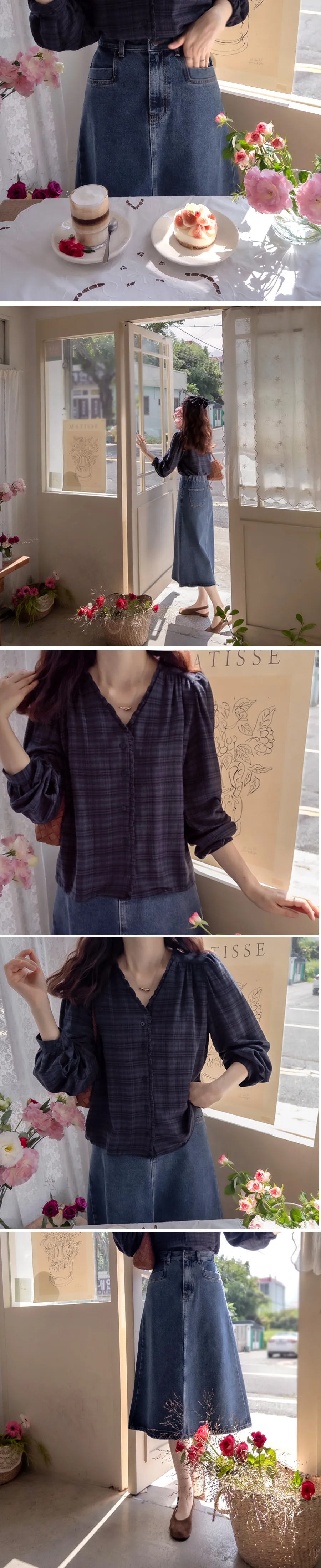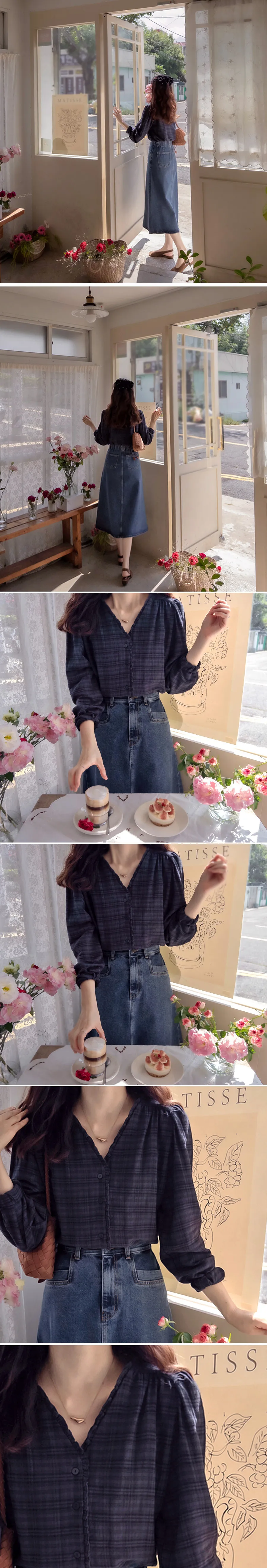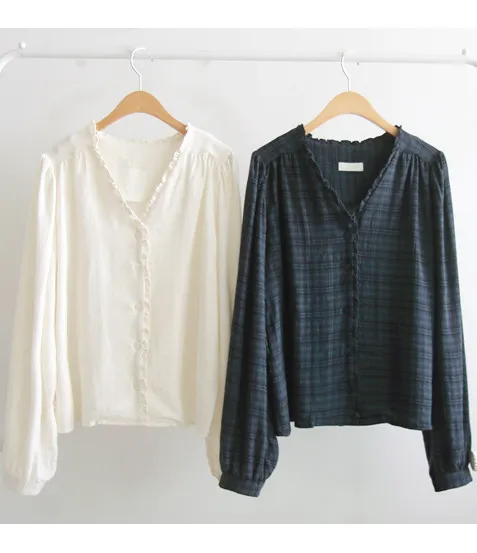 【秋季新品】【柔軟有彈性的格紋上衣】【格紋圖案精緻設計】【精緻剪裁的上衣】【當季色彩感】【推薦作為秋季日常穿著的格紋上衣】