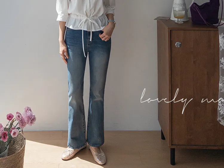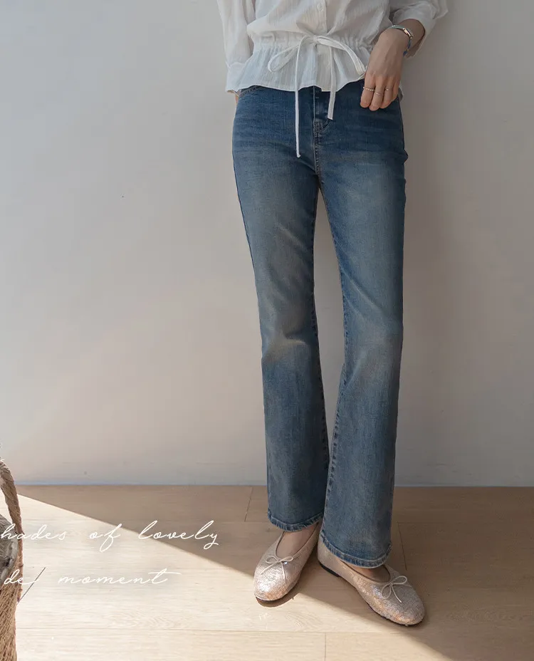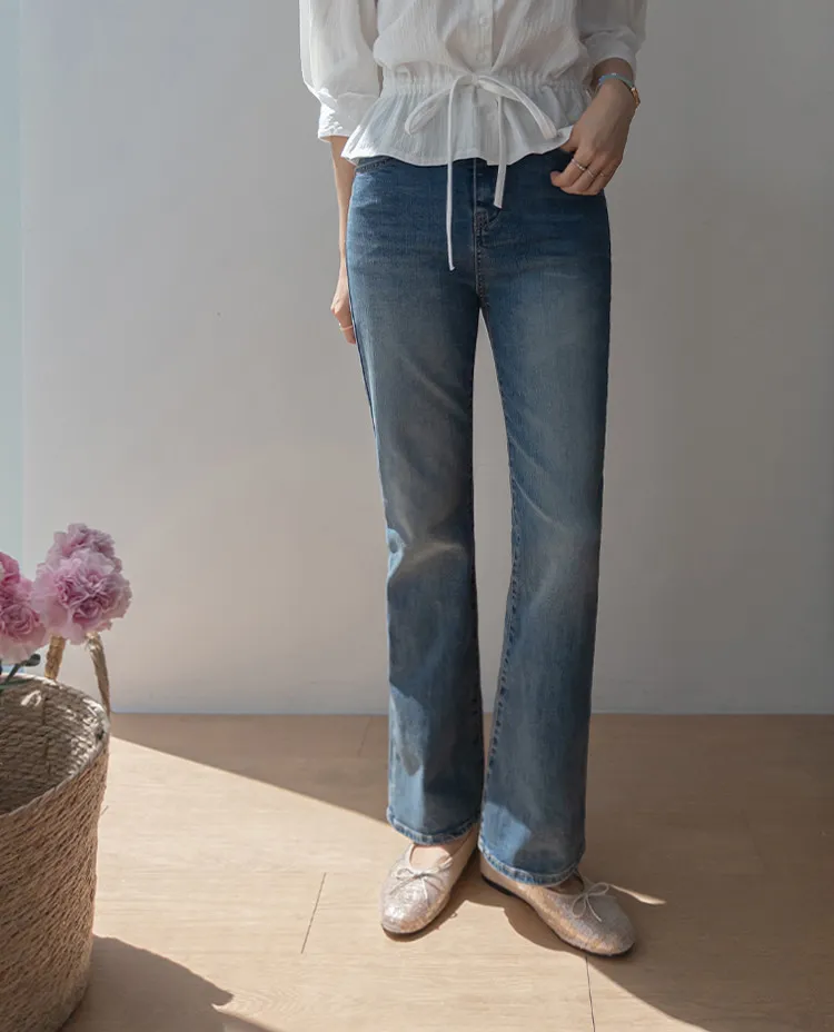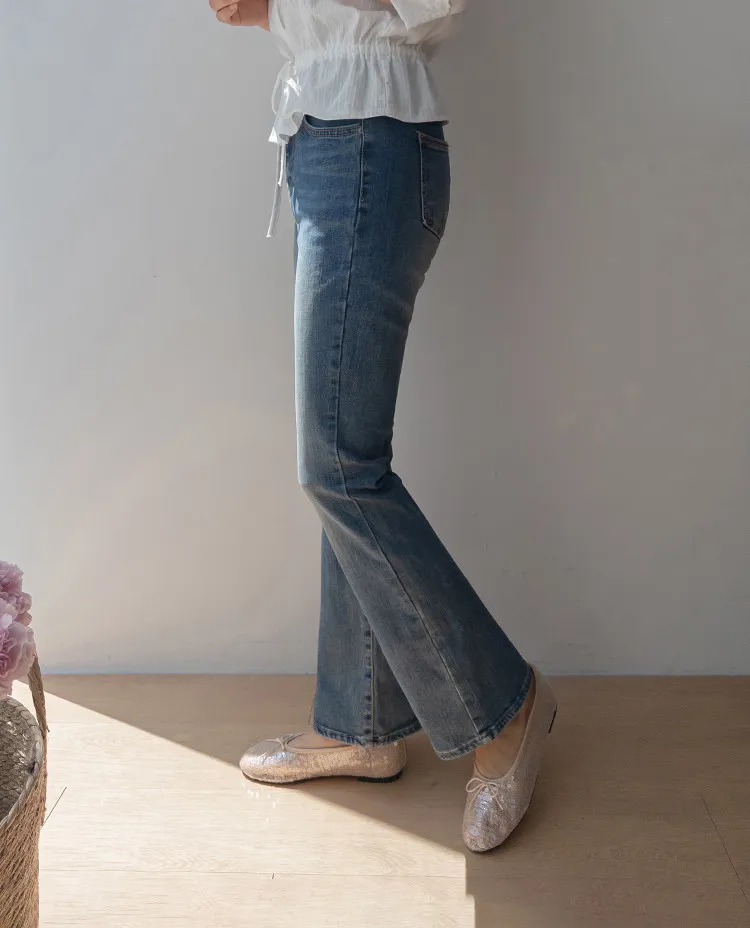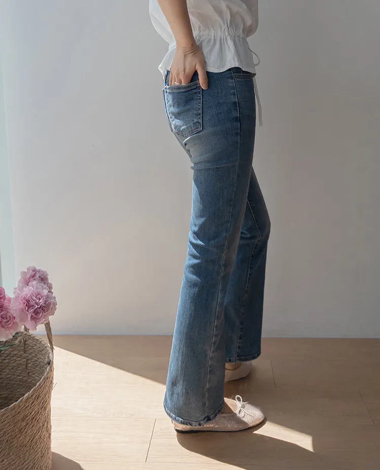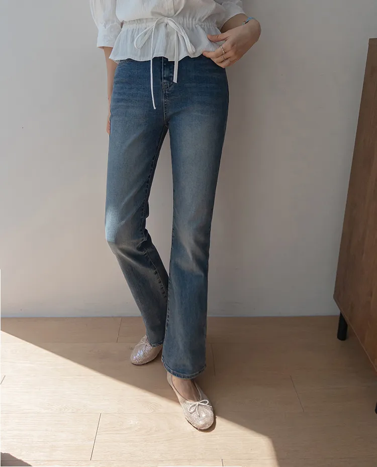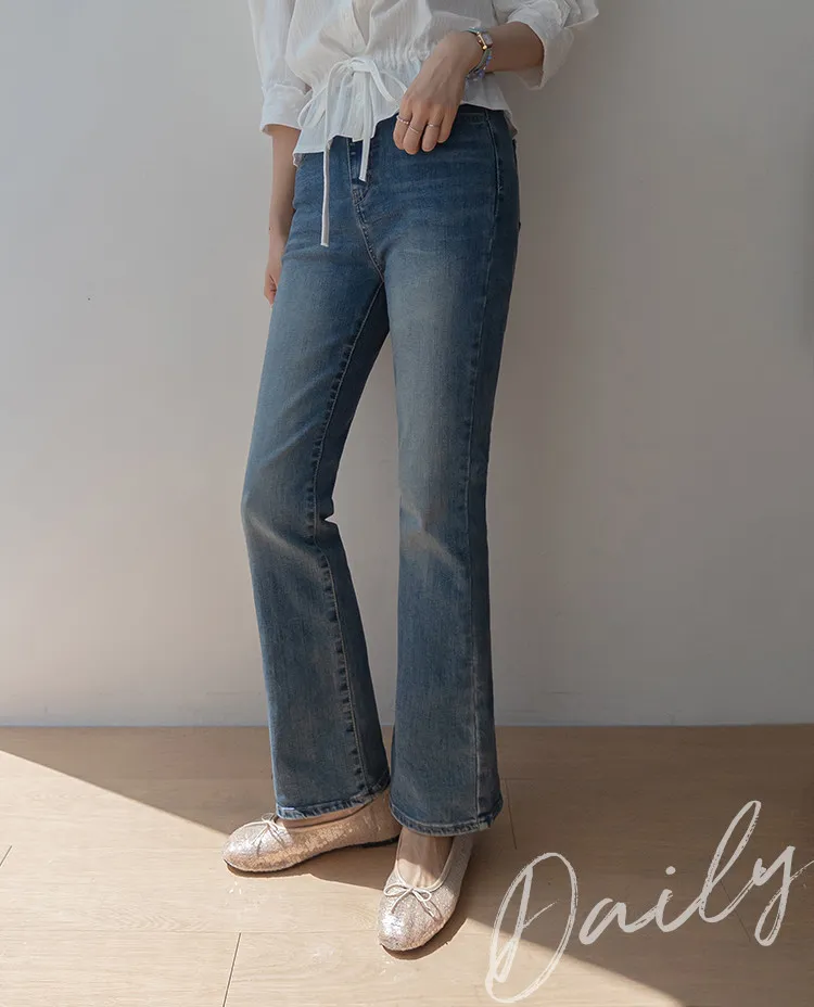 【柔軟氨綸觸感的修身靴型牛仔褲♥】 【修身