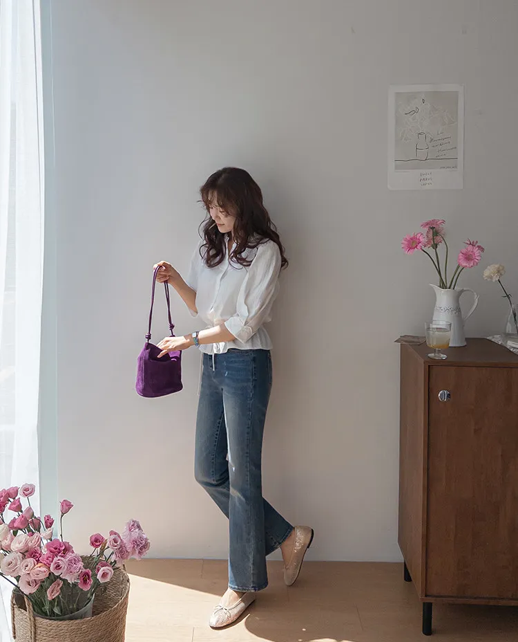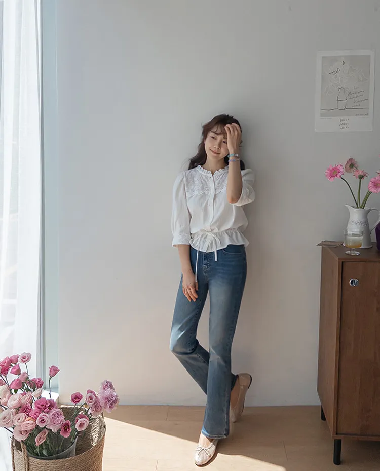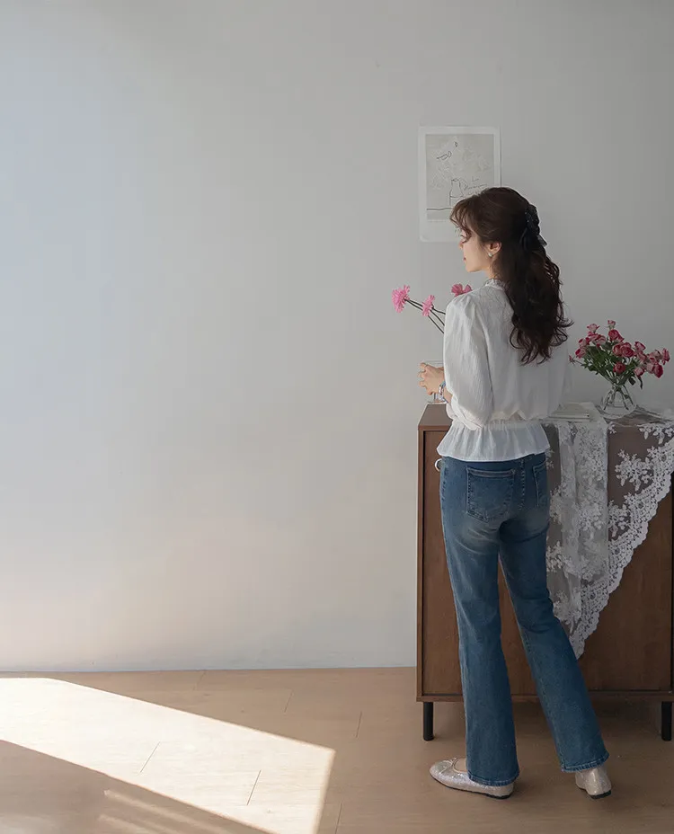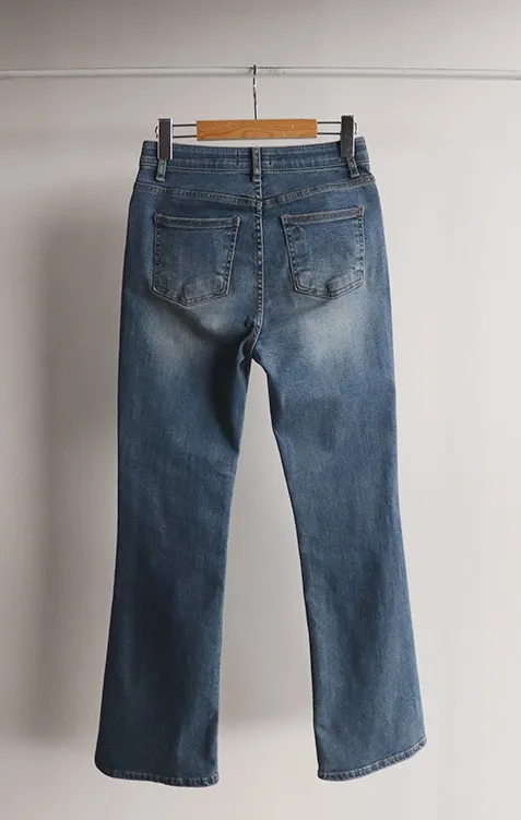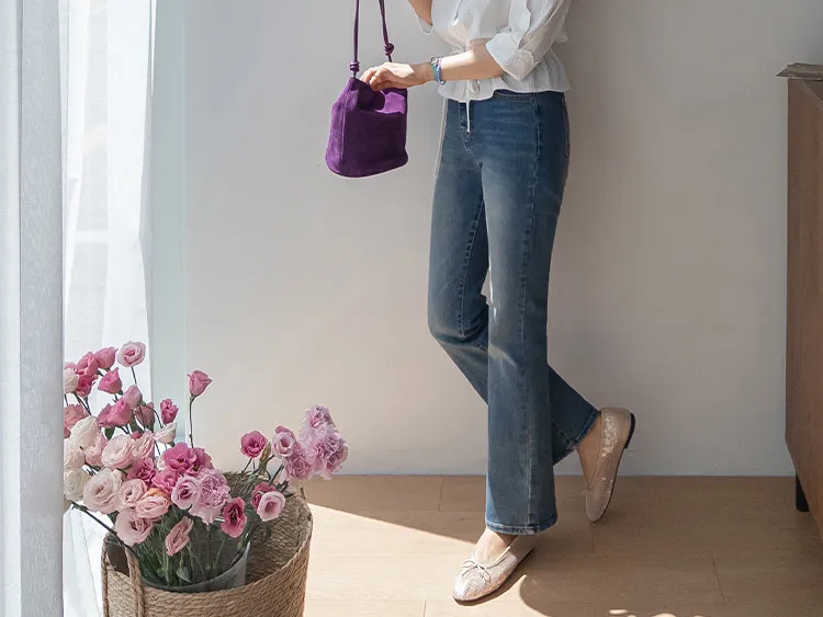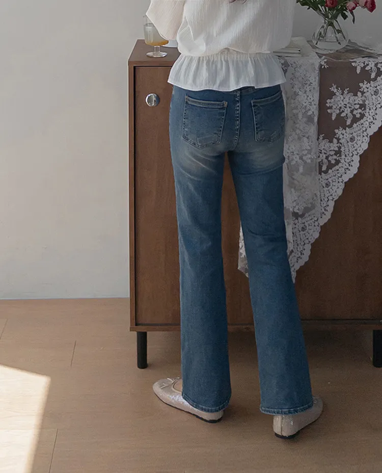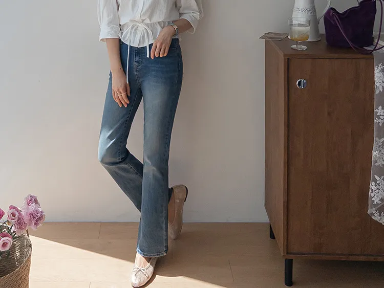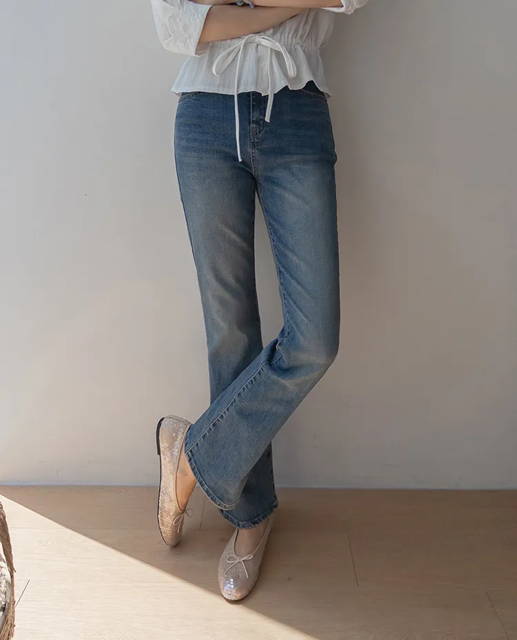【柔軟氨綸觸感的修身靴型牛仔褲♥】 【修身