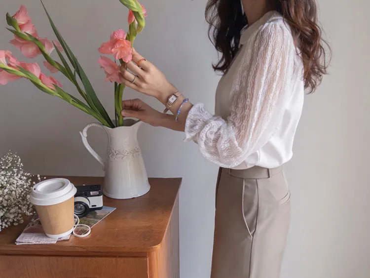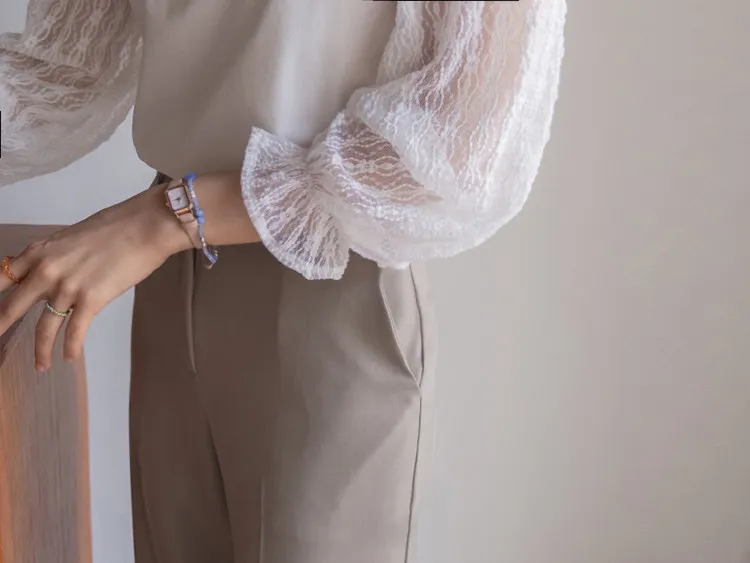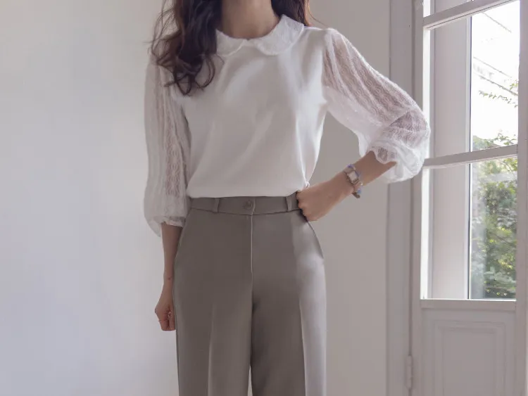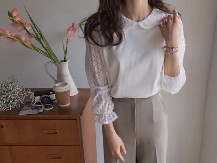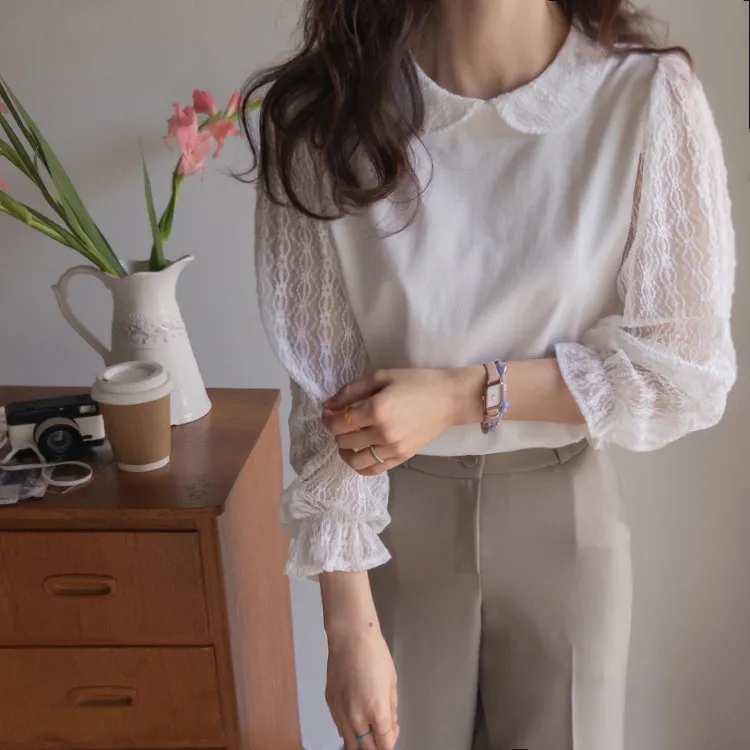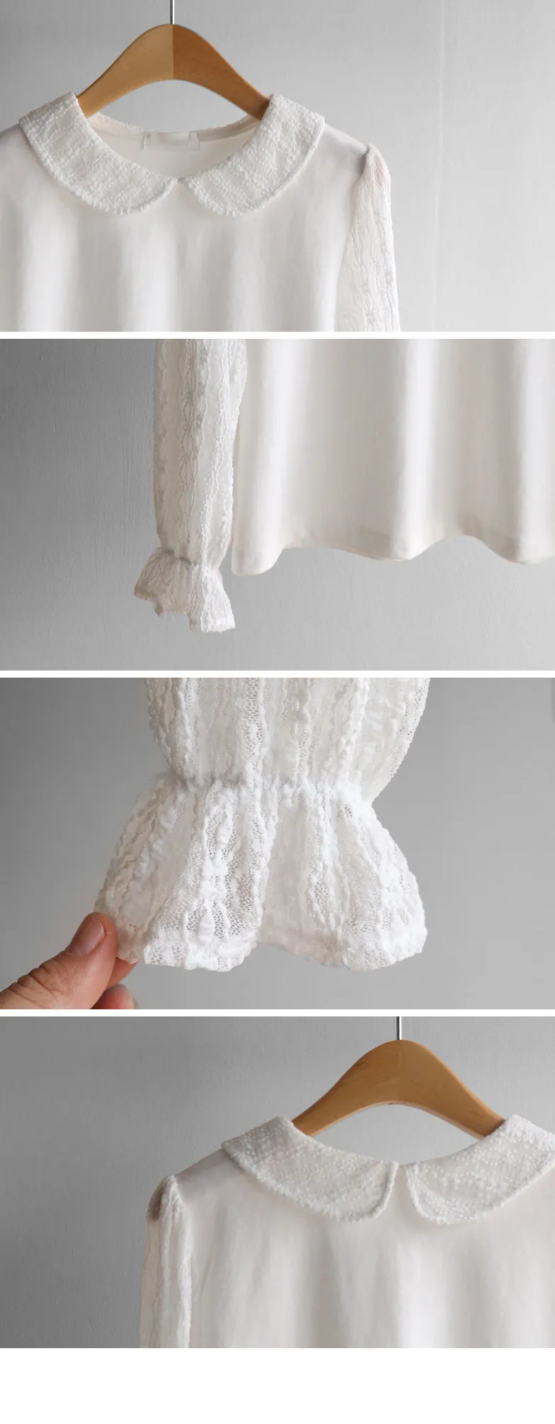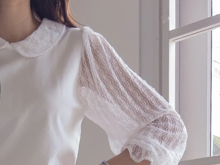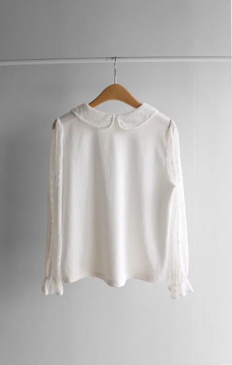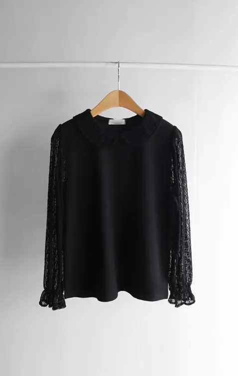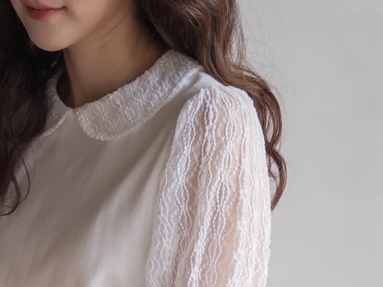 優雅浪漫圓領透膚蕾絲袖上衣