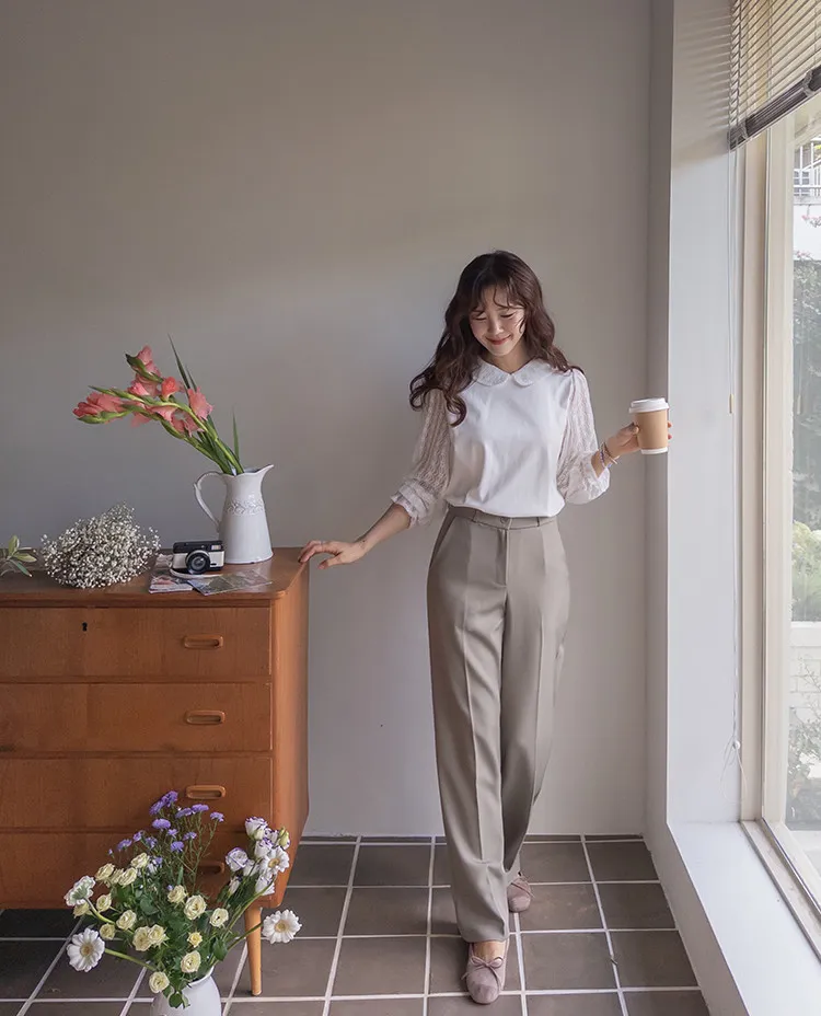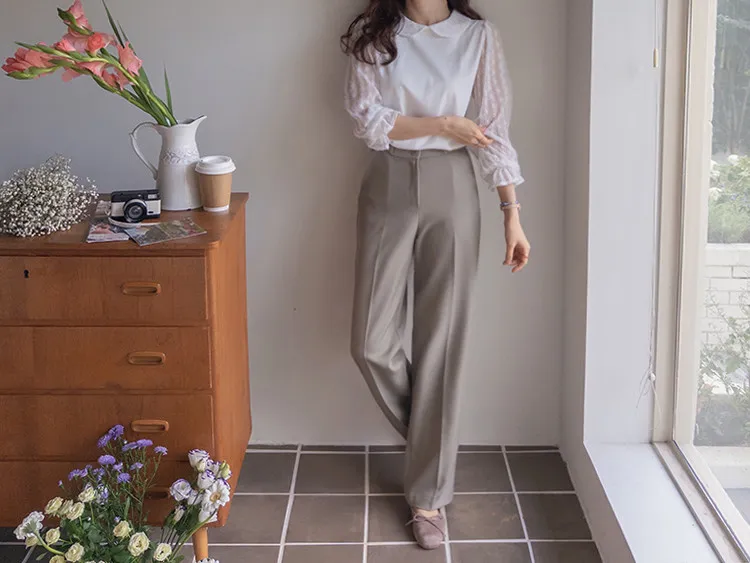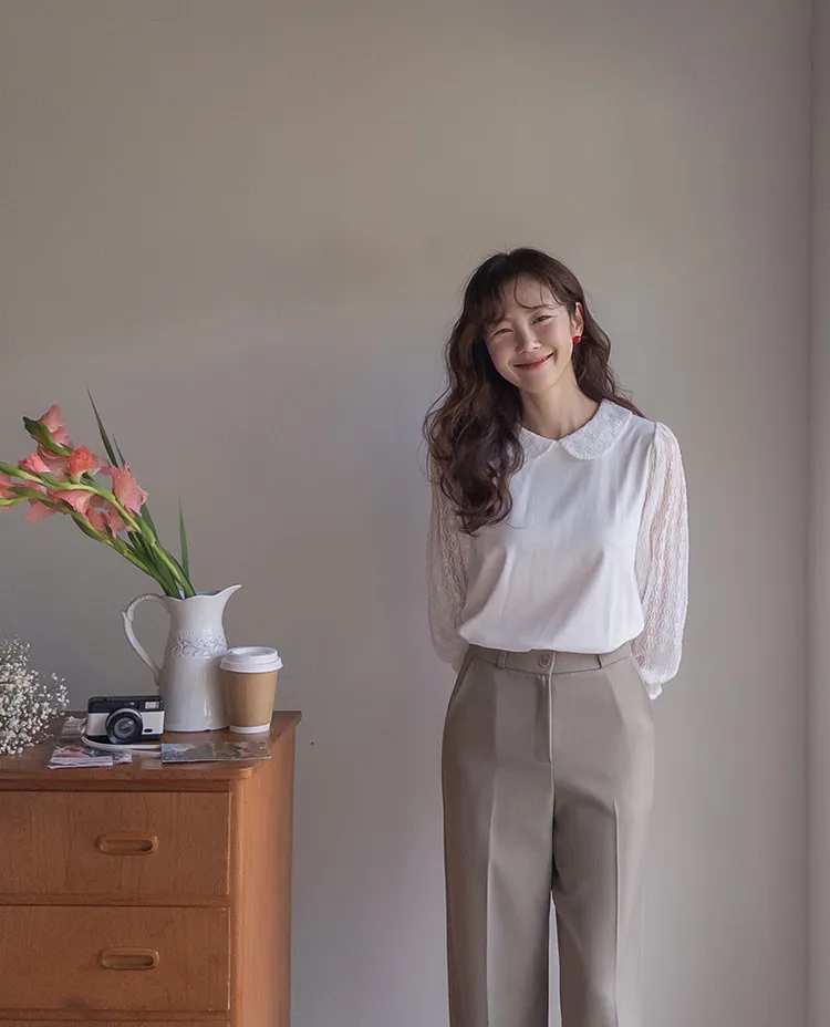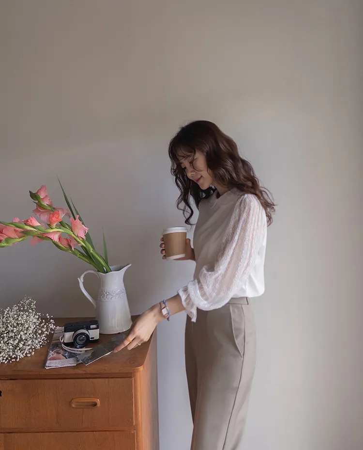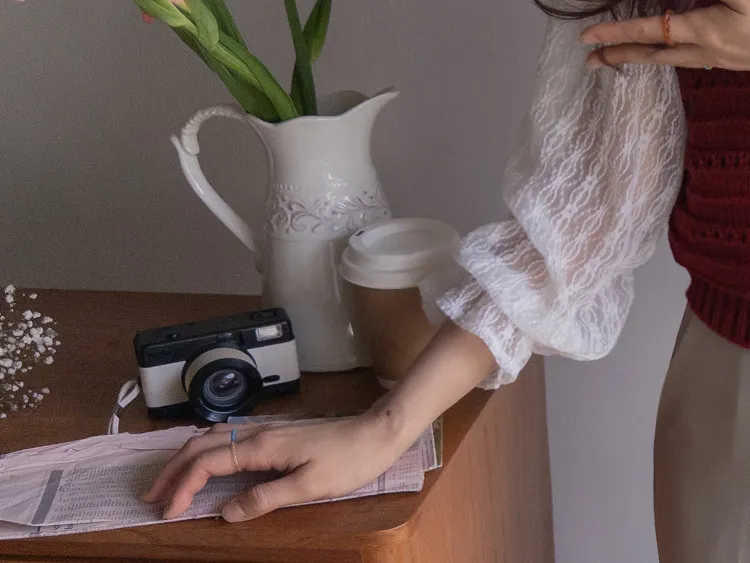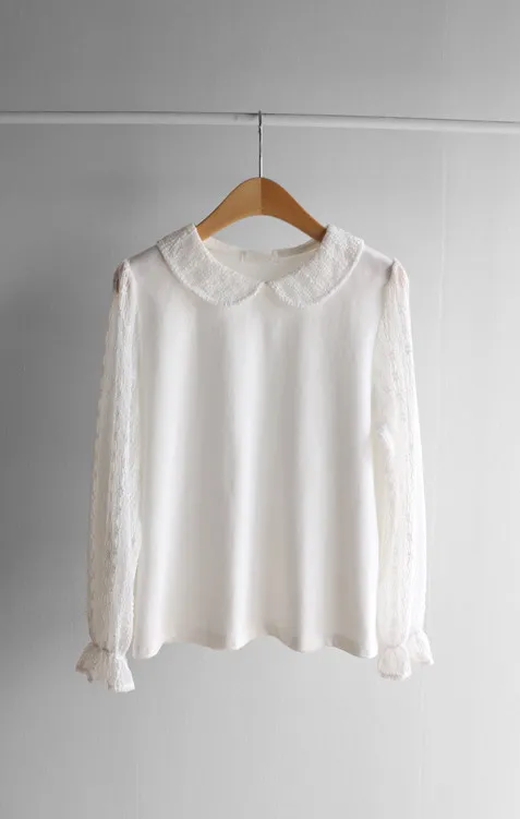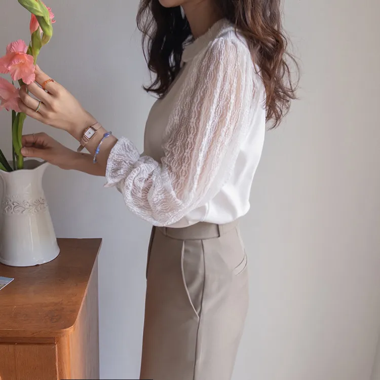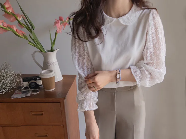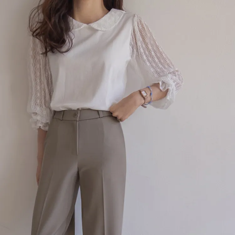 優雅浪漫圓領透膚蕾絲袖上衣