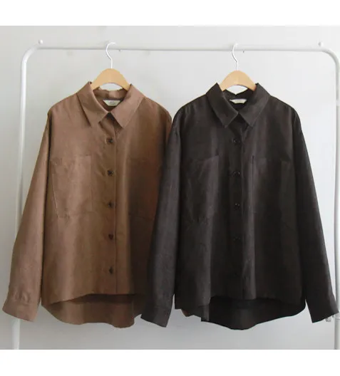 【秋季新品】【品牌品質】【柔軟舒適的絨面革,百搭的夾克】【衣領和口袋精緻的基本款設計】【後背的褶襉設計,簡潔大方】【柔軟舒適】