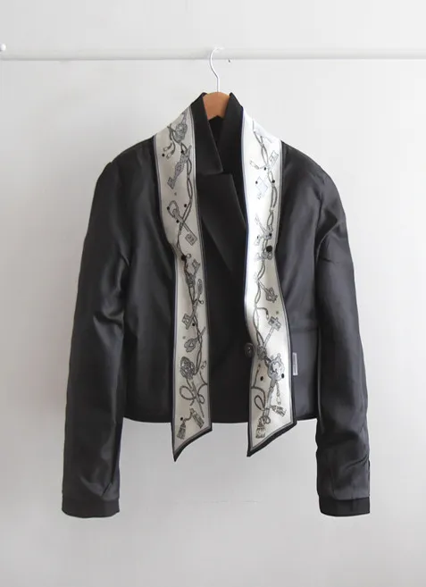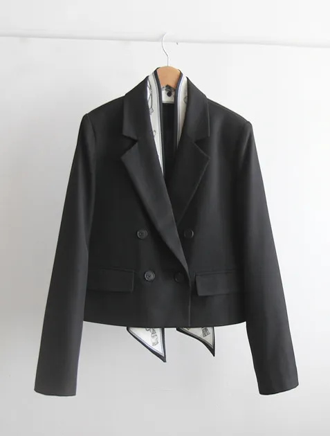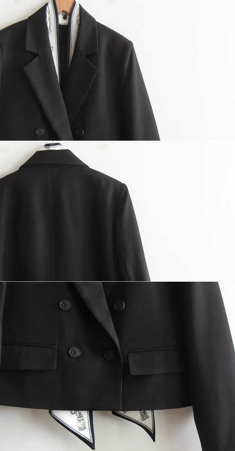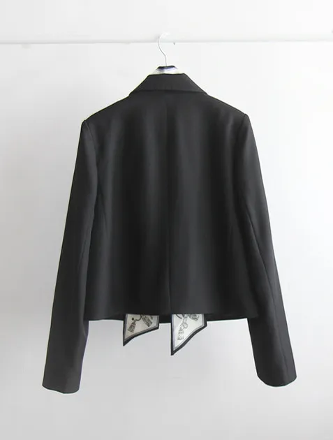 奢華氛圍附領巾雙扣精緻剪裁外套