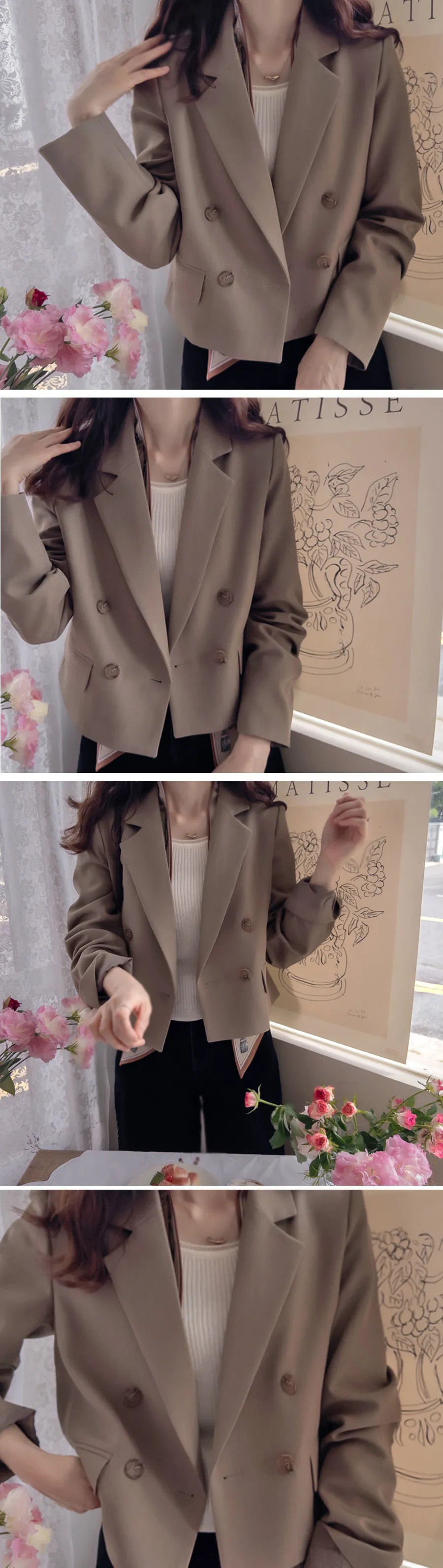 [圍巾可拆卸] [適合為秋季增添色彩的外套] [圍巾套裝營造出奢華氛圍] [高密度優質面料,線條優美] [雙紐扣設計,精緻優雅,適合秋季日常穿著]