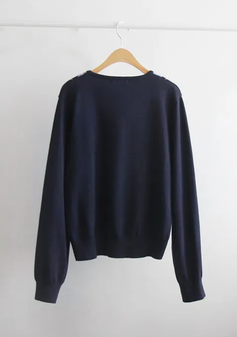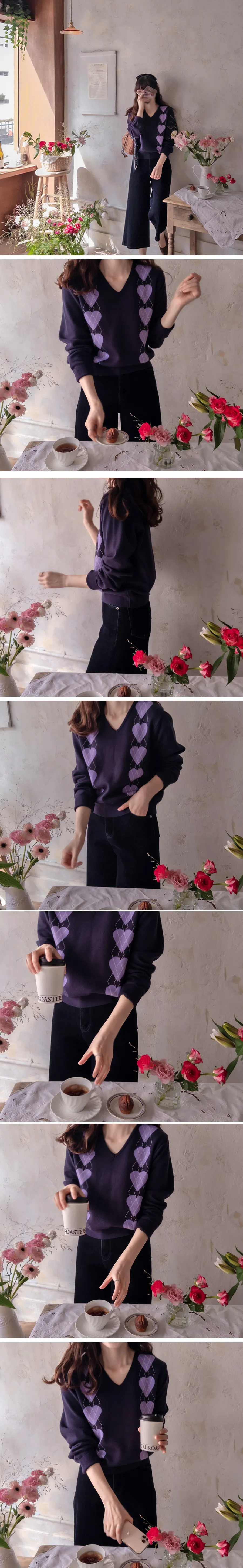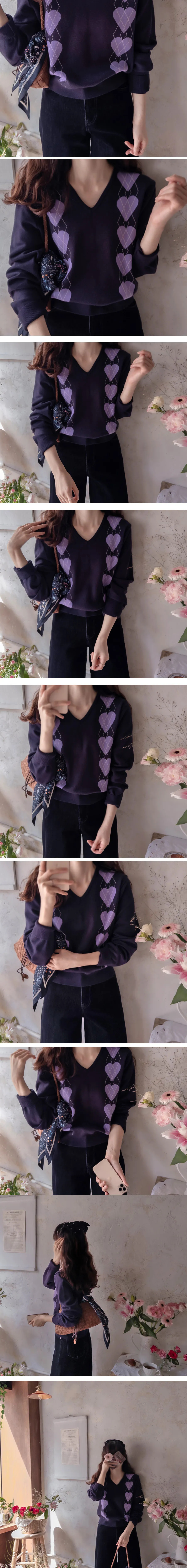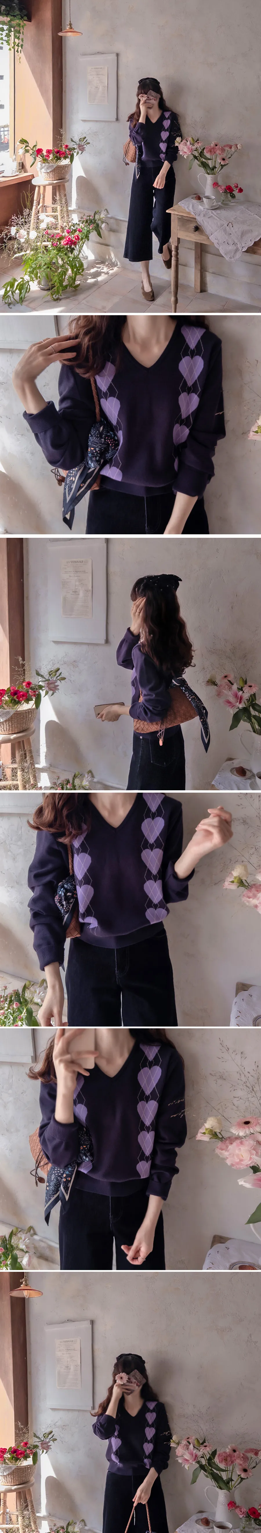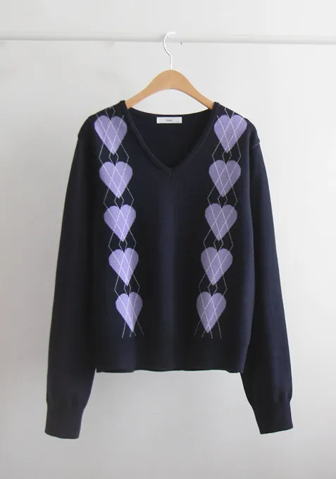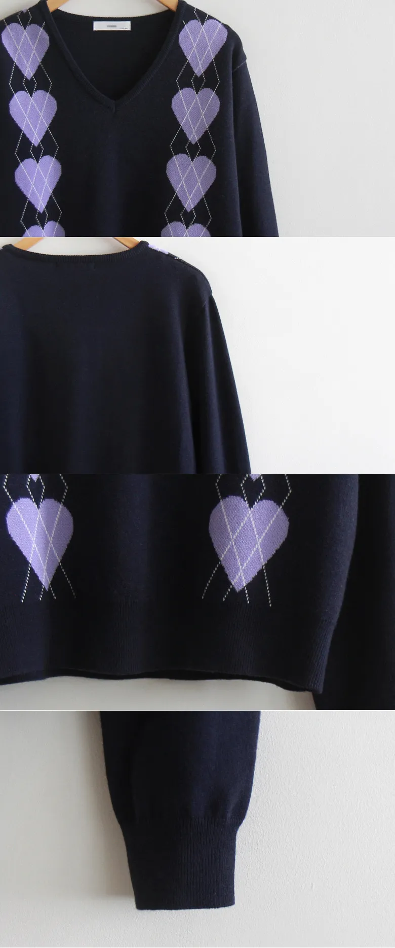 【柔軟有彈性、質感緊實的針織衫】 【以心形和菱形花紋為亮點】 【V領設計時尚迷人】 【柔軟舒適,日常穿著針織衫】 【秋季穿著時尚針織衫】