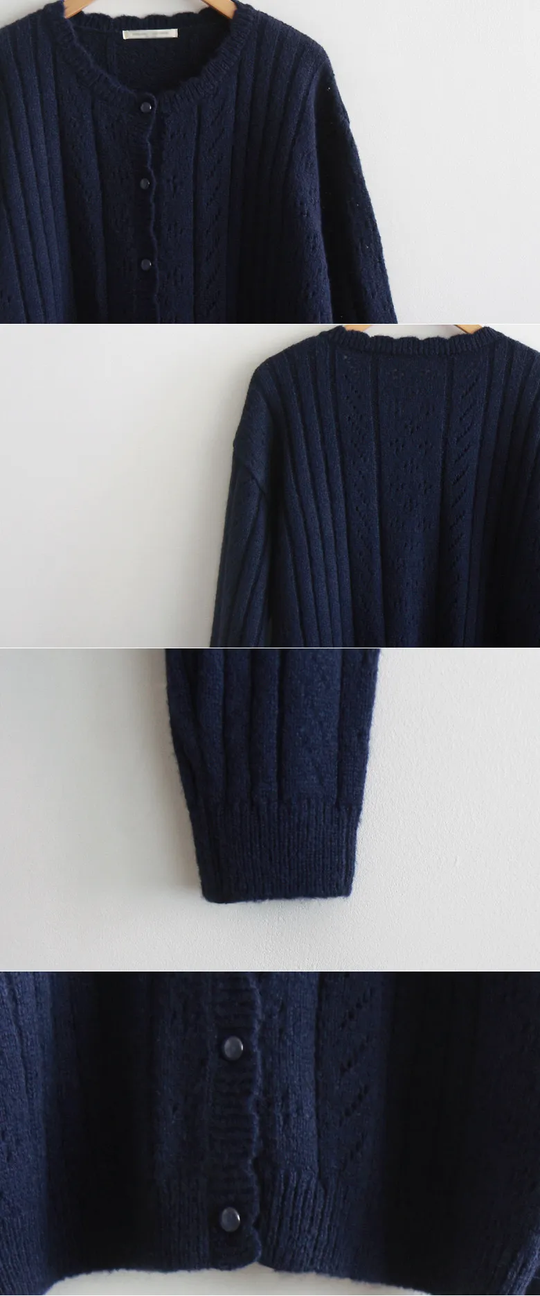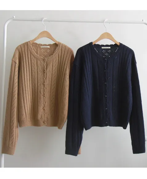 【波浪領口營造出可愛的氛圍】 【褶皺織紋提升穿搭整體感的開衫】 【當季的色彩感】 【精緻的花紋和鏤空設計,是秋季時尚的開衫】