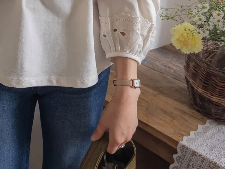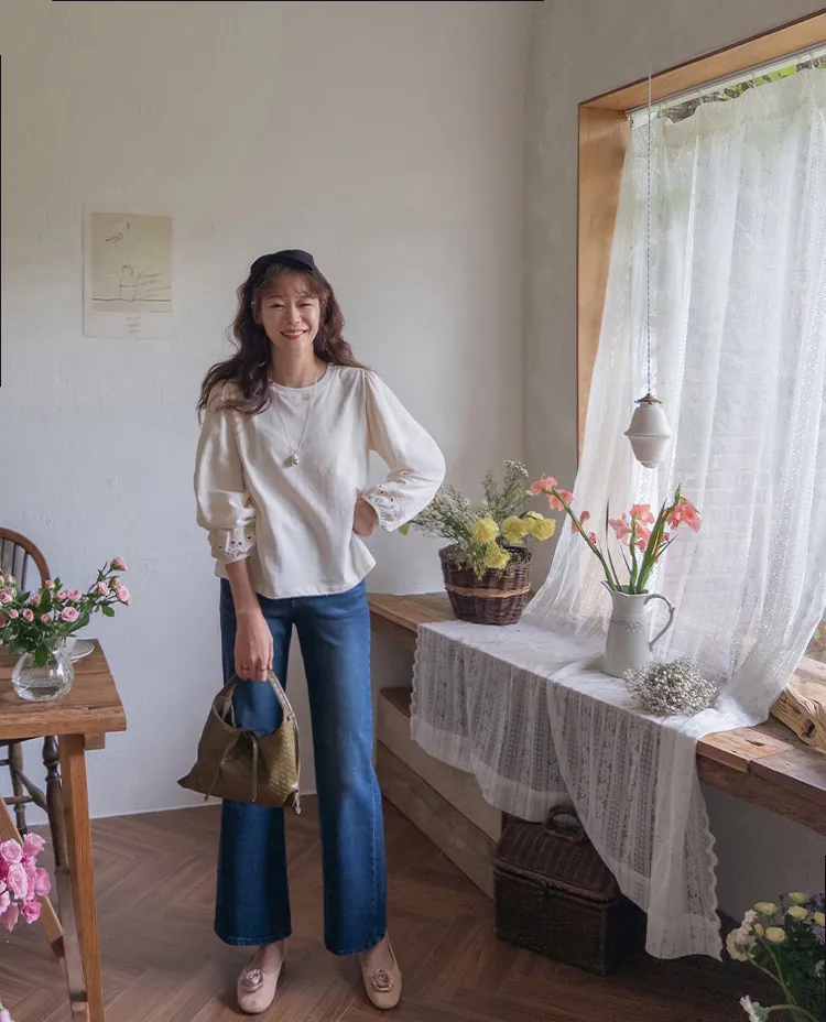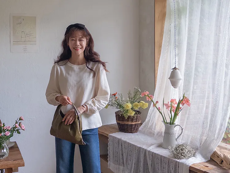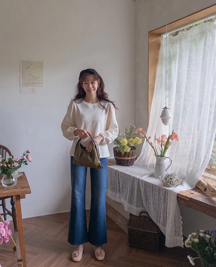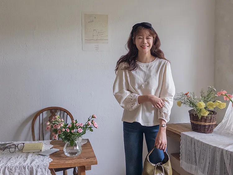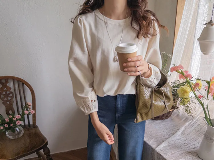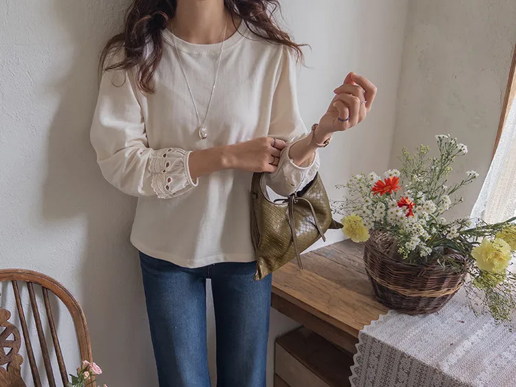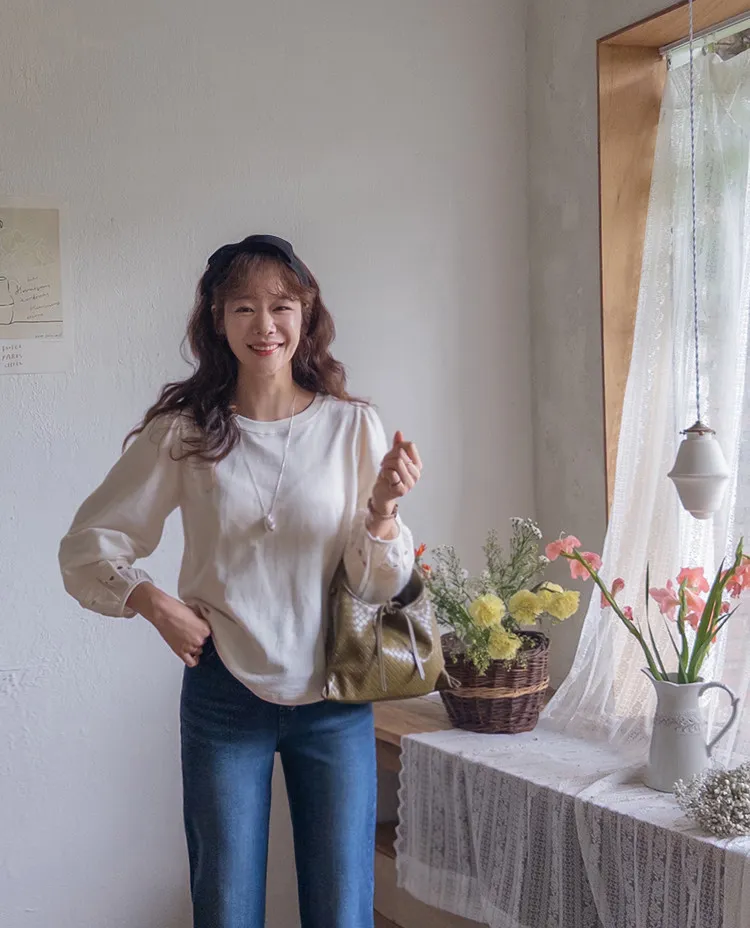 【蝴蝶結鏤空袖子很可愛♥】 【泡泡袖和肩部褶皺設計,增添立體感~】 【厚實的棉質面料,厚度適中】 【適合各種服裝的基本款】