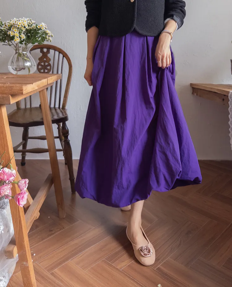【充滿體積蓬鬆感~南瓜褶裙子♥】【圓潤下擺~立體感十足的輪廓! ! 】【零褶皺的柔軟觸感】【豐富裙線條,更顯女人味~】
