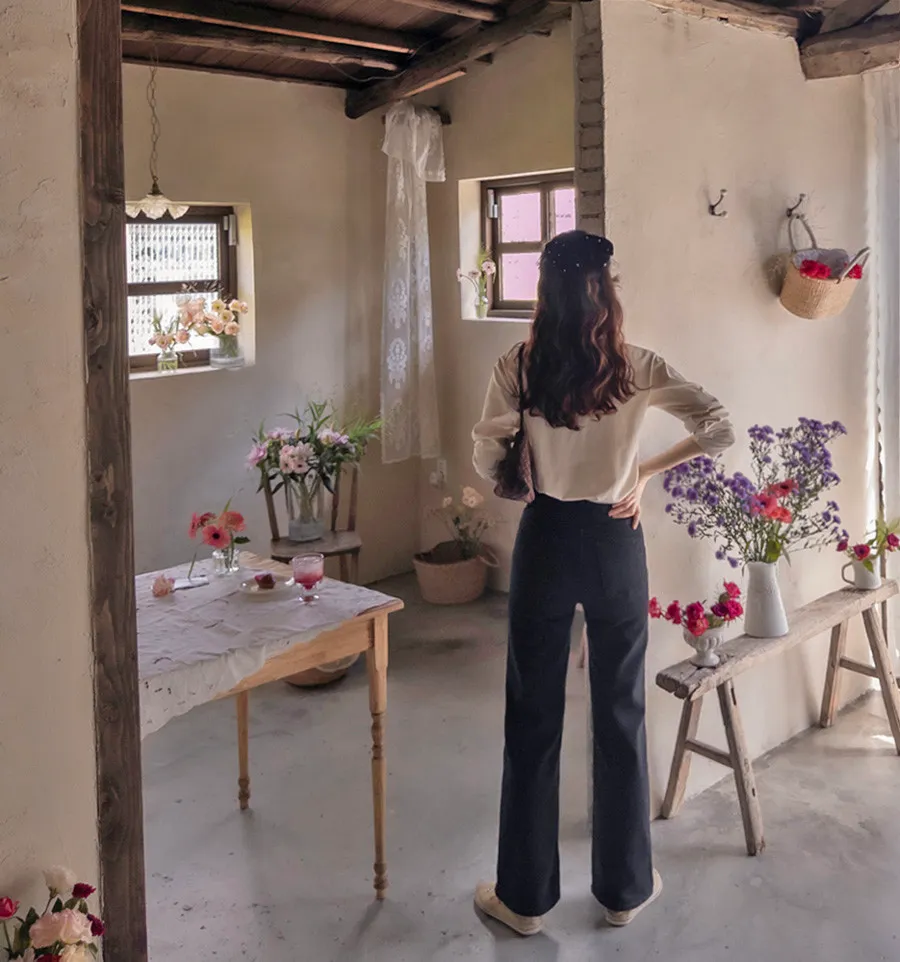 【腰部內側採用彈性帶處理】【高級彈性棉質布料】【適合秋季時尚修身】【彈性十足的舒適褲子】【牛仔布質地緊實,手感柔滑精緻】