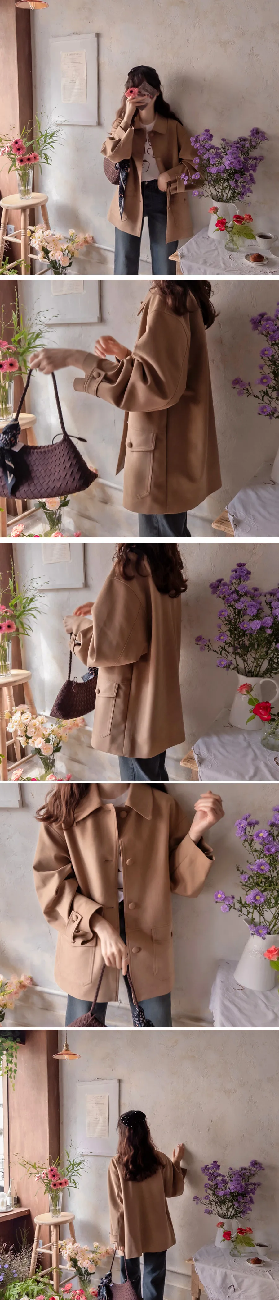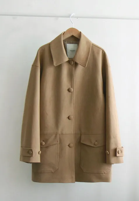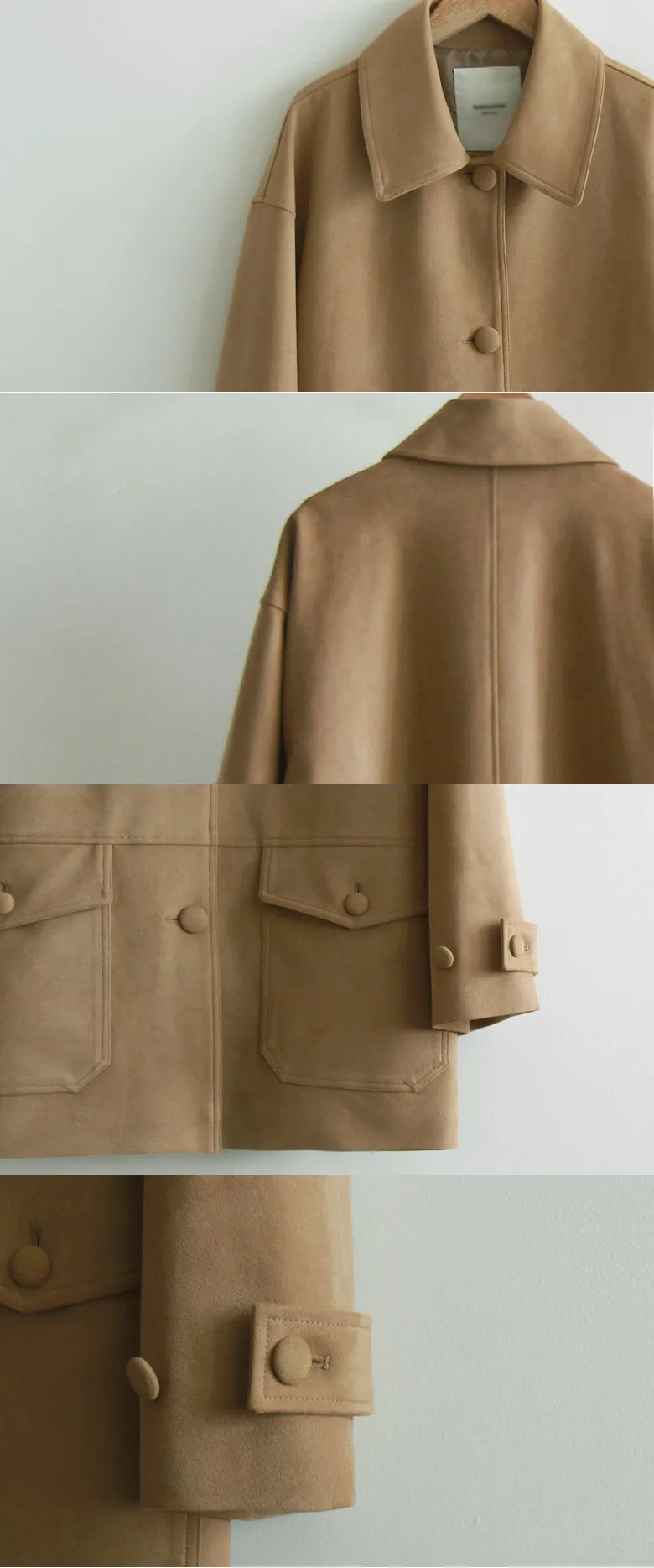 【品牌工廠品質】 【優質細膩柔軟的奢華外套】 【柔軟的絨面革營造出應季氛圍】 【紐扣增添了精緻感,衣領也很漂亮】 【時尚的秋季絨面革半長夾克】