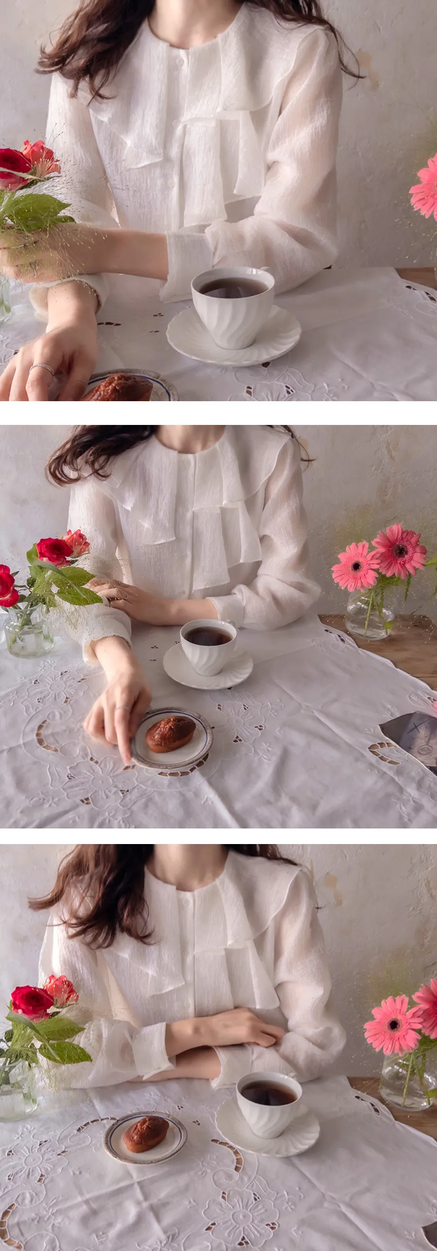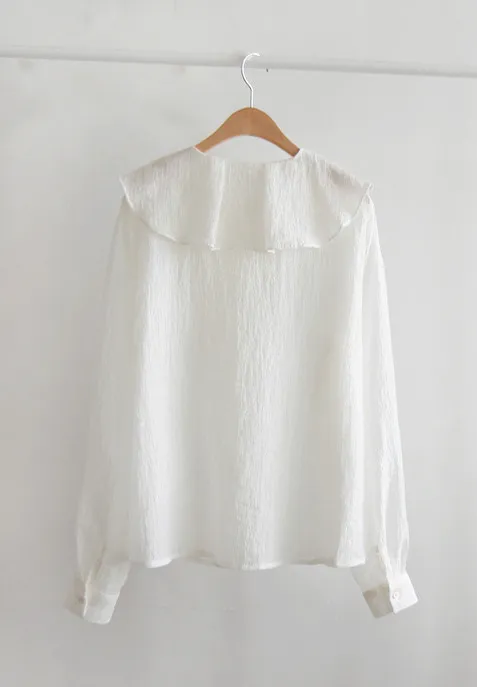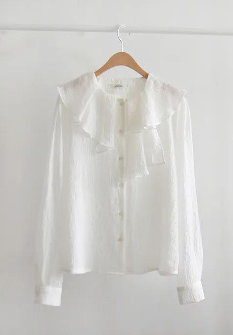 【品牌品質】【65%天絲含量,打造奢華秋季風格】【略帶波浪紋的可愛衣領成為焦點】【可愛奢華的秋季上衣】【細膩的紋理營造出精緻的氛圍】【奢華可愛的秋季上衣】