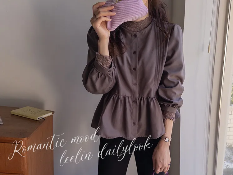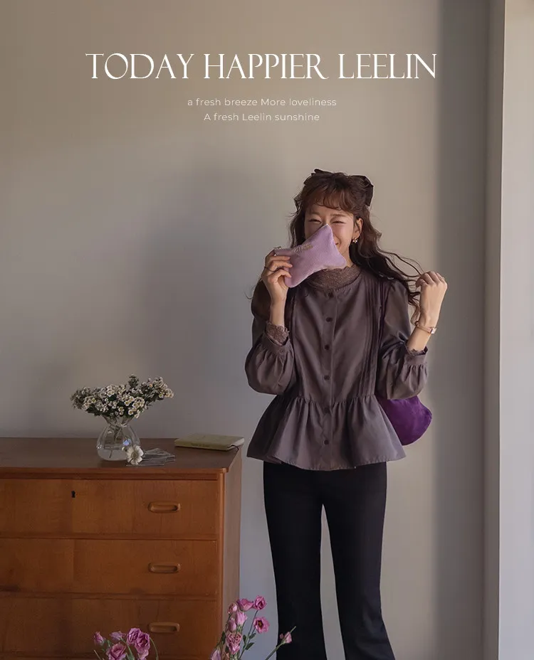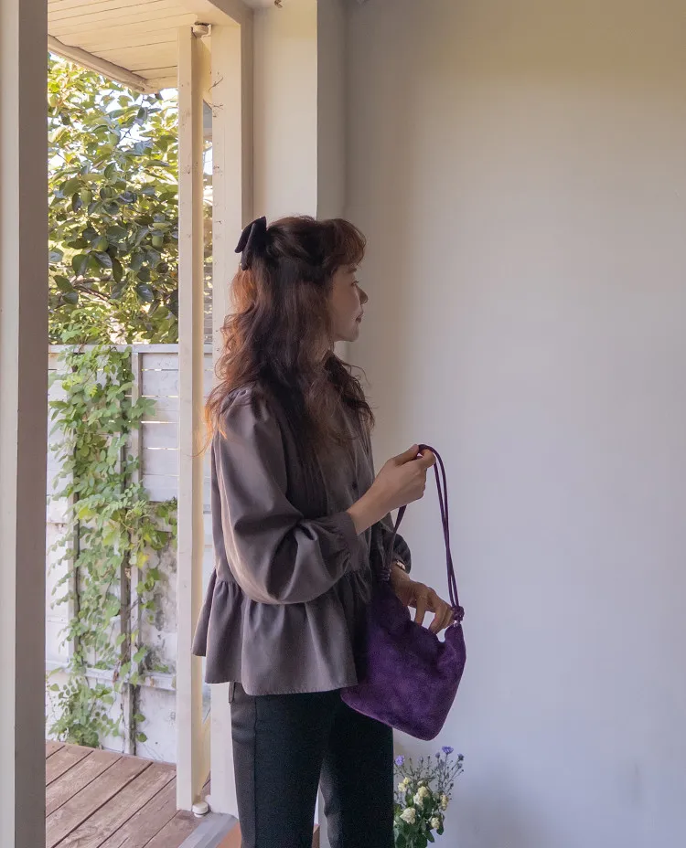 浪漫摺邊下擺褶襉柔軟排扣上衣