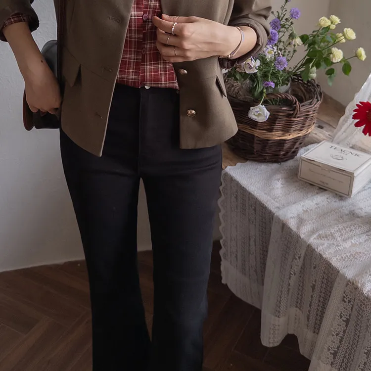 【鬆緊腰身修身靴型褲♥】【修身靴型剪裁讓雙腿更顯纖細! ! 】【隱形腰帶,可長期穿著】【秋季百搭日常穿搭褲!】
